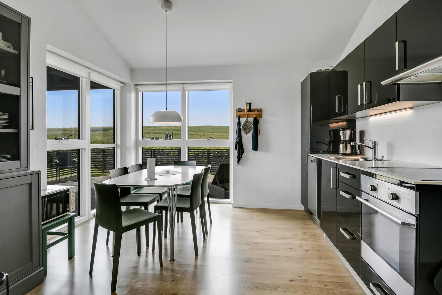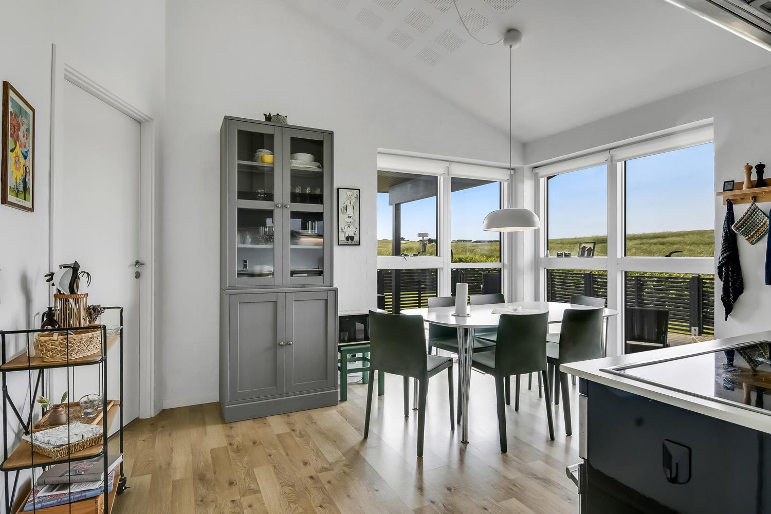 Huset er beliggende på en 840 m2 naturgrund med græsplæne. Fra grunden er der en flot udsigt over Limfjorden. Der er både overdækket og åben terrasse med havemøbler og grill. Der er blot 350 m ned til Limfjorden, hvor der er en dejlig børnevenlig strand med badebro. Tæt på badestranden ligger den nye legeplads som er lavet af træ som gratis kan benyttes. Handelsbyen Lemvig ligger en kort køretur fra huset og her er der flere gode restauranter, legeplads på havnepromenaden og flere gode butikker. Et dejligt hus i et skønt område med mange gode muligheder for at vandre, løbe og cykle.