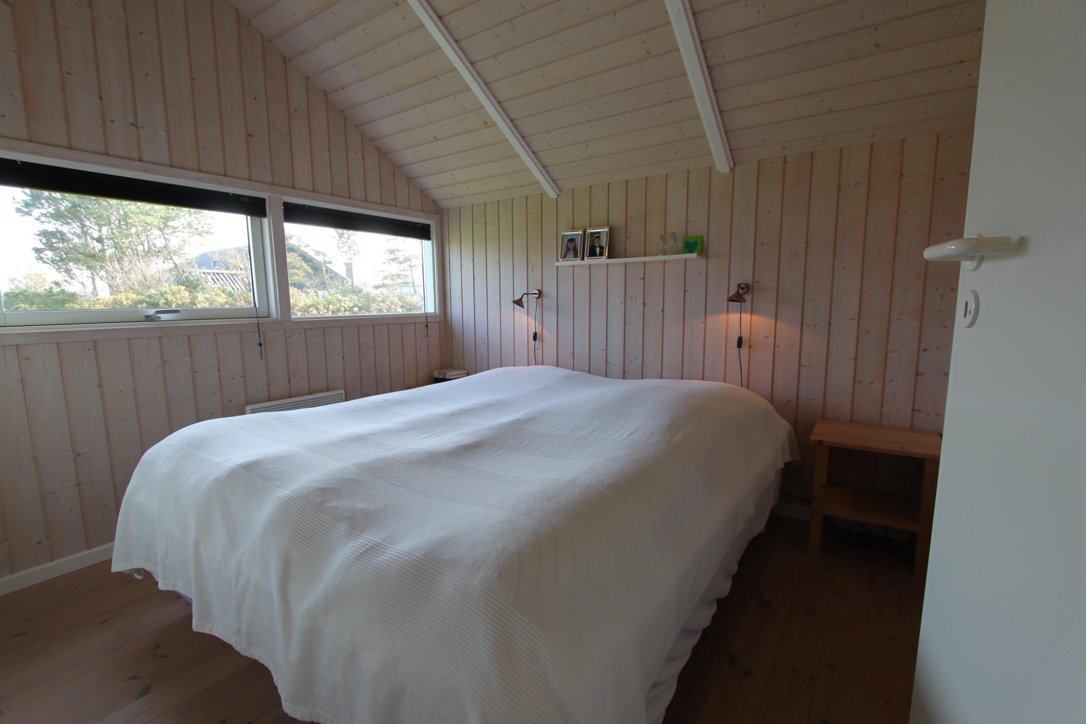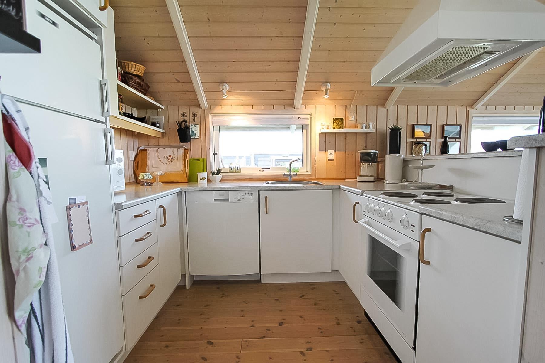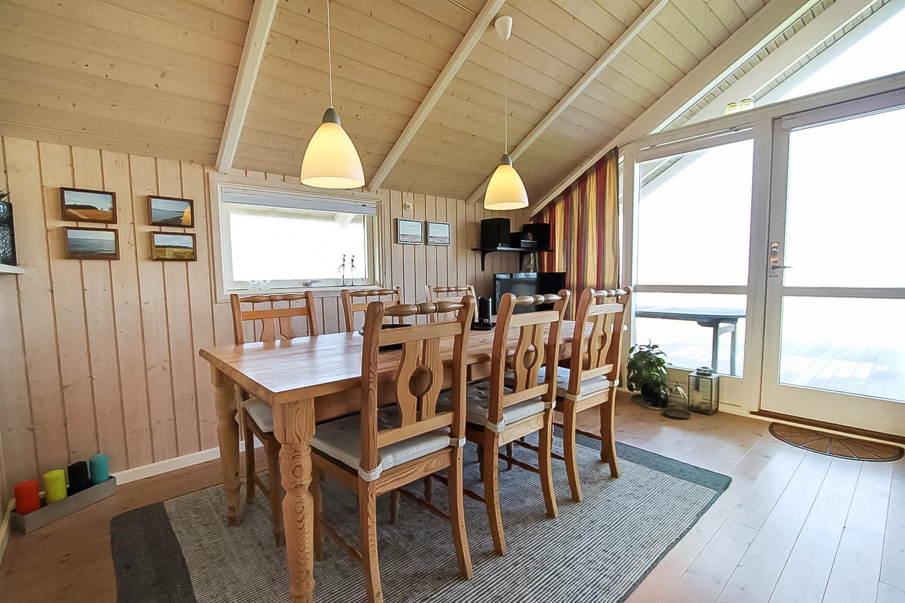 Velholdt kalmarfritidshus beliggende på en græsplænegrund med en fin udsigt over fjorden og landskabet - helt til Thyborøn. Gratis internetadgang med trådløs router. Huset er godt indrettet med 3 soveværelser: DS + DS+ 2 køjesenge. Indenfor er huset lyst og venligt - ludbehandlede vægge og lofter harmonerer fint med det klassiske lyse trægulv, og de store vinduespartier giver et godt lysindfald i rummene. Godt og veludstyret køkkenet med glaskeramisk-komfur, køle-/fryseskab, opvaskemaskine og mikroovn. Badeværelset er med toilet, håndvask, bruser og udstyret med en vaskemaskine. Stuen er indrettet med lædermøbler og TV med parabol dog kun med tyske kanaler og en dejlig brændeovn som giver en skøn varme uanset årstid.. Huset har 2 dejlige forældresoveværelse med god skabsplads + et extra soveværelse med køjer. Bemærk: husdyr er ikke tilladt. Ikke ryger-hus.