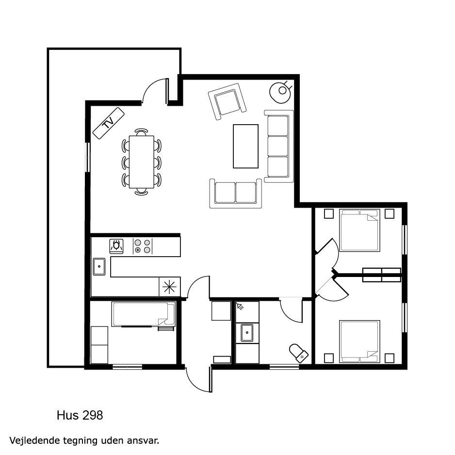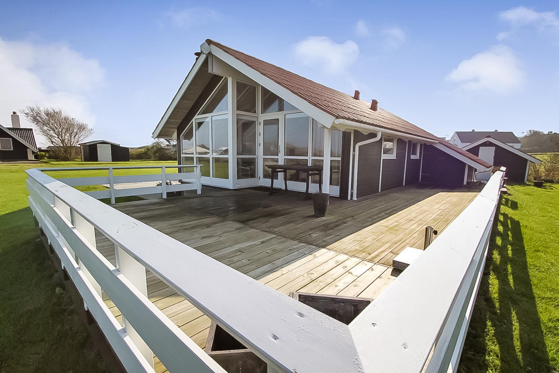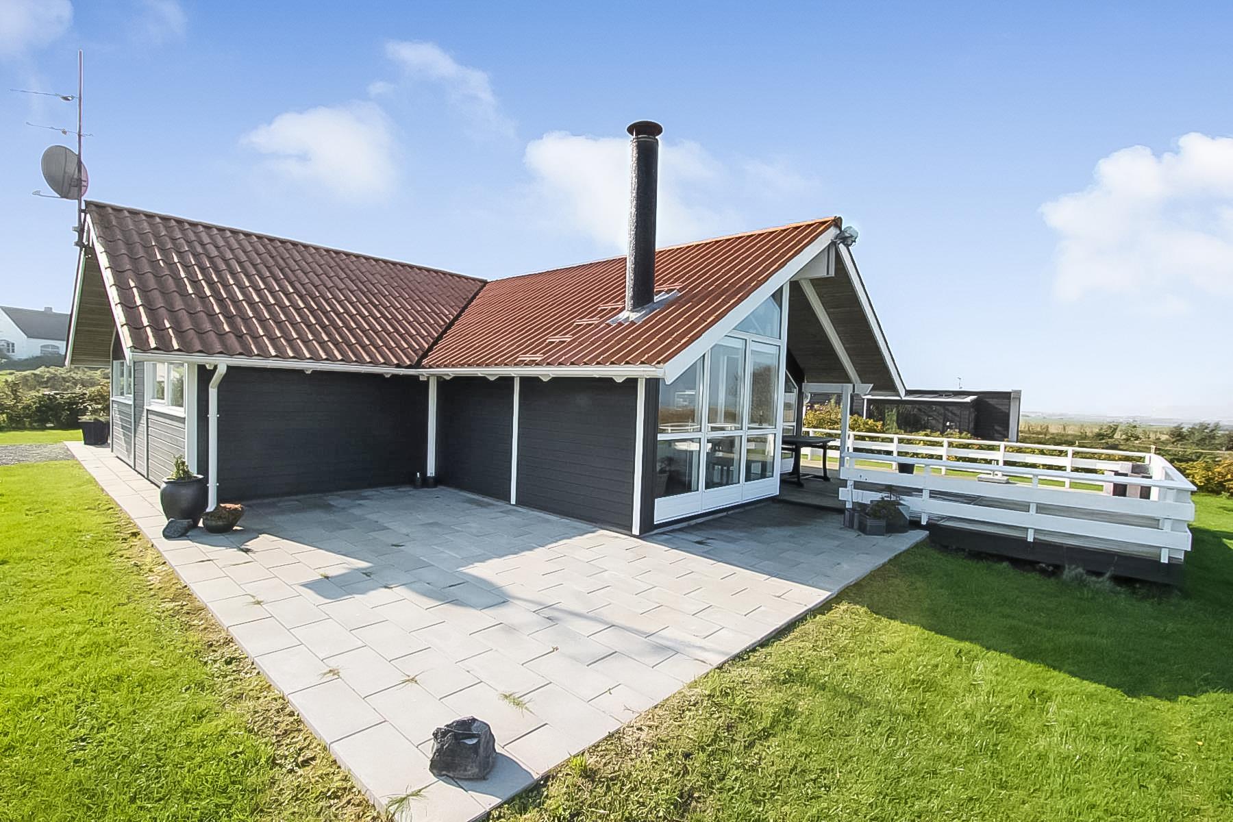 Huset er beliggende på en 1000 m2 græsplænegrund med en delvis overdækket terrasse med havemøbler, solvogne og grill som kan stilles efter behov så man kan finde en plads i solen eller i skyggen. Også herfra terrassen er der en fin udsigt til Limfjorden. Huset ligger blot 300 m fra den dejlige badestrand med badebro. Fra huset findes der er dejligt stisystem som fører direkte ned til vandet på få minutter. Ca. 300 m fra huset ligger den nye flotte naturlegeplads i træ med fodboldbane og rutsjebane. Der er kun fire km til Lemvig, som er en livlig handelsby med mange butikker, fiskerestaurant, museum m.m. Tager man bilen er en tur til Thyborøn en oplevelse i sig selv og klares på 20 min. Her er der flere forskellige aktiviteter som fiskeriauktion, Sea War Museum eller besøg det spændende Jyllandsakvarie, hvor børnene kan se og røre ved fisk og krabber, eller besøg det helt unikke Sneglehus. Dagen sluttes af med is i hånden, mens at I går tur langs havnekajen og ser på alle fiskekutterne.