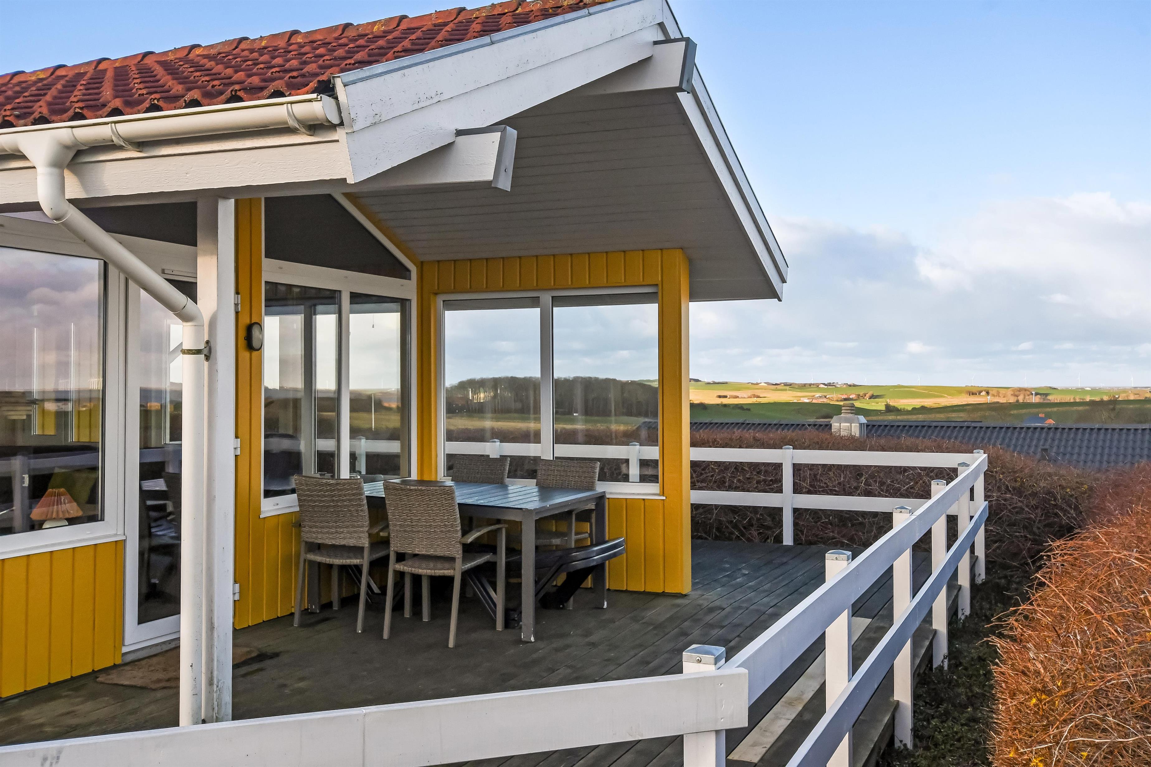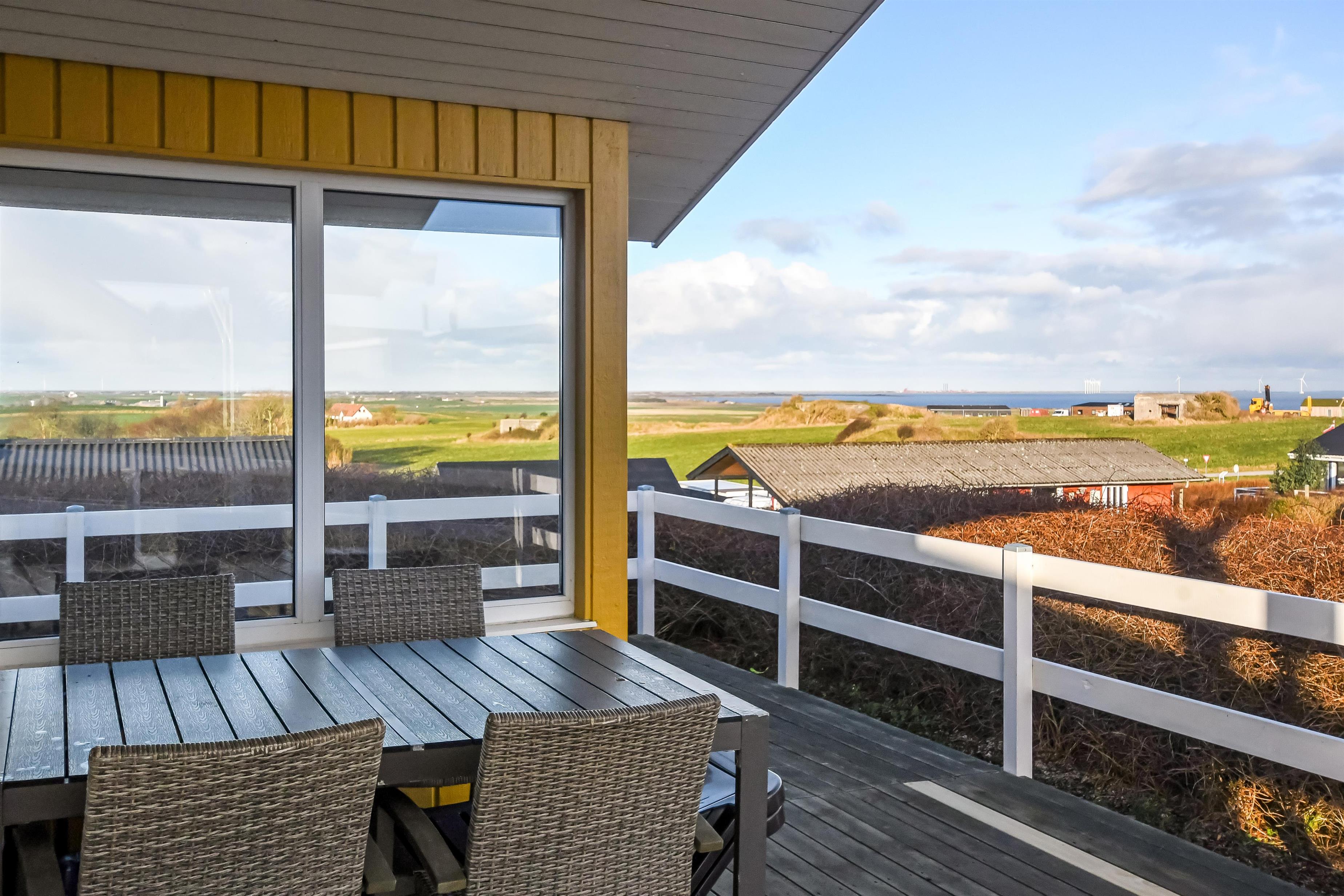 Udendørs er der en 125 m² stor terrasse, som omgiver huset, og der er altid et læfyldt sted at nyde solen. Til de mindste er der gynge og sandkasse, så børnene kan lege trygt. Nær ved huset ligger også den flotte naturlegeplads i træ med rutsjebaner, gynger og meget andet. Tæt ved huset findes også iskiosk og restaurant, som har åbnet i sæsonen. Der er i øvrigt kun ca. 6 km til Lemvig by, som er en livlig handelsby med mange butikker, fiskerestaurant, biograf, skaterbane, museum mm.