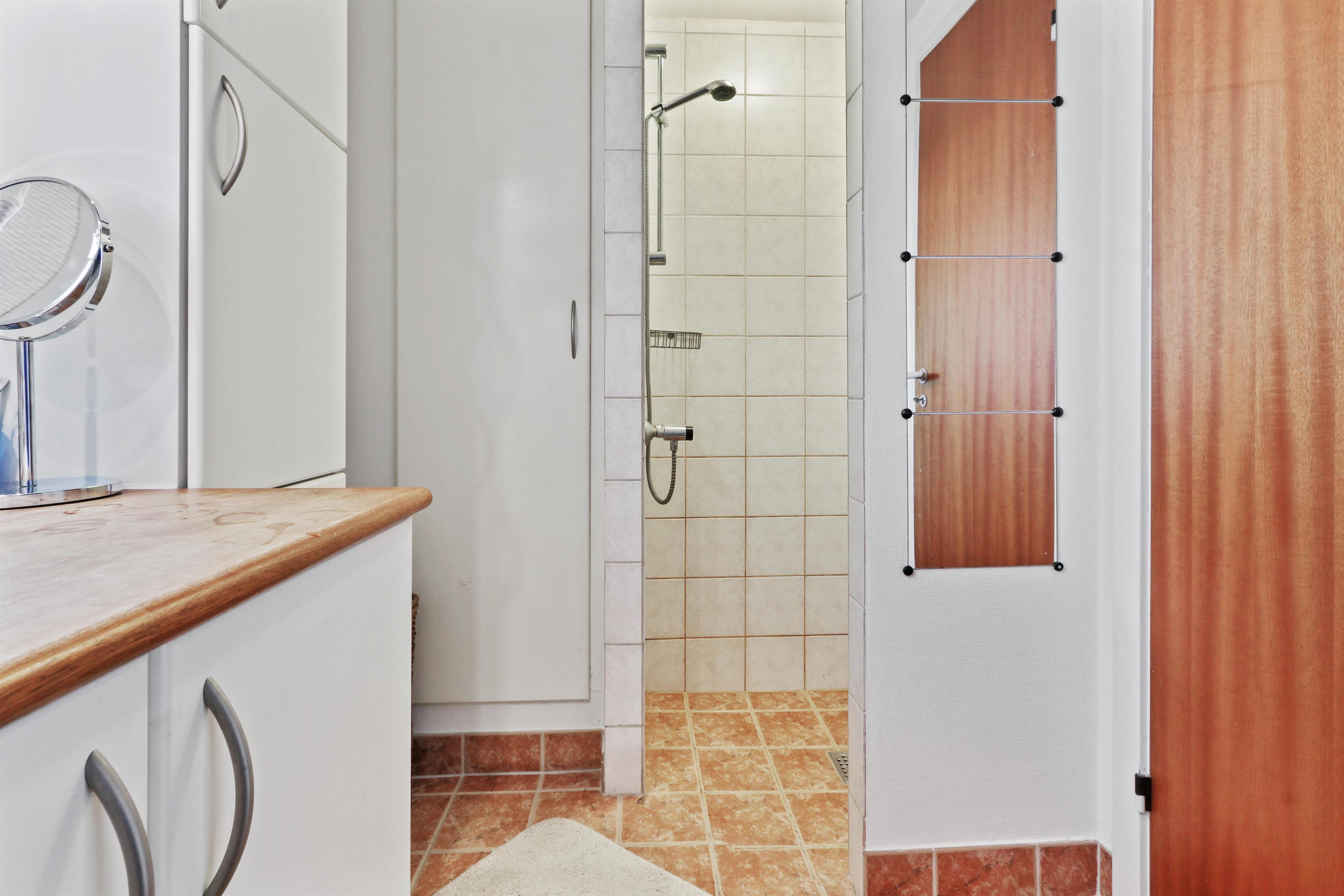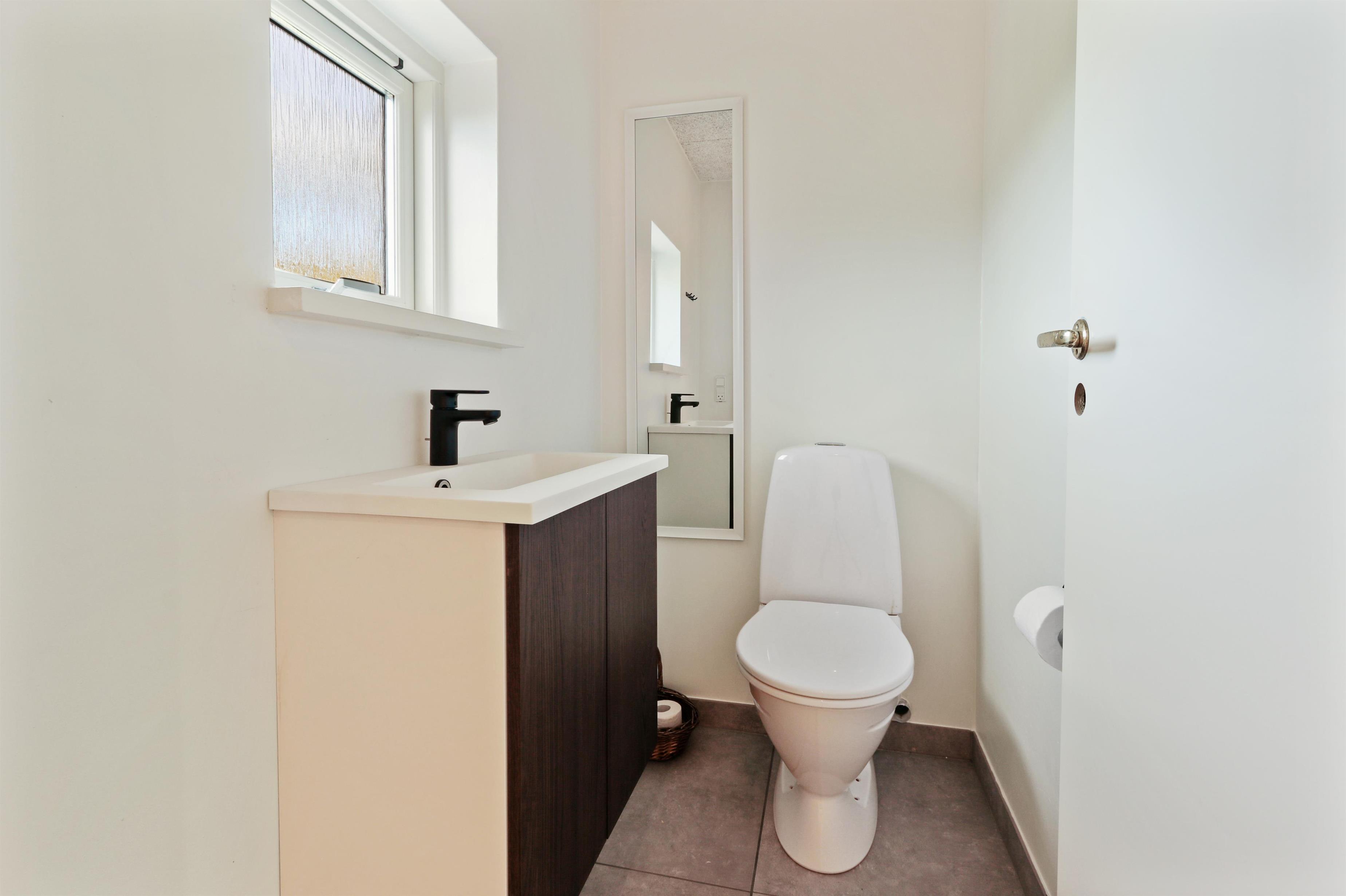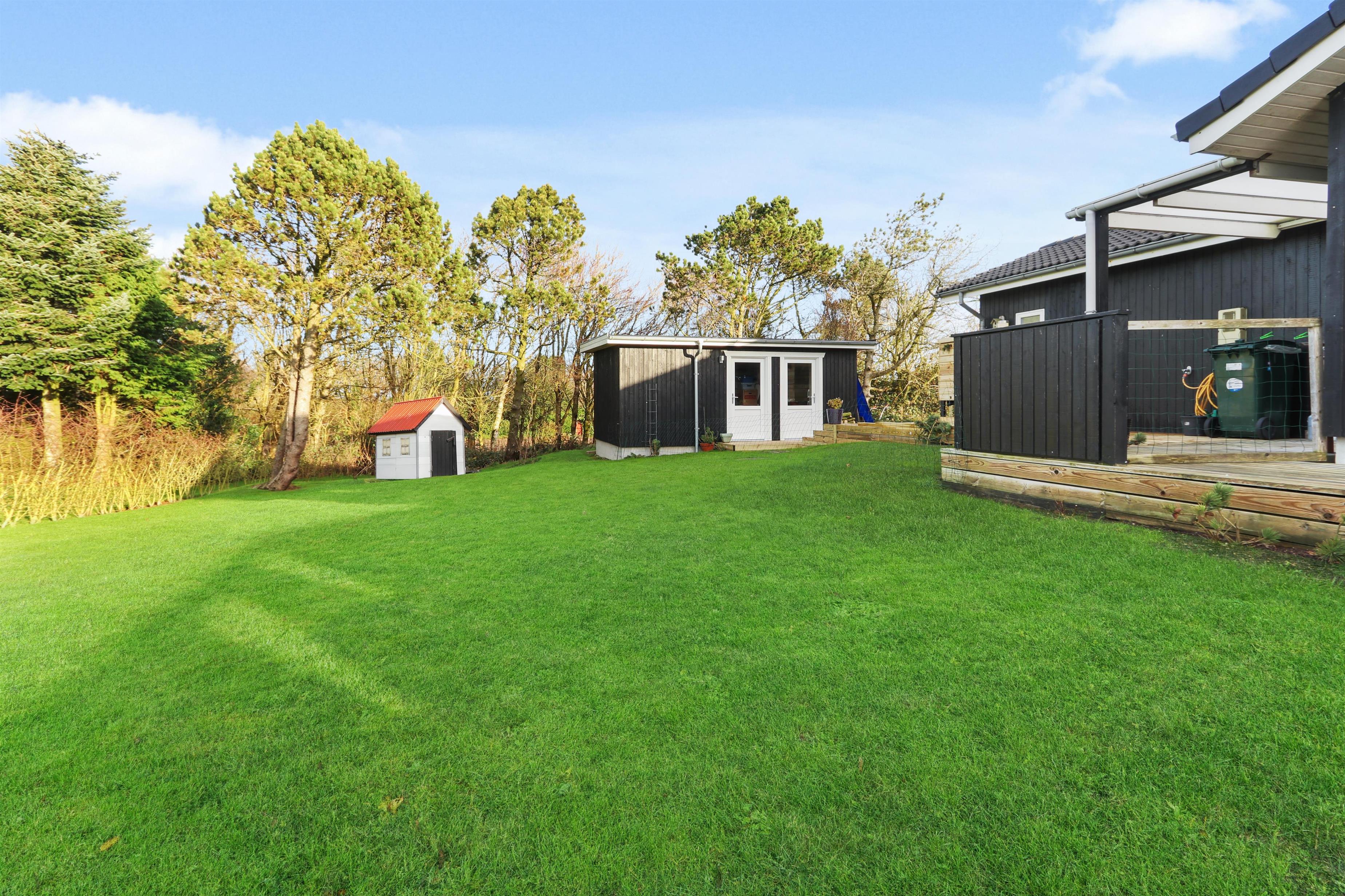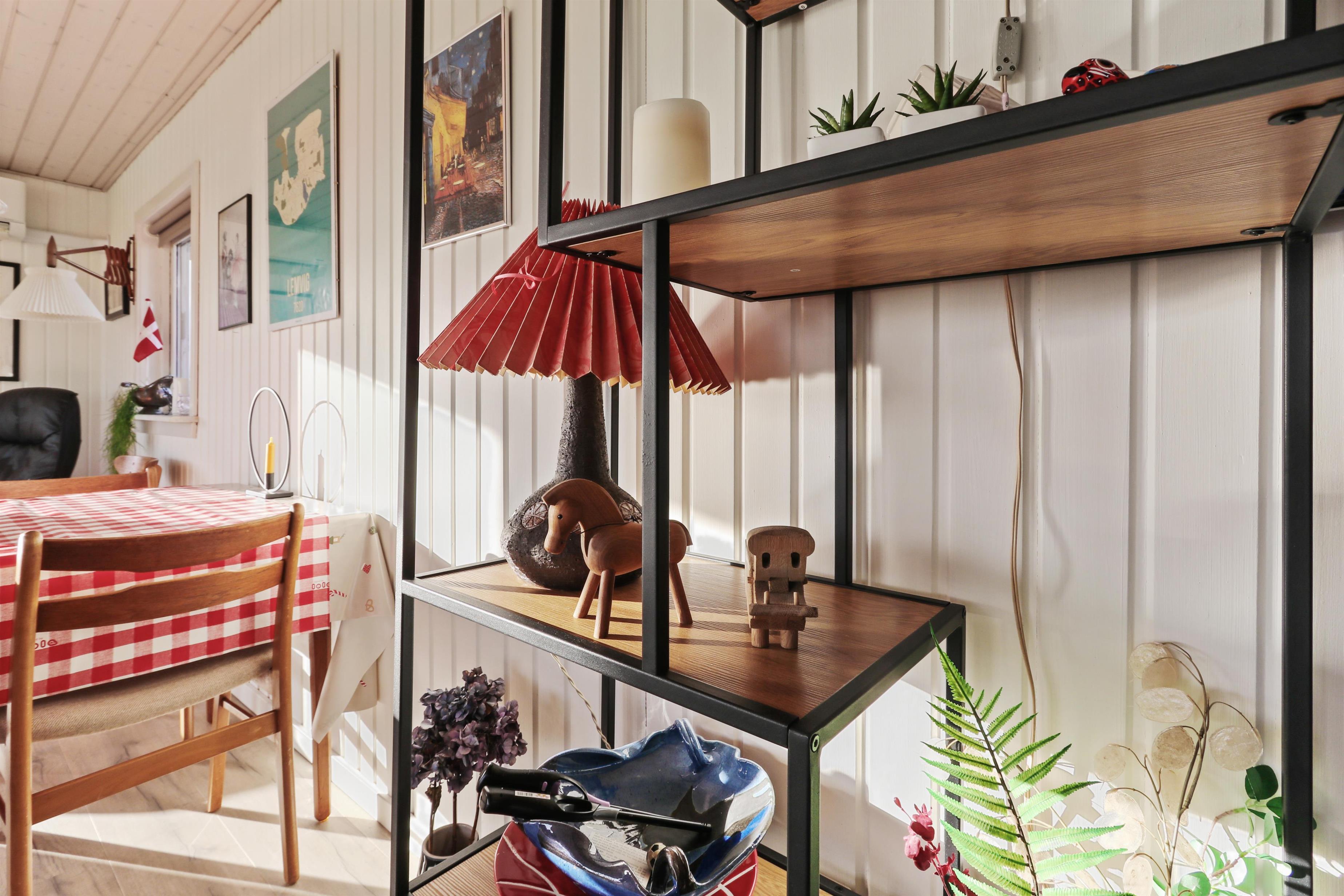 Feriehuset har en størrelse på 85 m2 og er flot istandsat i 2020 og løbende. Når man træder ind i huset, står man i husets dejlige lyse og indbydende hjerterum, som består af kombineret køkken og stue. Fra stuen og køkkenet er der udgang til husets store terrasse, hvorfra udsigten er et levende maleri. Husets køkken er udstyret med induktionskogeplader, indbygningsovn, emhætte, mikroovn, opvaskemaskine og køle-/fryseskab. Køkkenet har et stort vinduesparti, der giver et flot lysindfald og Vesterhavet kan anes i horisonten. Går man videre fra køkkenet bliver man mødt af stuen der er hyggelig og personlig indrettet. Stort vinduesparti giver dejligt lys til hele rummet, som også er med til at gøre stuen mere rummelig og herfra kan udsigten mod Limfjorden nydes. Stuen er udstyret med polstermøbler, fjernsyn hvorfra man kan streame egne apps via Chromecast og der er en DAB-radio. I stuen er der opsat en varmepumpe, der er med til at holde strømforbruget nede. Stuen giver plads til hele familien og er indbydende at tilbringe film- og spille-aftener. Fra stue og køkken kommer man ud i gangen, hvorfra man kommer til badeværelset og soveværelserne. Badeværelset er optimalt udnyttet og her forefindes toilet, håndvask og bruser. Desuden er der en vaskemaskine, hvis tøjet skulle trænge til en vask i løbet af ferien. Huset har 3 soveværelser, hvor det største er med 1 dobbeltseng og der er adgang til et eget toilet. Desuden har det store soveværelse også egen udgang til terrassen. Det andet soveværelse er med 1 dobbeltseng og i det sidste soveværelse er der 2 køjesenge. Til de mindste gæster er der 1 barnestol til rådighed.