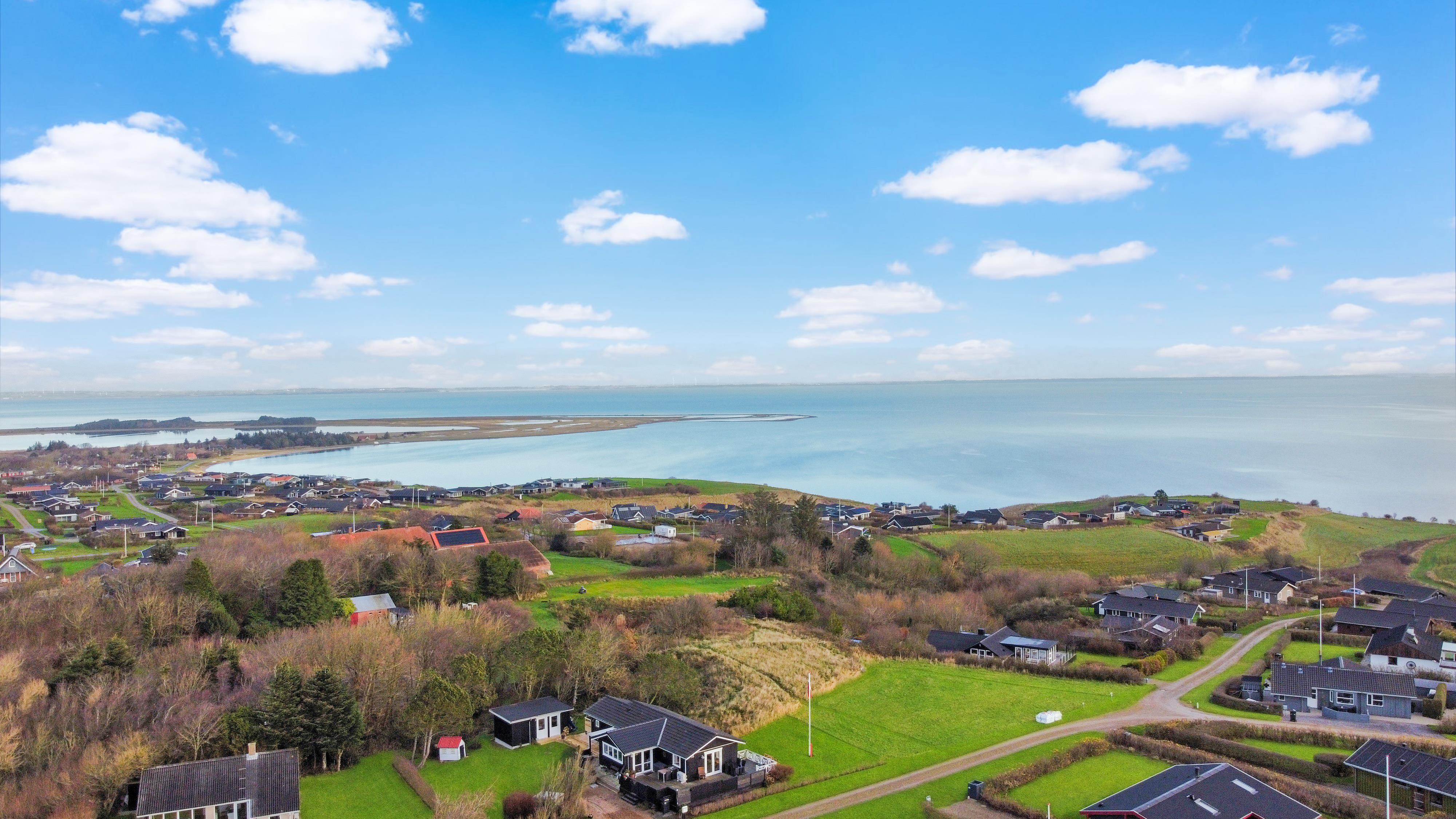 Huset har en fantastisk beliggenhed på en 855 m2 stor naturgrund med utrolig god udsigt over Limfjorden. En stor terrasse strækker sig om huset og er udstyret med havemøbler, 2 solvogne og grill, som kan flyttes på efter behov. Terrassen er indhegnet, så man kan lukke hunden ud, uden man skal være bange for at den kan løbe væk. Limfjorden kan nås på få minutter på gåben via små stier og er ideel til at bade, da stranden er børnevenlig. På stranden er der også en badebro. Få hundrede meter fra huset ligger Gjellerodde naturlegeplads i træ med fodboldbane og rutsjebaner. Huset ligger kun 4 km fra Lemvig, hvor man kan handle i de lokale butikker, gå en tur langs havnen og kigge på lystfiskerbådene, spise på de lokale cafeer og restauranter og meget mere. Husets beliggenhed giver mange muligheder for en uforglemmelig ferie for hele familien eller par.