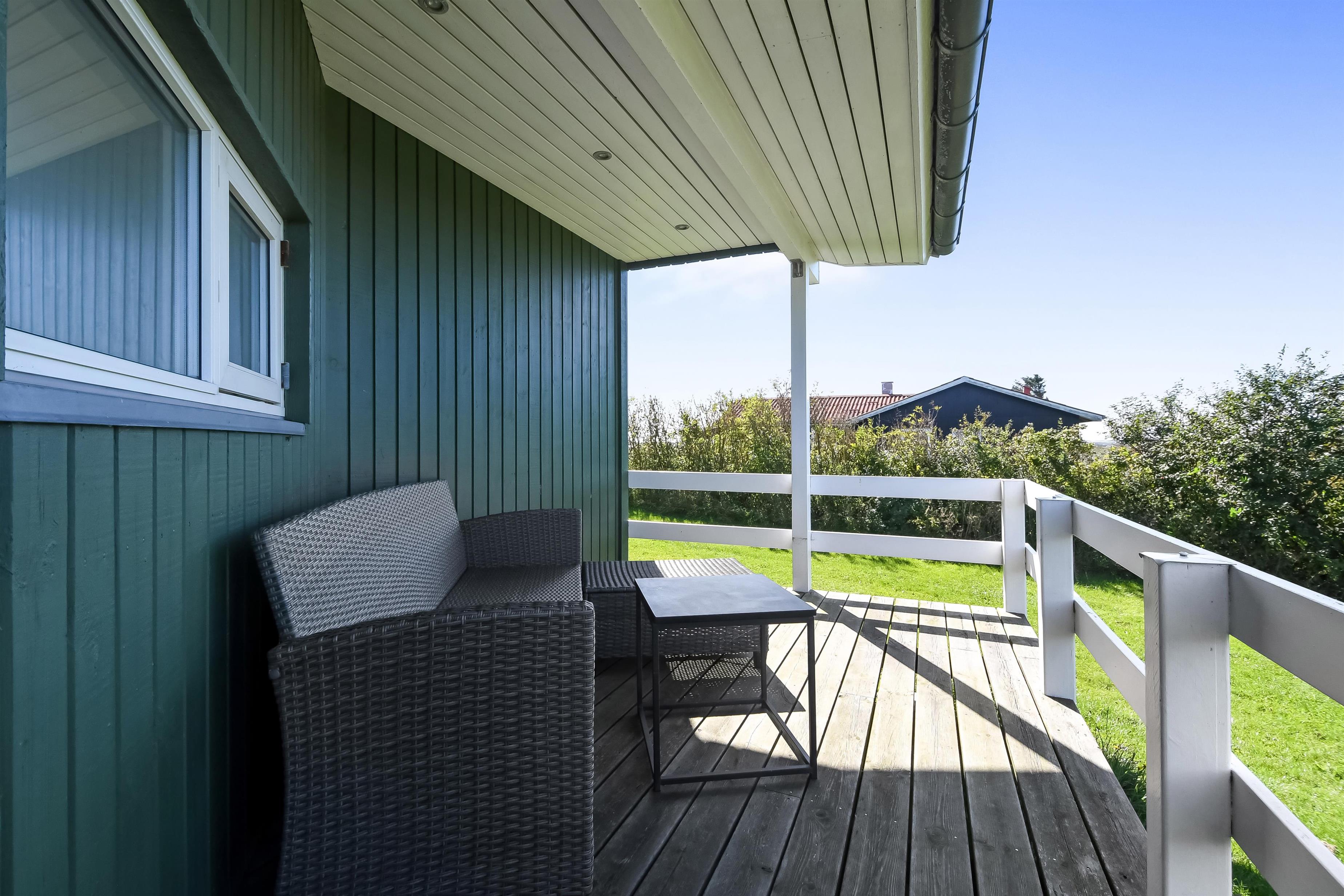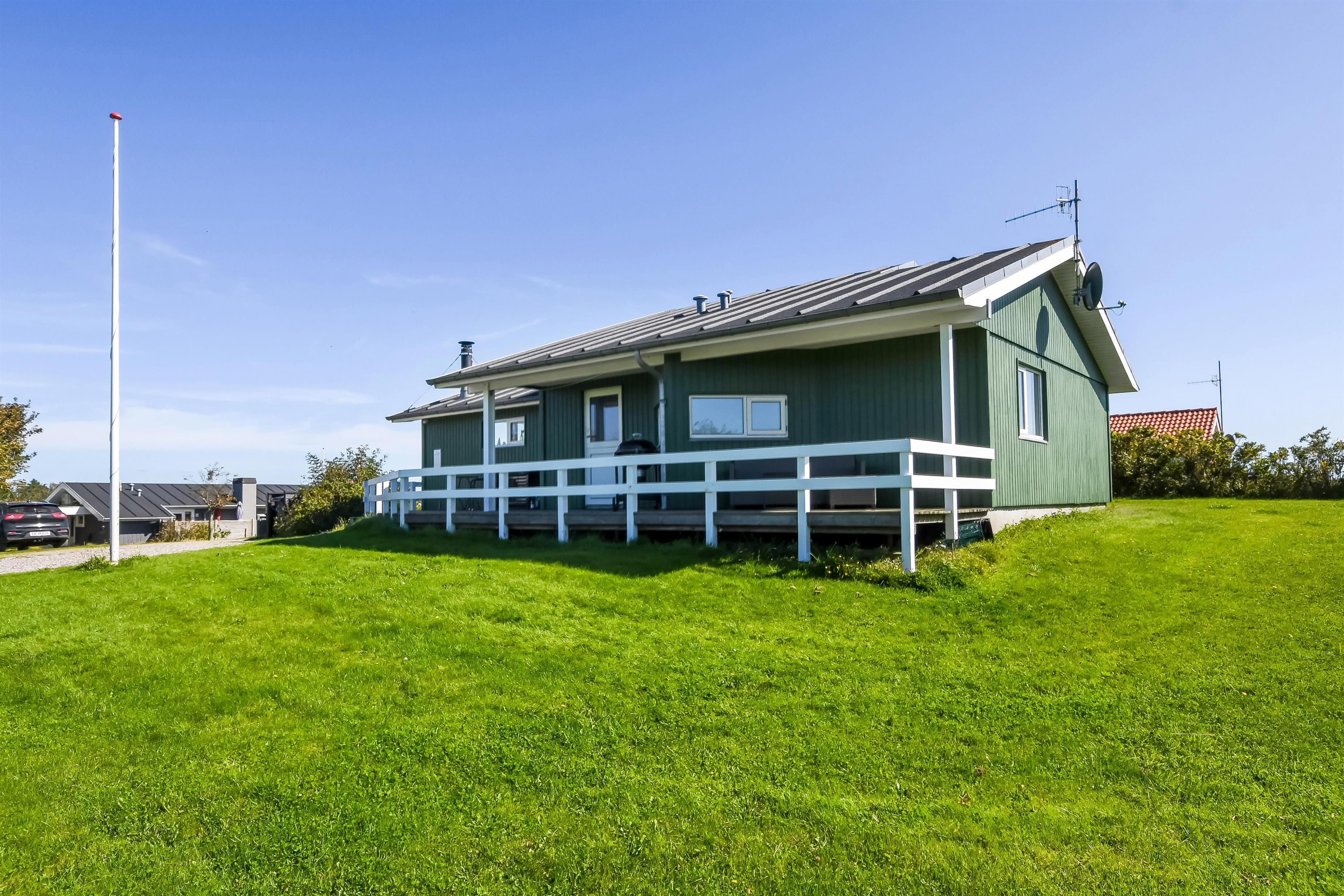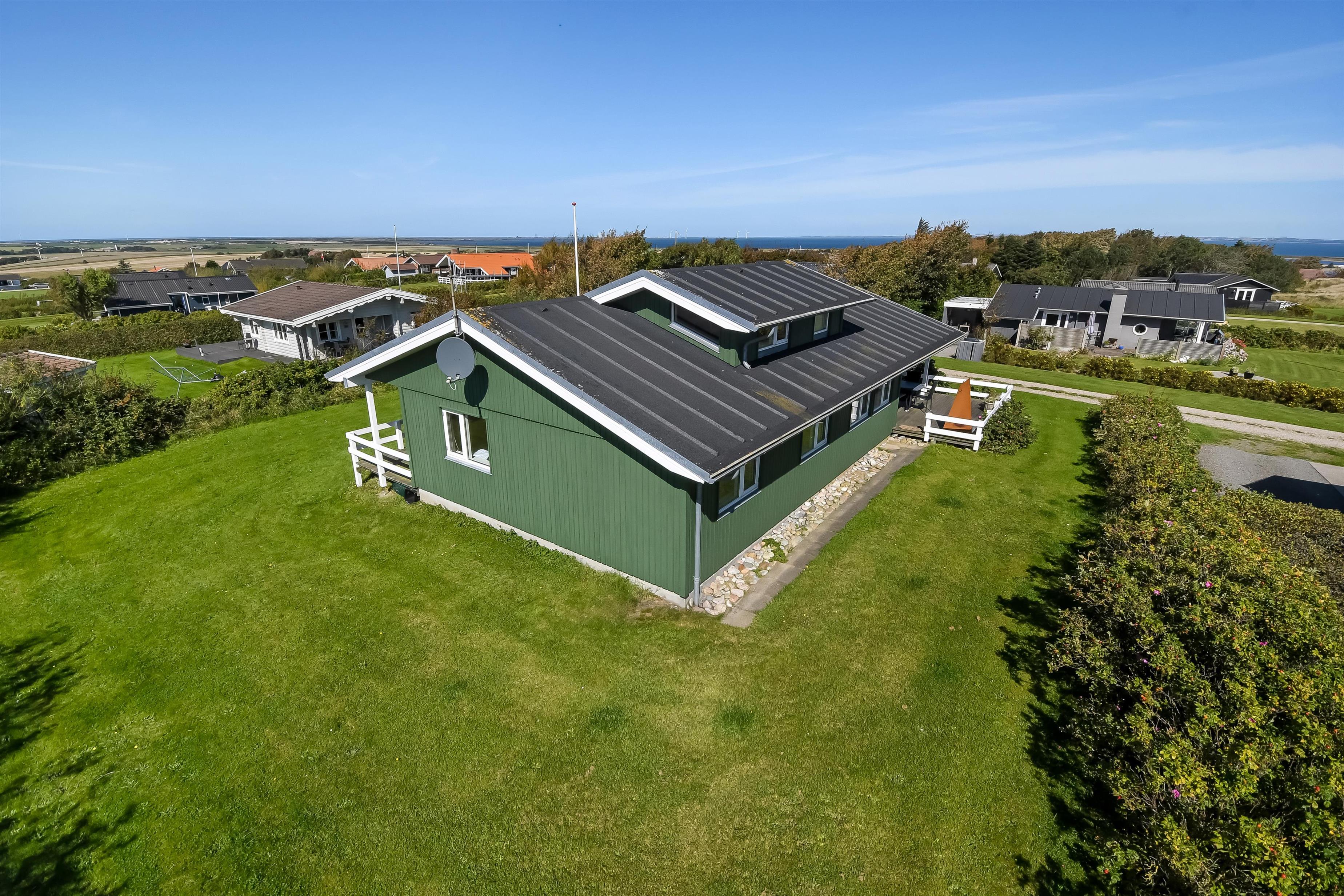 Huset har både åbne og overdækkede terrasser, udstyret med havemøbler og grill, som kan tilpasses efter behov. Uanset hvor du sidder, vil du kunne nyde læ- og solforholdene, og udsigten til Limfjorden er helt fantastisk. Der er et dejligt stisystem, som hurtigt fører dig ned til vandet. Cirka 500 meter fra huset ligger en ny, flot naturlegeplads i træ med både fodboldbane og rutsjebane – et hit for både store og små.