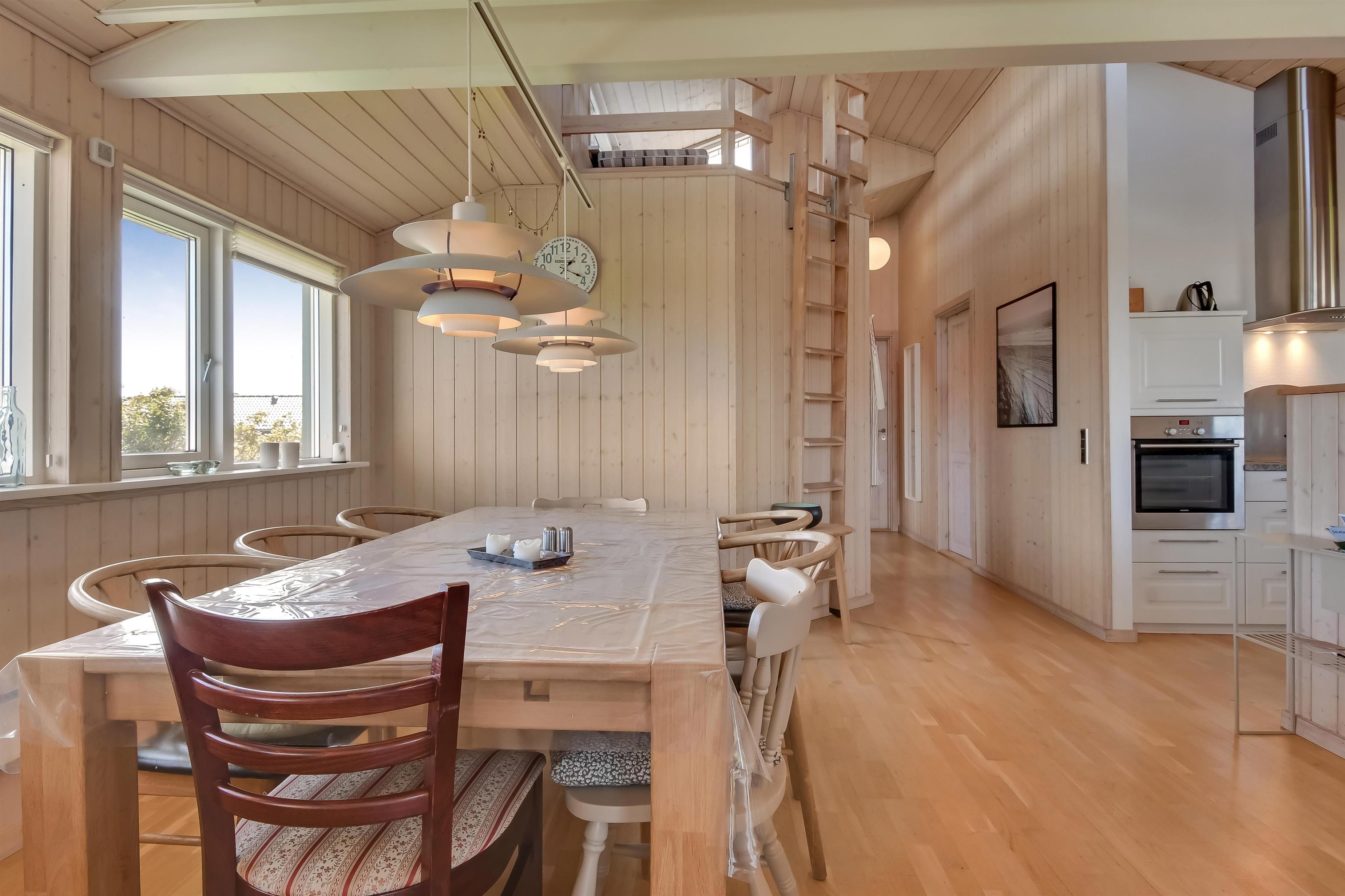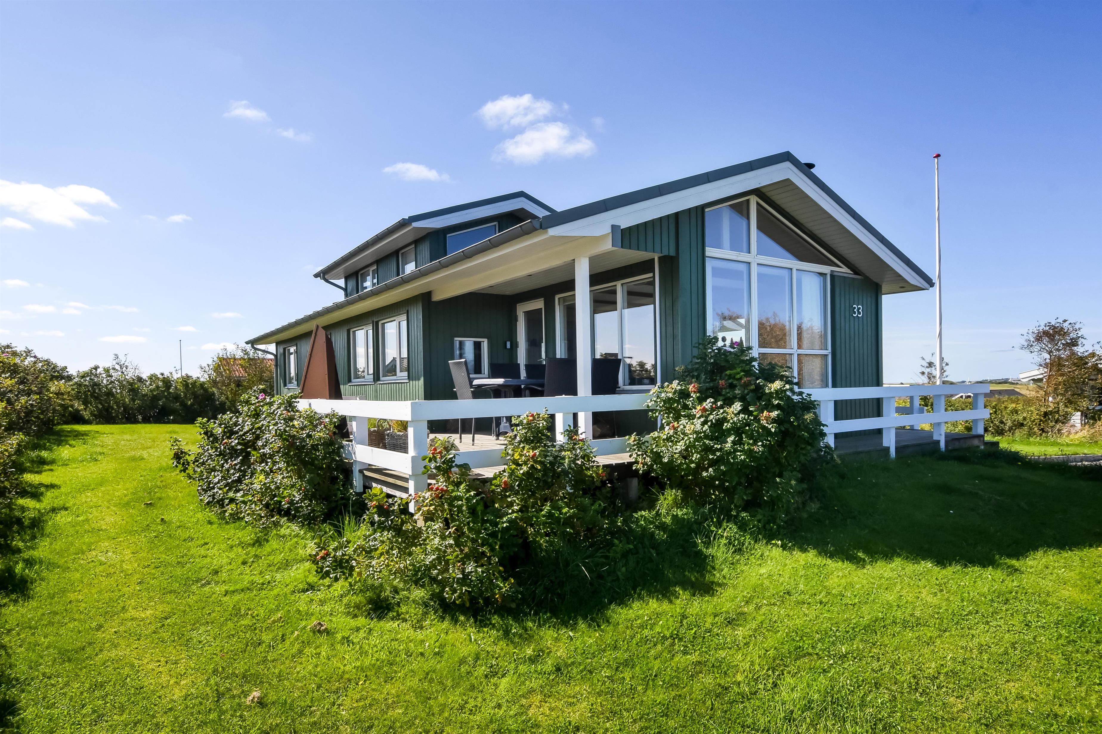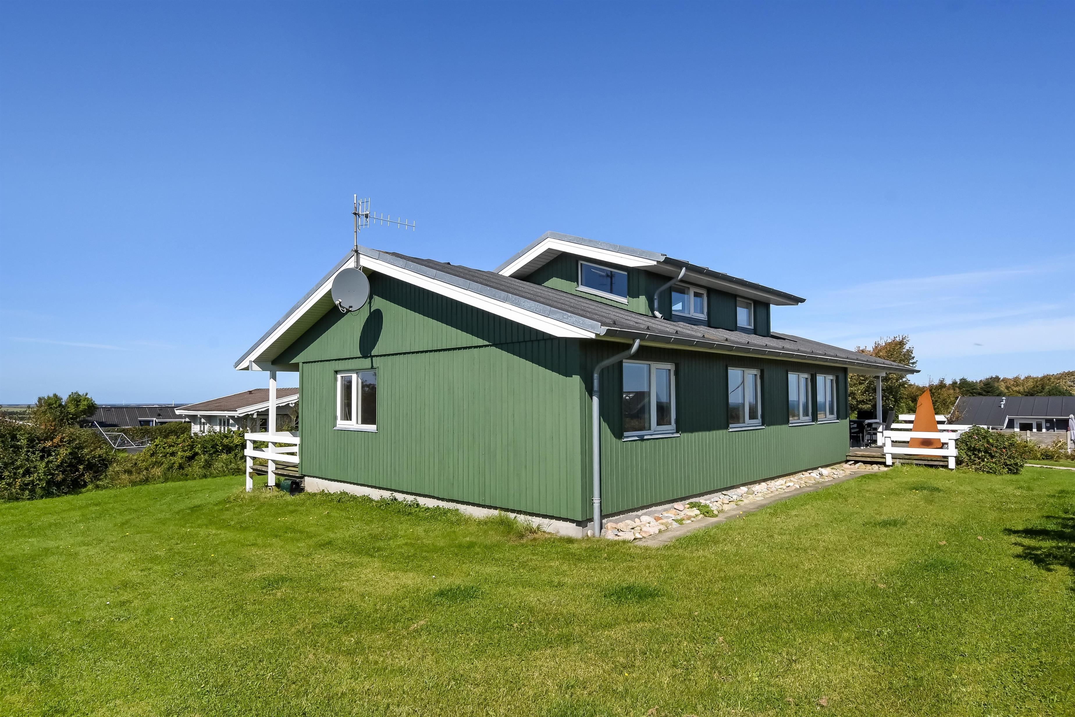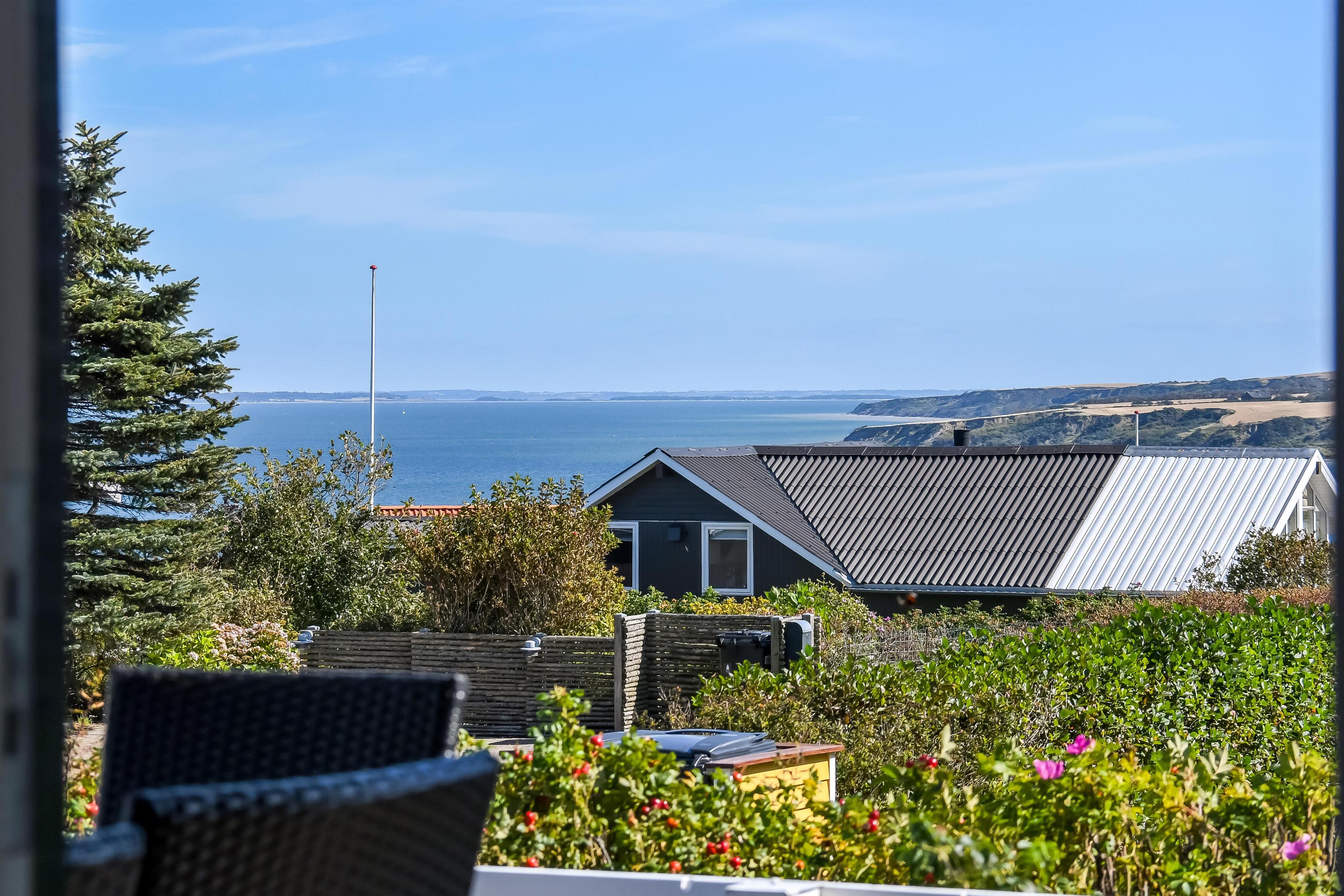 Huset har både åbne og overdækkede terrasser, udstyret med havemøbler og grill, som kan tilpasses efter behov. Uanset hvor du sidder, vil du kunne nyde læ- og solforholdene, og udsigten til Limfjorden er helt fantastisk. Der er et dejligt stisystem, som hurtigt fører dig ned til vandet. Cirka 500 meter fra huset ligger en ny, flot naturlegeplads i træ med både fodboldbane og rutsjebane – et hit for både store og små.