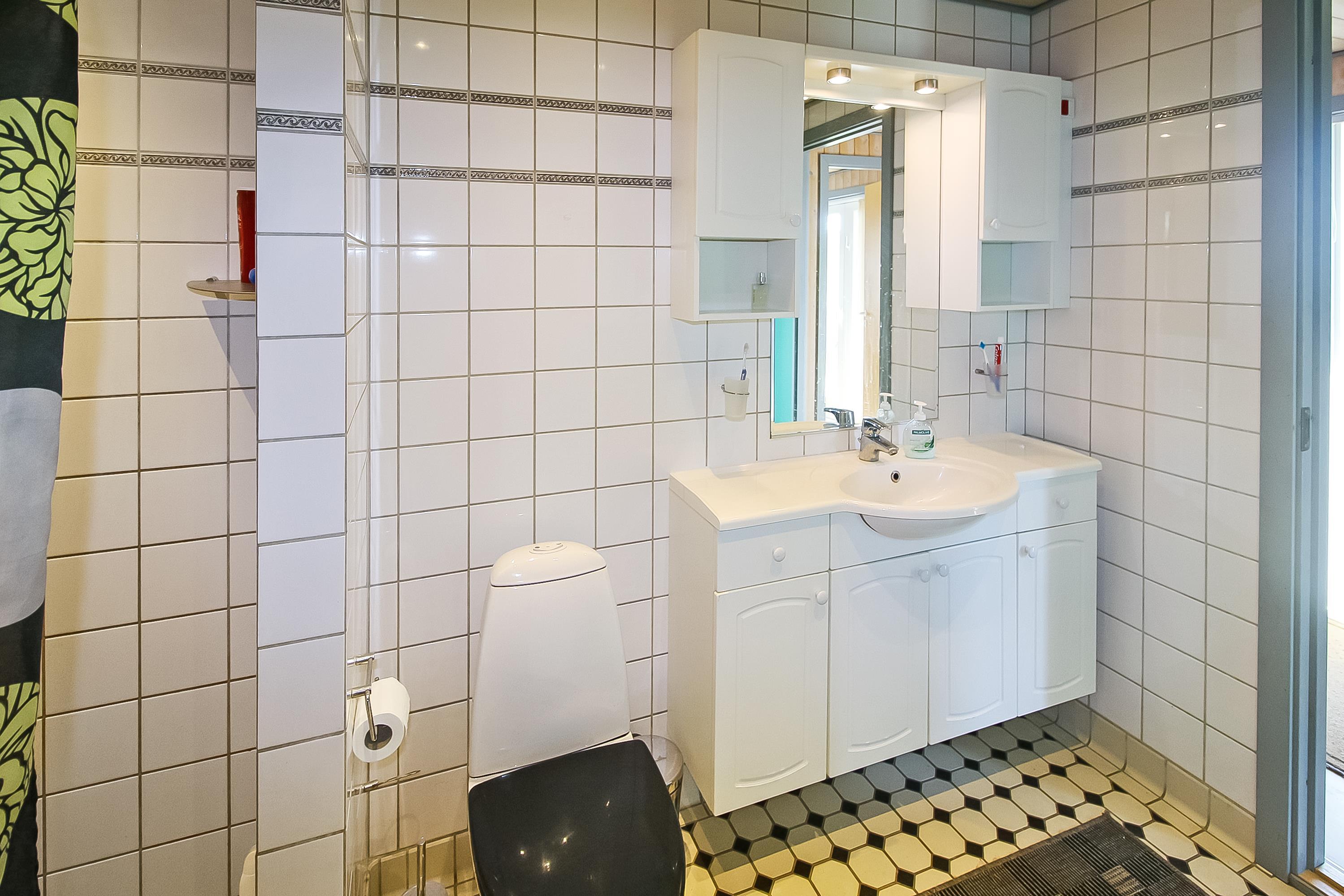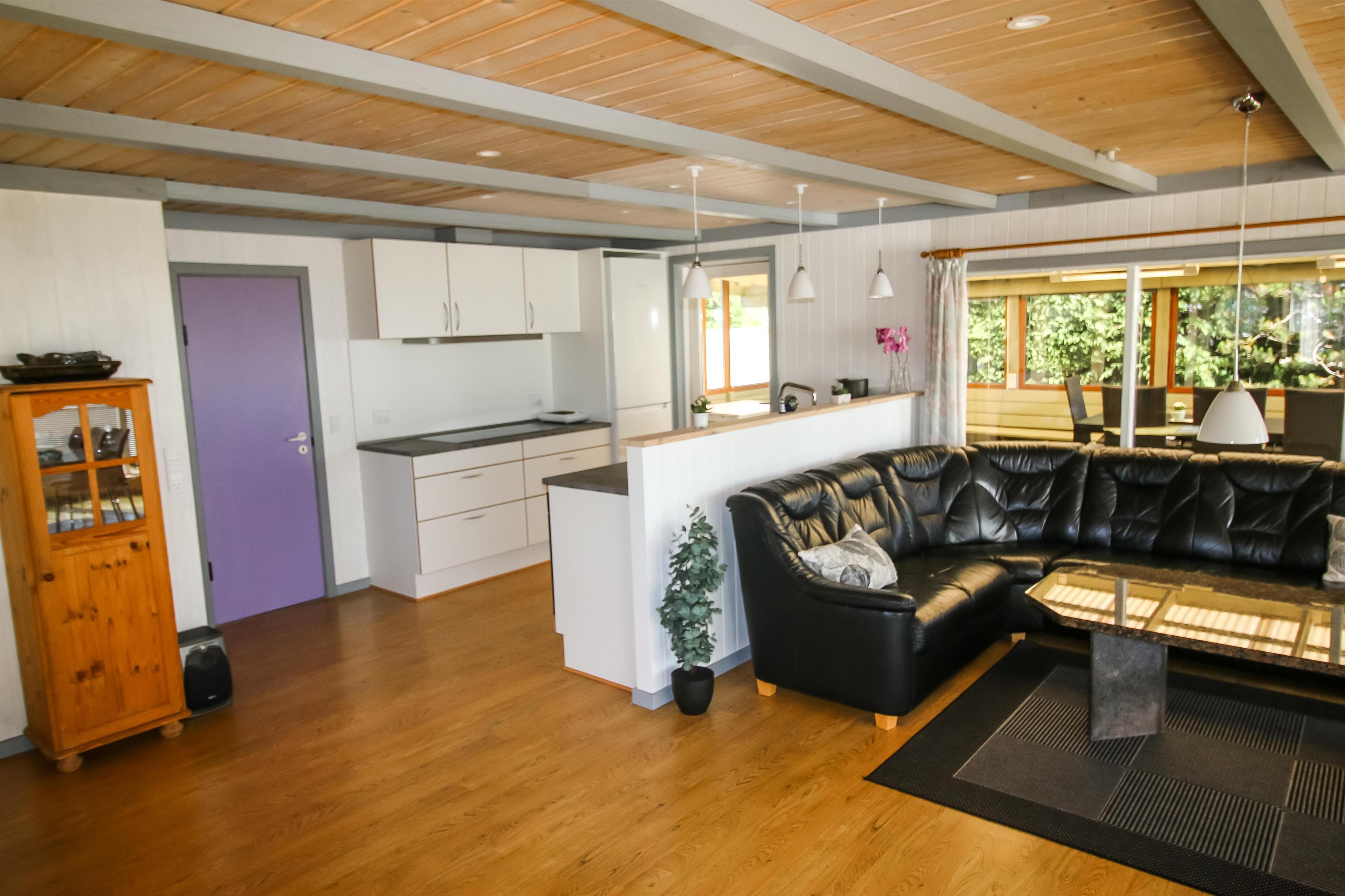 4 soverum (1DS, 1DS, 1DS, 4k). Opholdsstue med spiseplads, TV med DK og D kanaler og lædermøbler. Køkken med opvaskemaskine og mikroovn. Stort badeværelse med toilet, håndvask, bruseniche, gulvvarme og infarød Sauna. Ekstra toilet med toilet, håndvask, bruseniche og gulvvarme. Vaskemaskine og varmepumpe. I udhuset er der ekstra frysekapacitet.