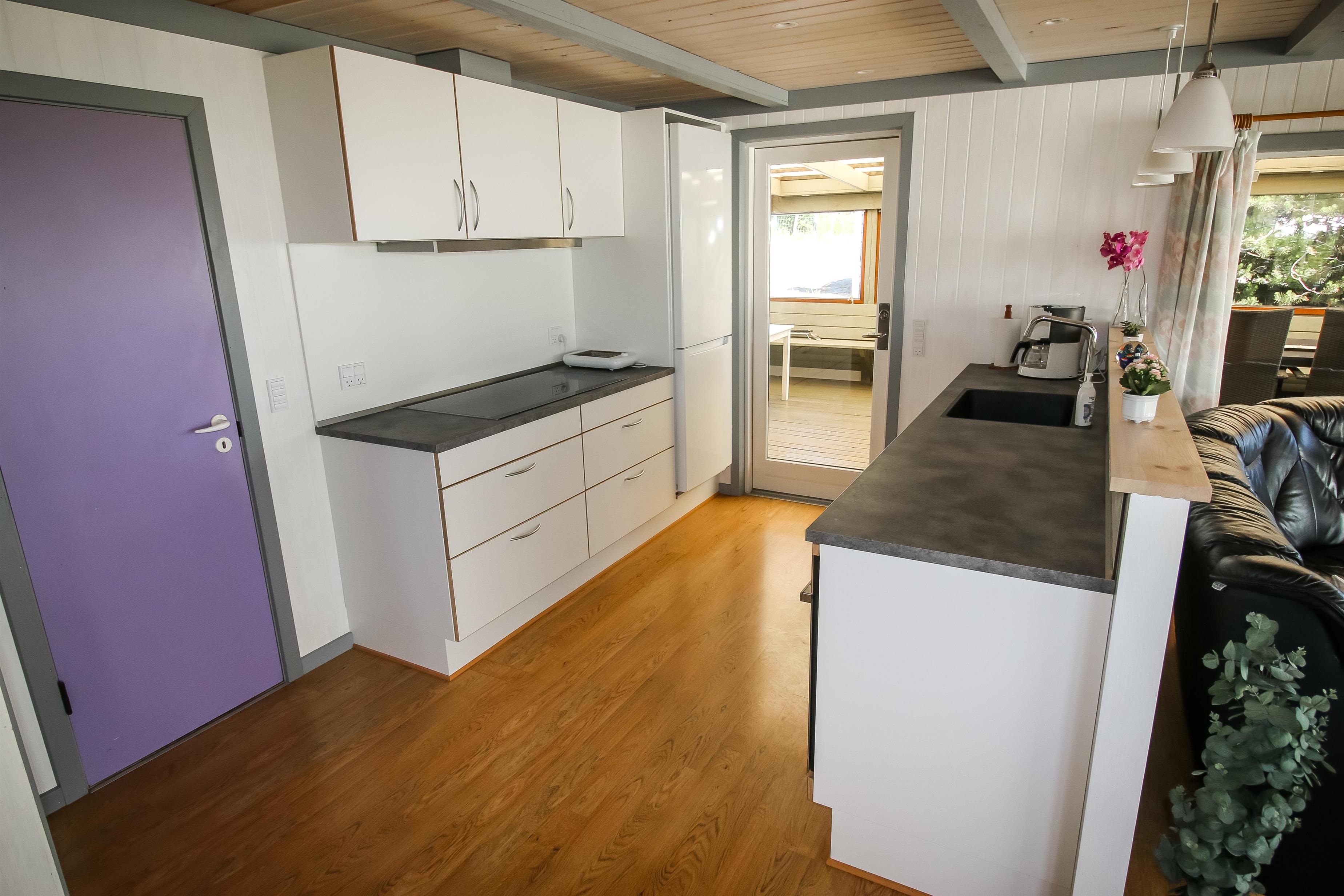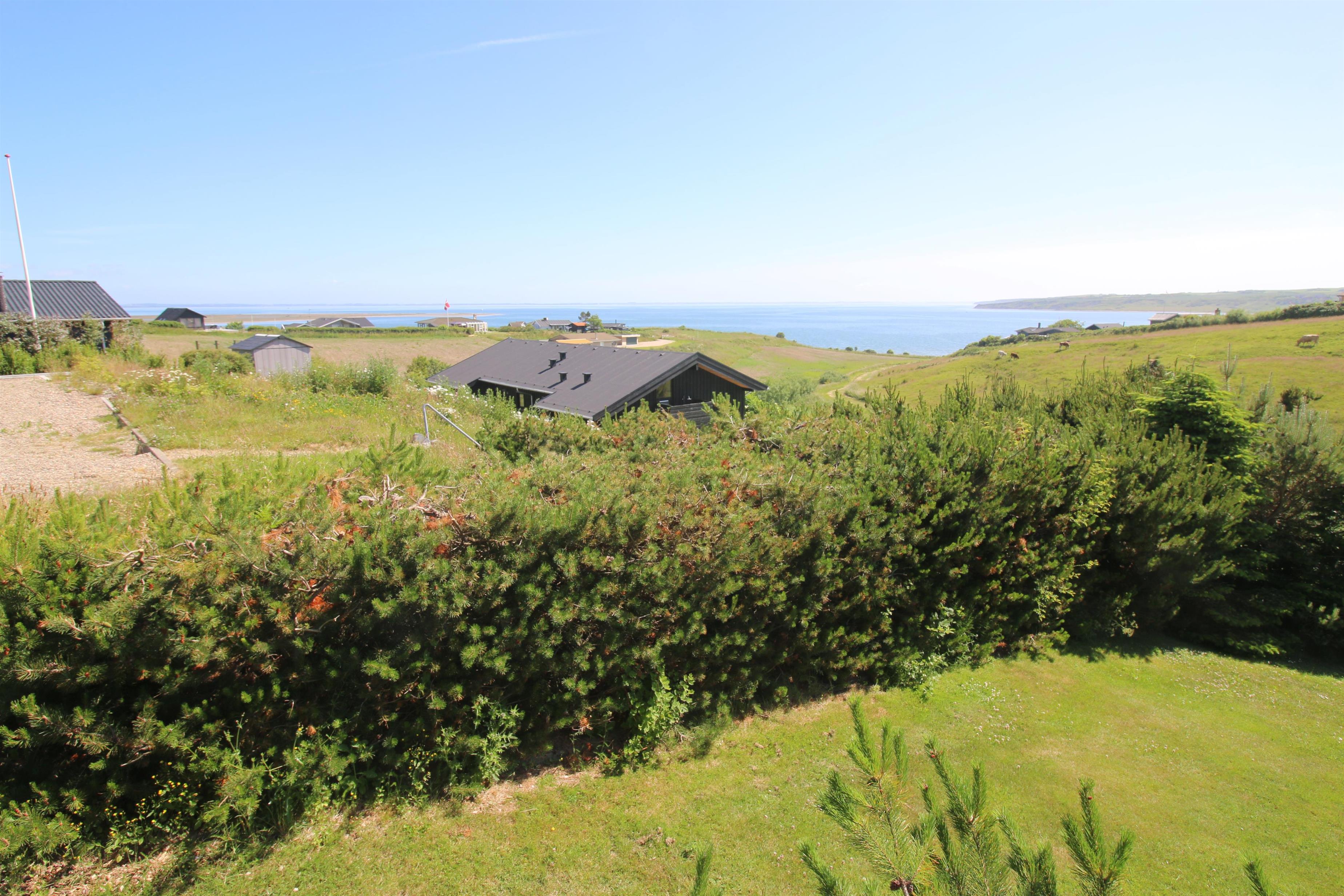 Fra køkkenet er der udgang til en stor udestue med spiseplads og fra opholdsstuen er der udgang til flere terrasser alle med panoramaudsigt over Limfjorden. Herudover findes der mange lækroge hvor man kan sidde ugeneret og nyde udsigten. På terrasserne er der liggestole, gasgrill og massere af havemøbler. Højt beliggende for enden af en blind vej, på en fantastisk velholdt, skrånende grund med mange god læ- og solkroge samt mange udsigtspunkter. Fra huset findes der et dejligt stisysten som fører direkte ned til vandet. kun ca 500m til indkøb. Der er gynger til de mindste gæster
