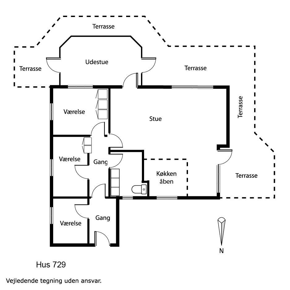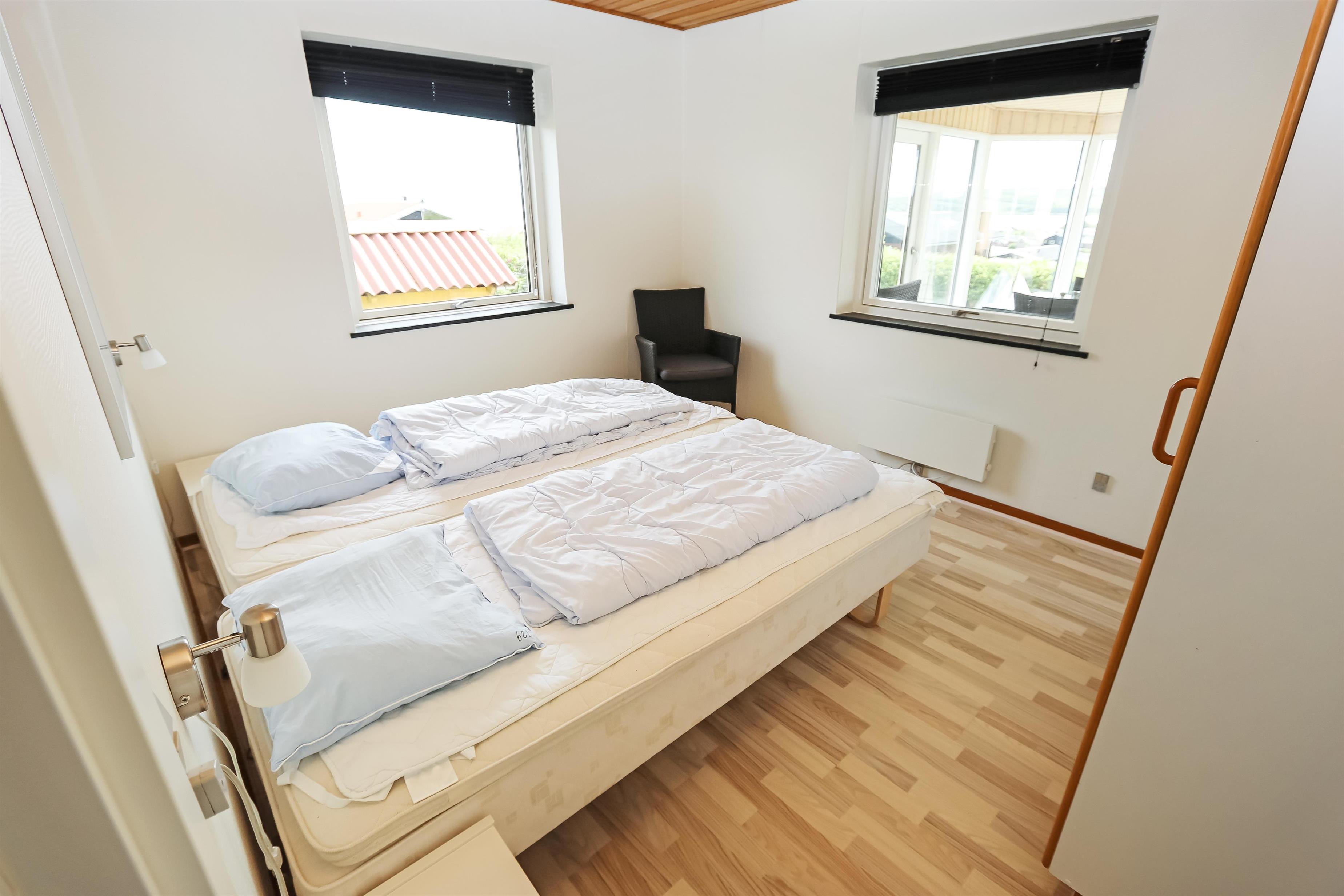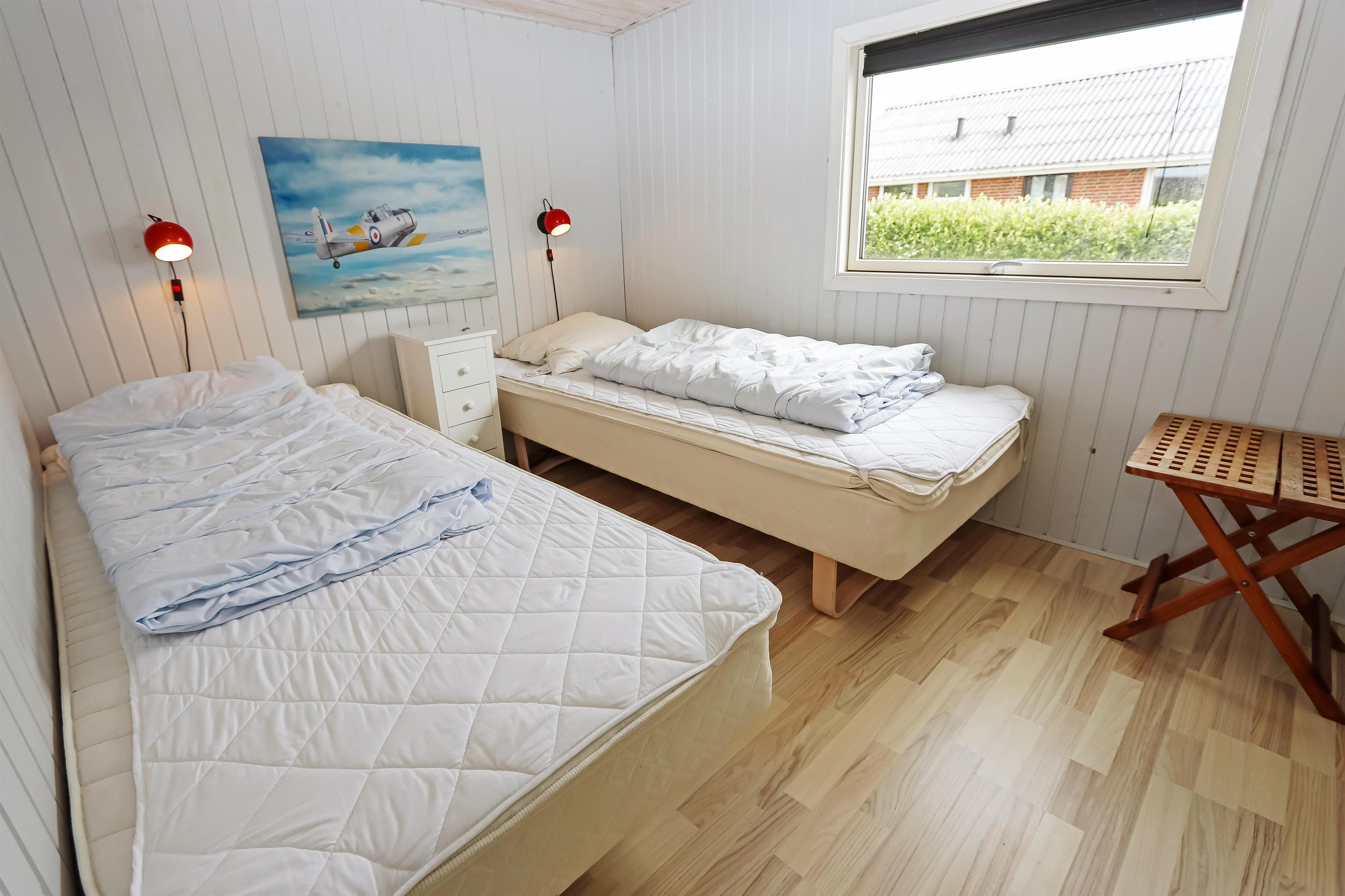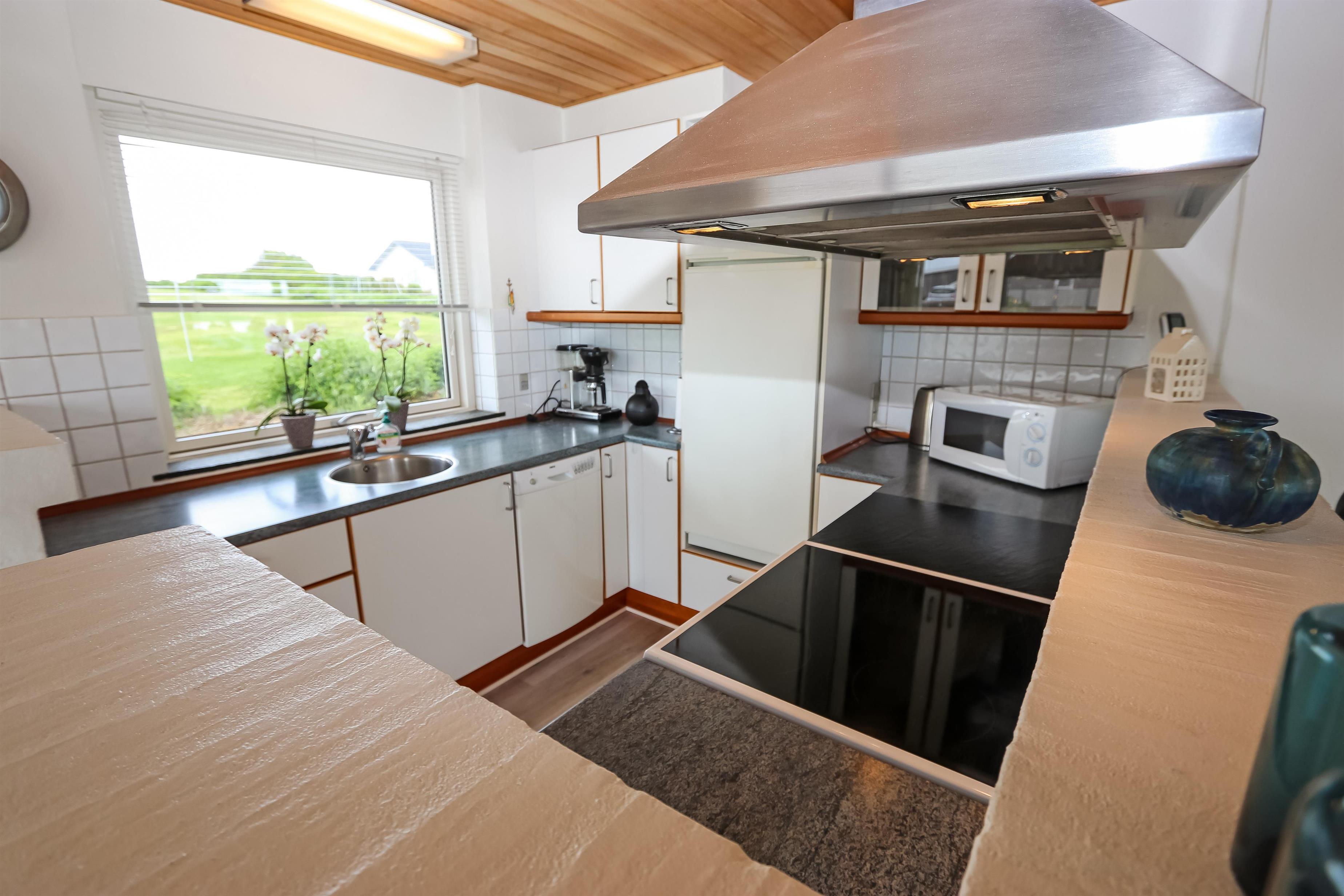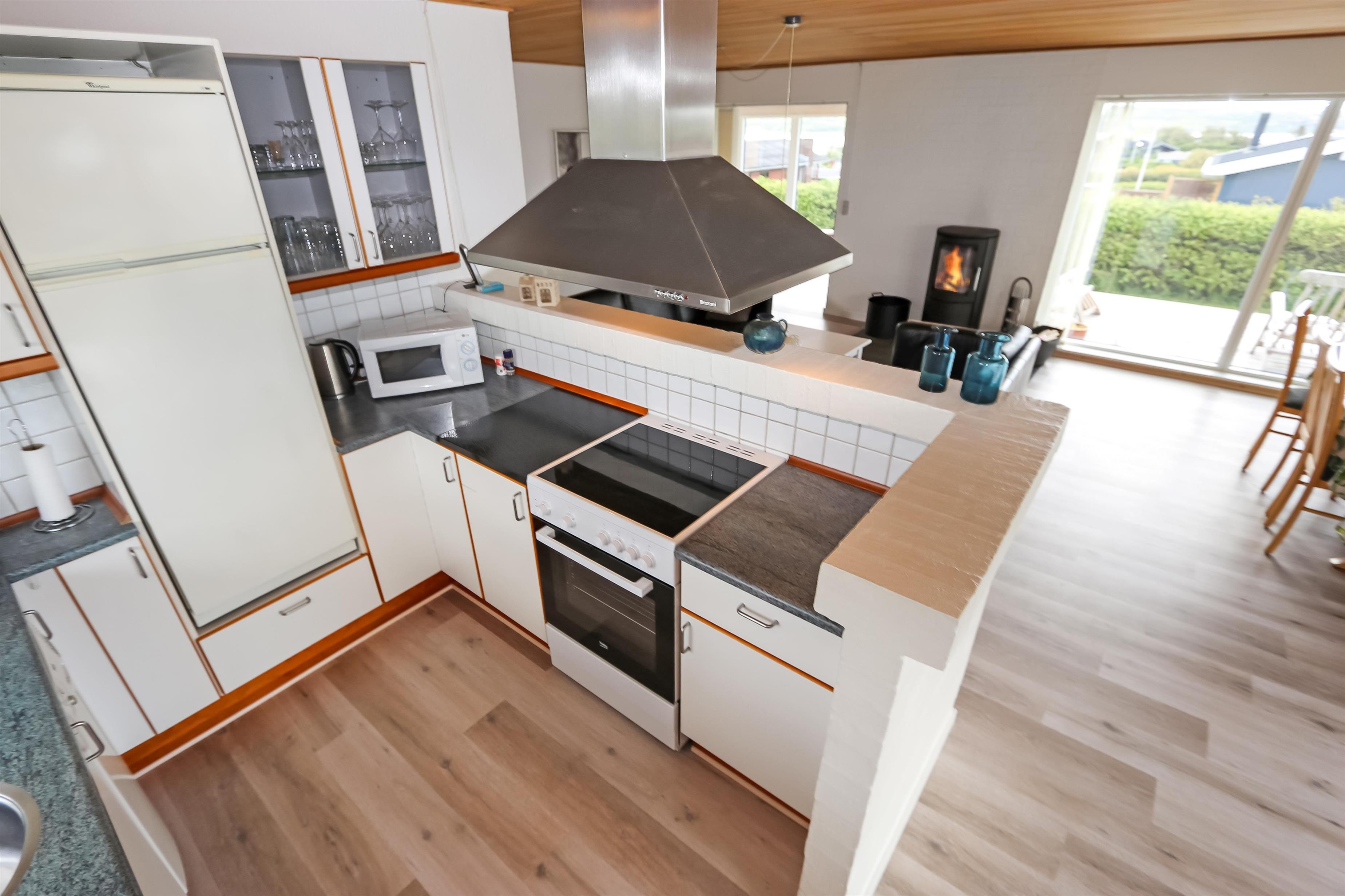 Huset har et pænt køkken med lille 20 liters fryser og mikroovn. Der er tre soveværelser: ét med dobbeltseng, og to med to enkeltsenge hver. Den hyggelige stue er udstyret med brændeovn og farve-tv med parabolantenne (dog kun tyske kanaler). Fra stuen er der desuden en flot udsigt over Limfjorden.