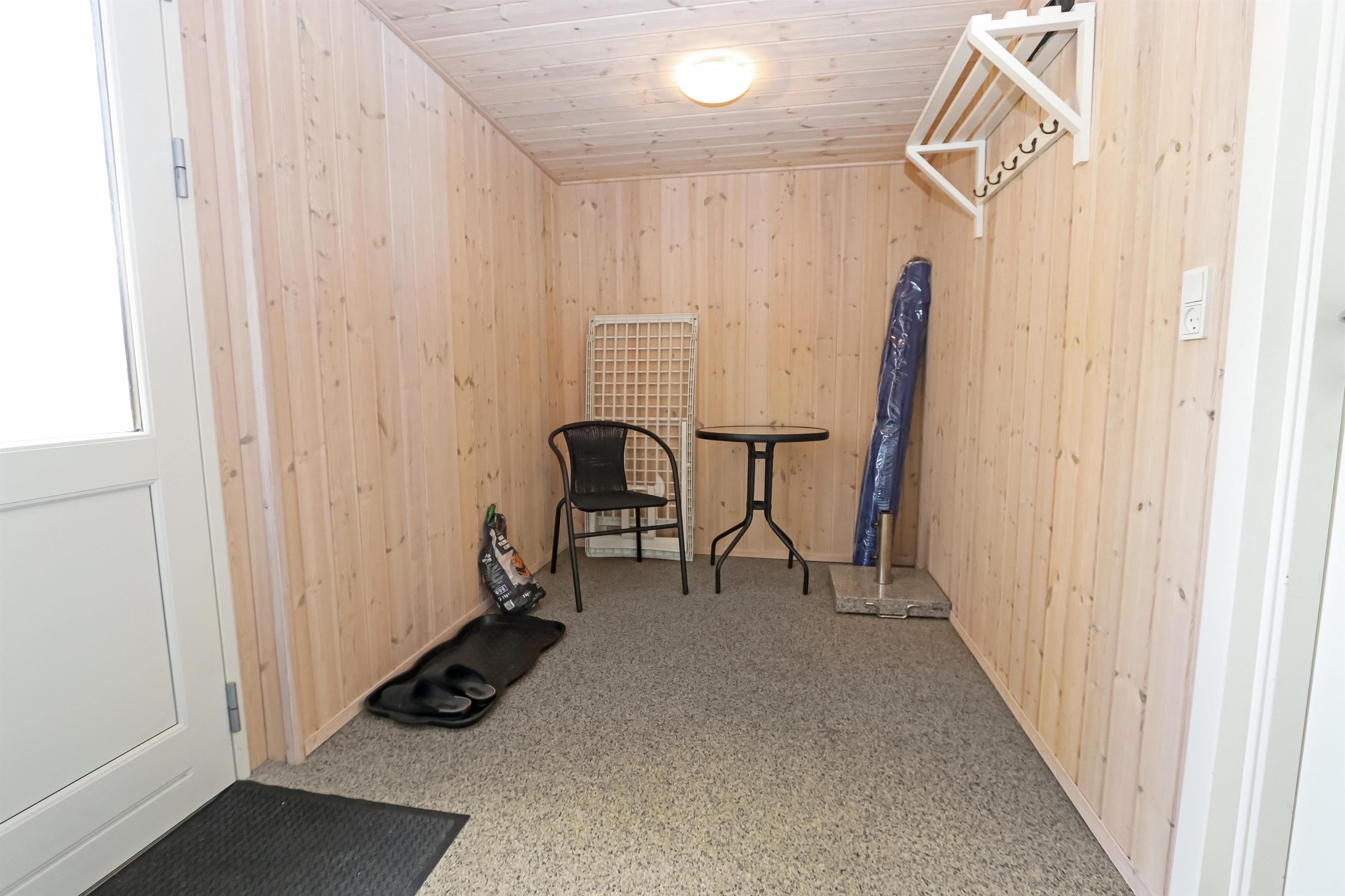 Huset har terrasse med liggestole og havemøbler samt en ny udestue, hvor man kan nyde solen i læ. Der er installeret varmepumpe, og huset har gratis internetadgang.