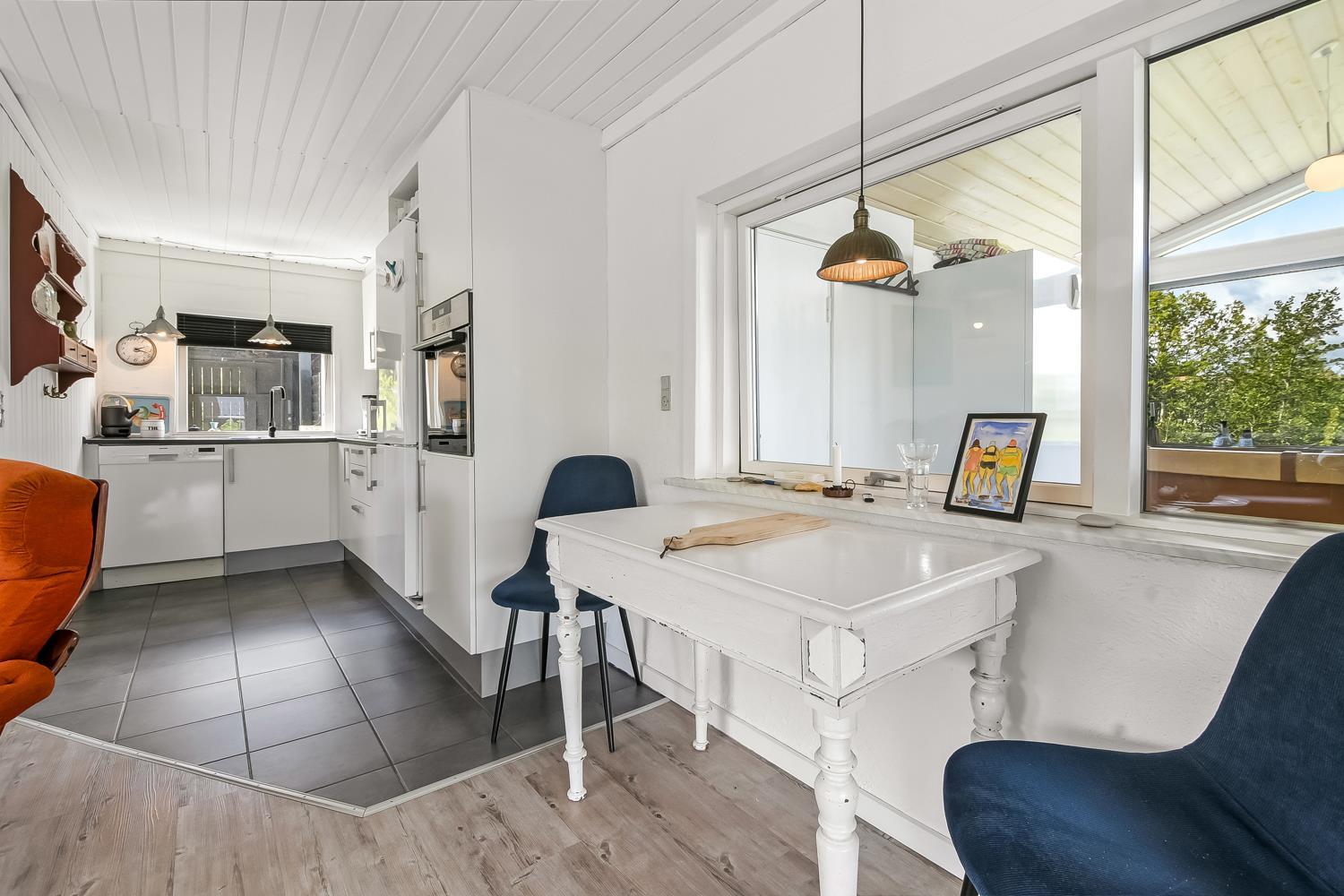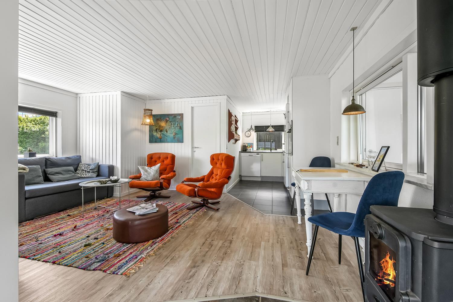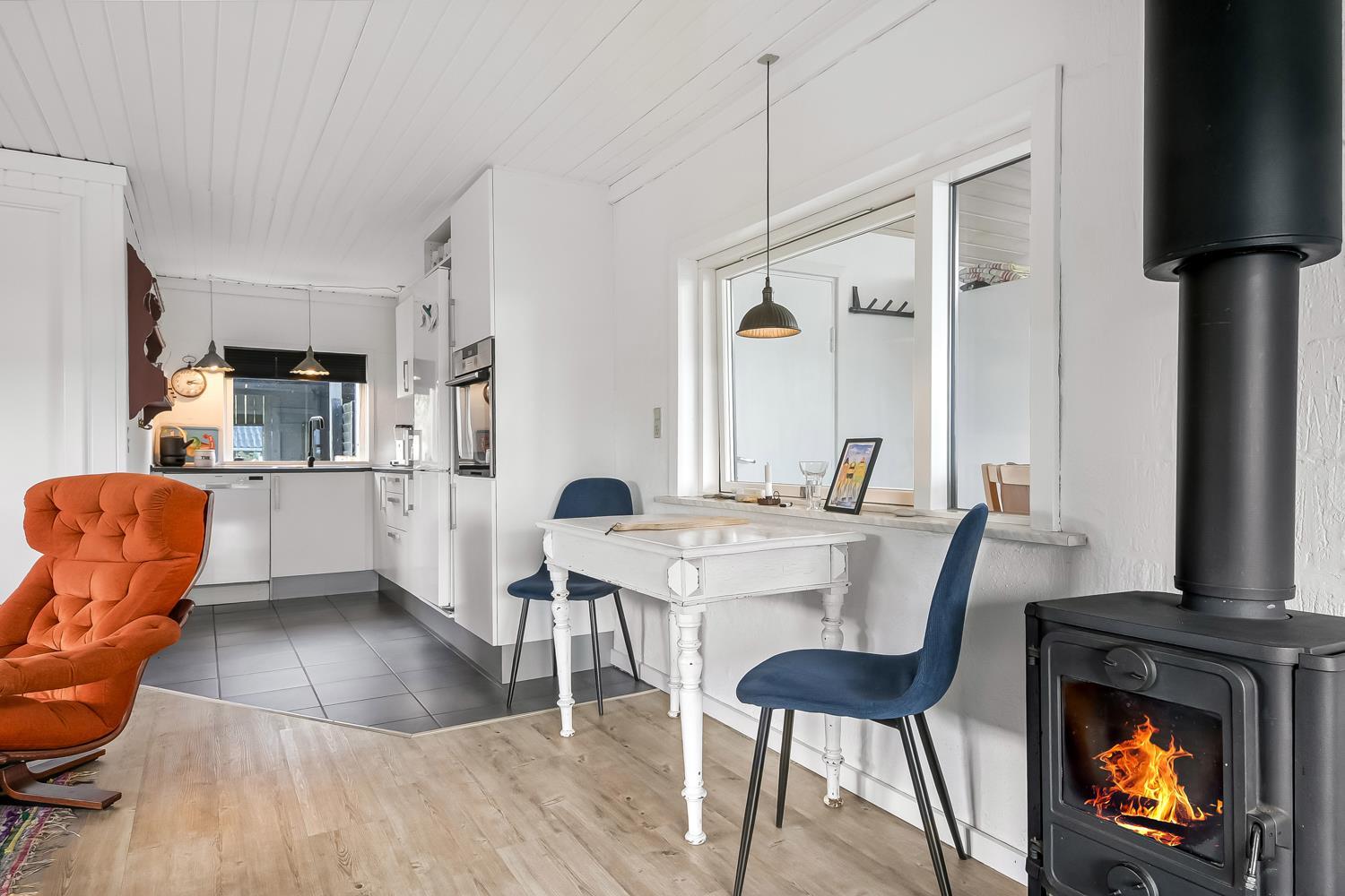 Velholdt feriehus på ca. 79 m2 og skønt indrettet med bl.a pæne møbler samt tv med tyske kanaler og mulighed for streaming. Huset rummer et kombineret opholdsstue og køkkenhjørne med keramiske kogeplader, indbygningsovn, emhætte, mikroovn, opvaskemaskine og køleskab. Der er 2 soveværelser med gulvtæppe -en 3/4 og to enkeltsenge. Fra opholdsstuen er der gennem de store fløjdøre adgang til en tilbygget spisestue med spiseplads, hvor en pragtfuld udsigt over landskabet med Limfjorden i baggrunden kan nydes. Herfra er der også adgang til husets badeværelse indeholdende toilet, håndvask, nedsænket bruser, vaskemaskine samt klinkegulv med gulvvarme. Rygning er ikke tilladt i huset. Max 1 lille hund tilladt. Et rigtig dejlig sommerhus som er utroligt hyggeligt og til at overskue.