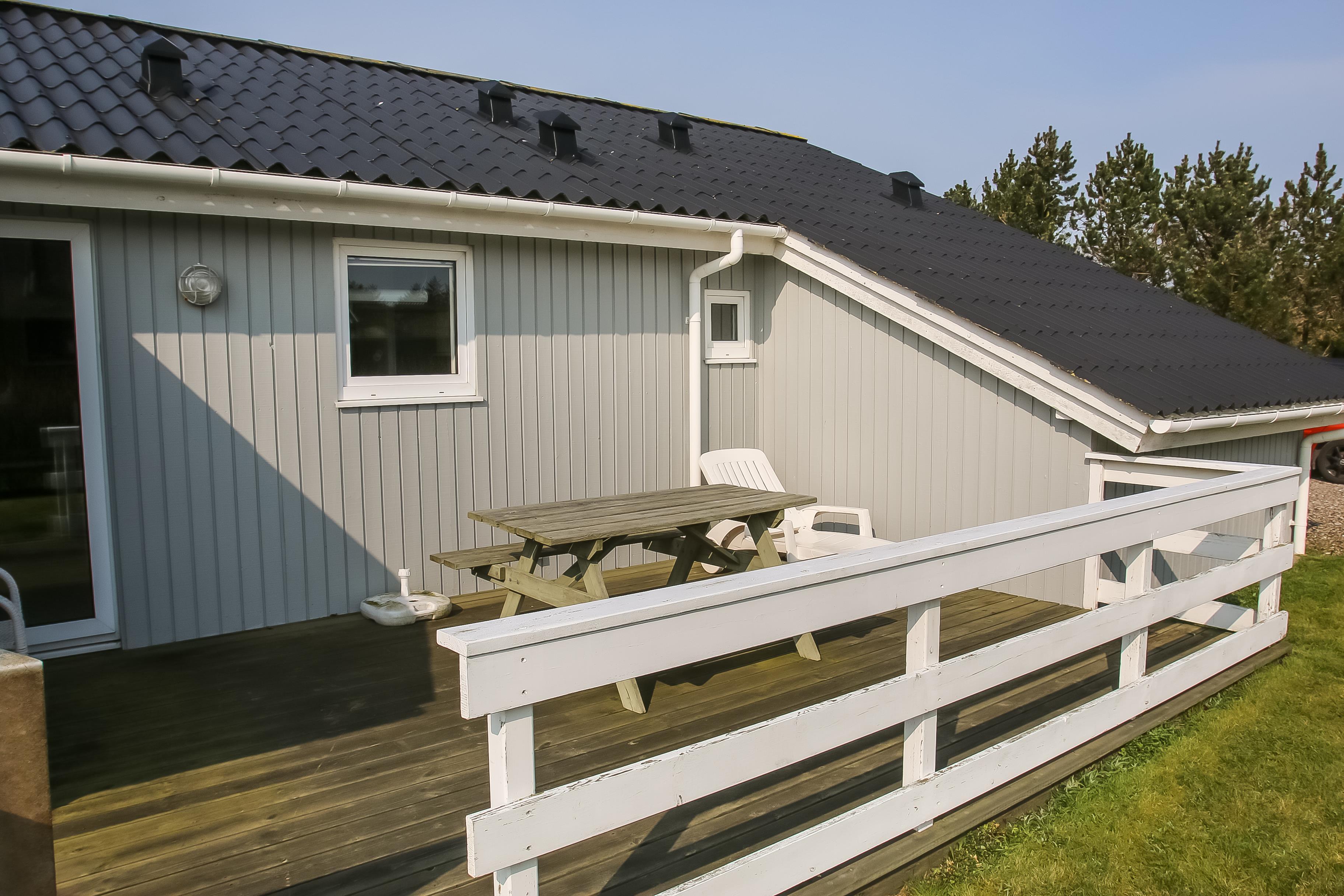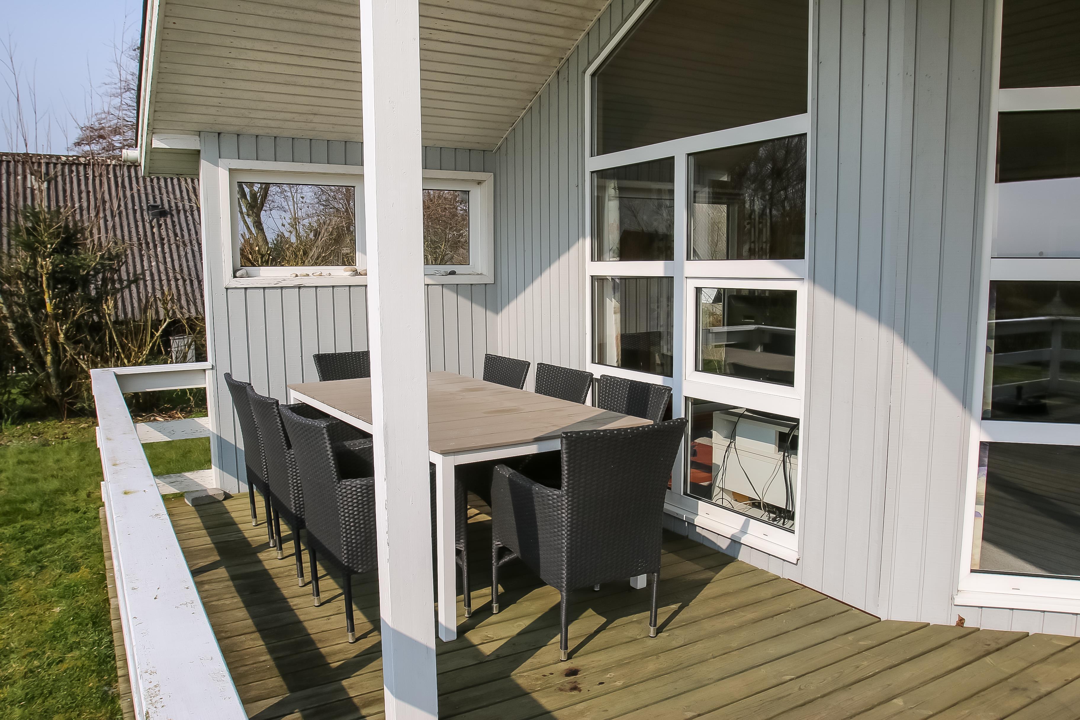Her er en dejlig delvis overdækket terrasse med delvis fjordudsigt. Man fornemmer roen og nærheden til naturen. Her er også som regel læ, så man kan grille og hygge med venner og famile.Tag gerne udstyr med til vandsport såsom surfudstyr, kajak eller snorkeludstyr, da huset ligger tæt på stranden. Faktisk ligger der nogle store områder med Limfjordsøsters nogle hundrede meter langs stranden mod øst. Her kan man faktisk samle dem op på få centimeters vand, men der er også andre jagtmuligheder Vil man gerne have en vejrsikker badedag, så får man ved leje af dette sommerhus gratis adgang til Lemvig Idræts-& Kulturcenter hvor der er svømmehal. Her får I et feriehus i rolige omgivelser og tæt på vand og natur. Et godt sted af lade batterierne op.