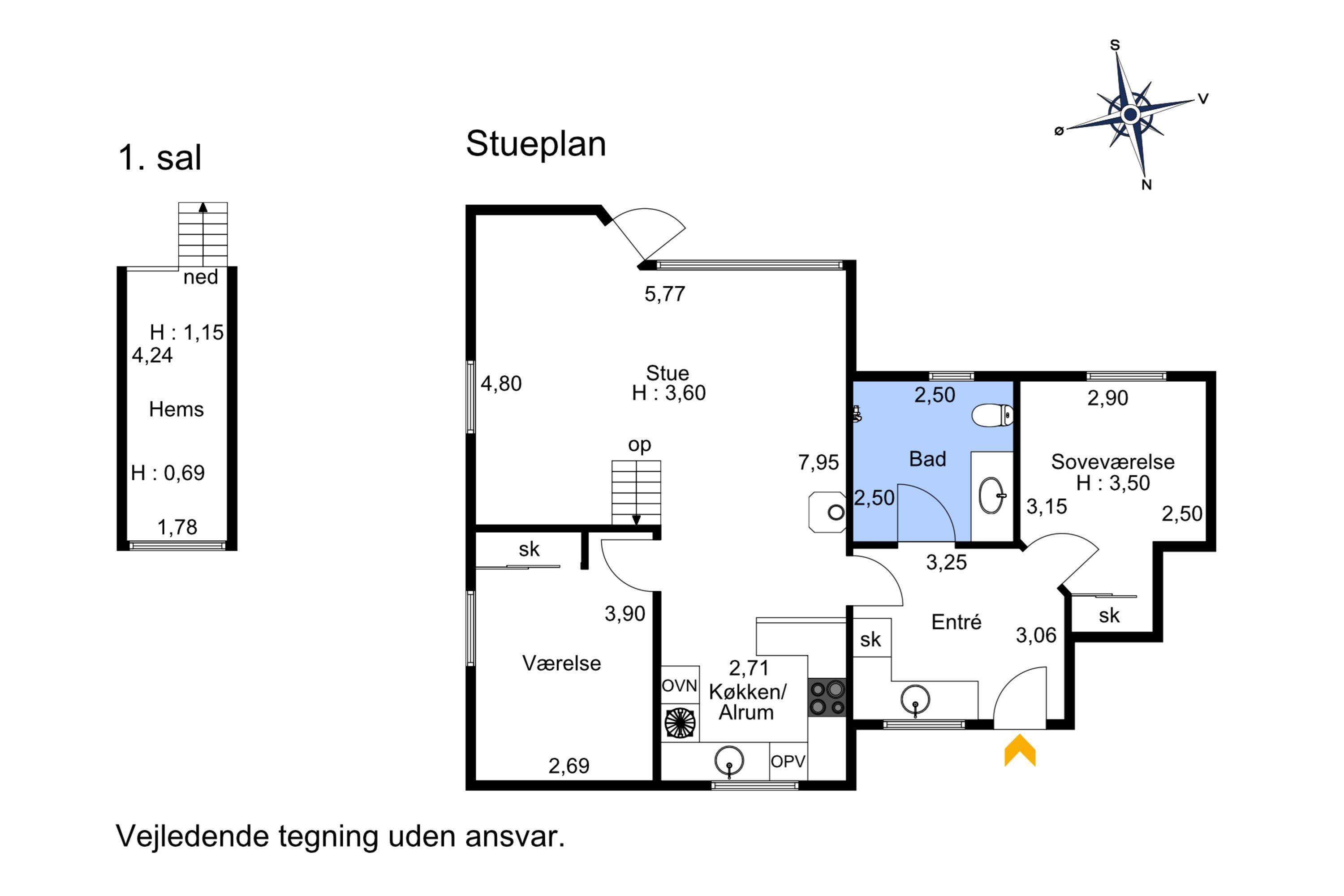 Dette flotte og meget velholdte feriehus i træ ligger med en god beliggenhed tæt på den børnevenlige strand ved Gjellerodde. Køkkenet er udstyret med glaskeramisk komfur, køle-/fryseskab, mikroovn og opvaskemaskine. I stuen er der lofter åben til kip og de store vinduespartier giver et godt lysindfald i rummet. Opholdsstuen er møbleret med pæne møbler og indeholder brændeovn, stereoanlæg med cd og fjernsyn med danske DR-kanaler og TV2. Gratis trådløs internetadgang. Huset har et særdeles flot badeværelse med bruser og gulvvarme. Flot bryggers med vaskemaskine og god plads til ophængning af tøj mv. Huset har 2 rummelige soverum med 1 dobbeltseng i hver. Fra stuen er der en stejl stige op til en hems med 2 sovepladser. Der er gulvvarme i hele huset. Et lækkert feriehus. Maks. 2 hunde.
