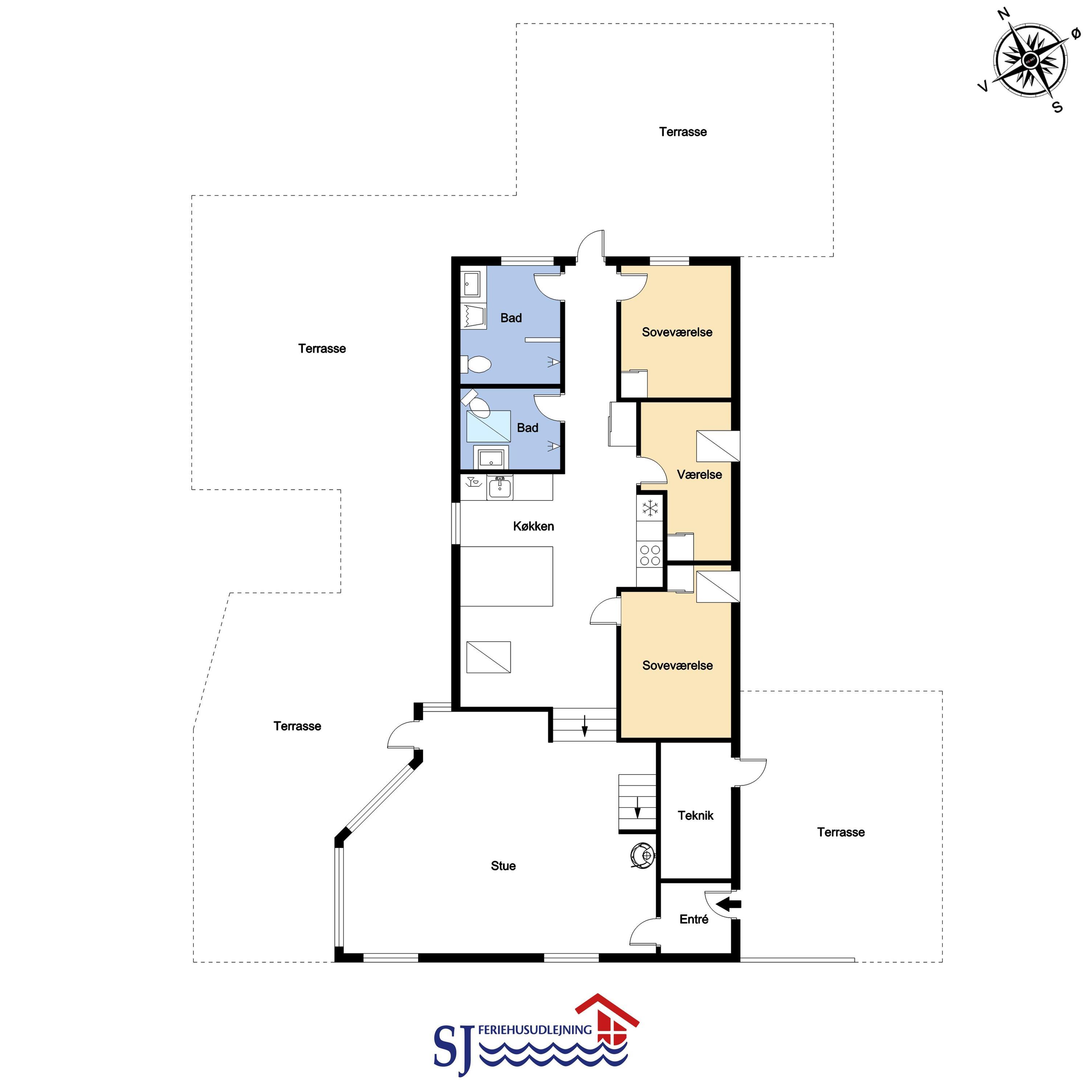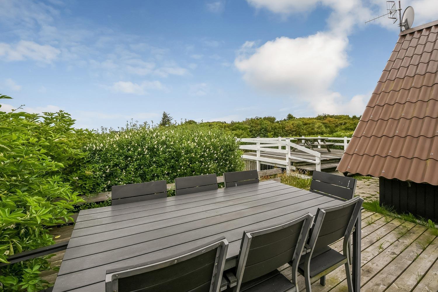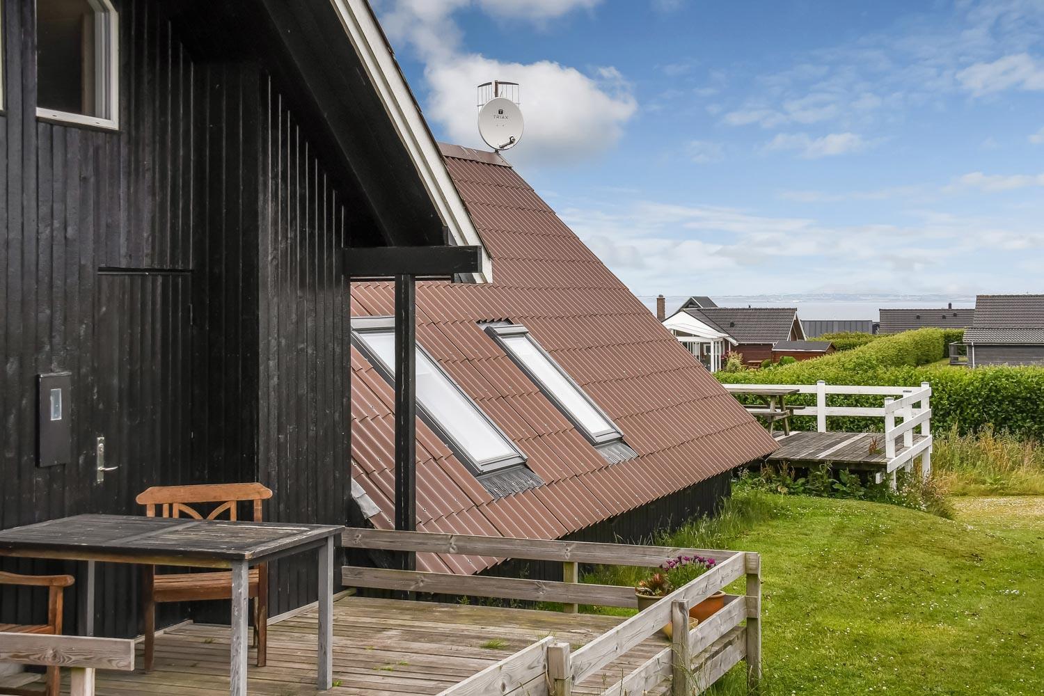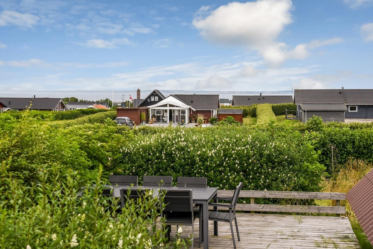 Husets træ-terrasseanlæg er noget helt særligt og med 3 terrasser findes der altid en plads i solen. Uanset hvilken terrasse der vælges er der altid en fantastisk udsigt. Masser af havemøbler. Solstole og grill kan flyttes rundt på terrasserne efter behag. Højt, ugeneret beliggende på en stikvej på en velholdt grund på ca. 1.002 m2. Fra huset findes der er dejligt stisystem, som på få minutter fører direkte ned til vandet. Ca. 300 m fra huset ligger den nye flotte naturlegeplads i træ med fodboldbane og rutsjebane og der er heller ikke langt til indkøb eller til stranden ved Gjellerodde. Der er kun fire km til Lemvig by, som er en livlig handelsby med mange butikker, fiskerestaurent, museum mm.
