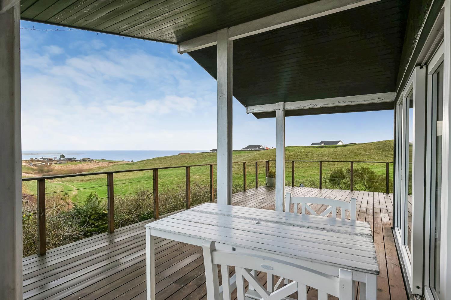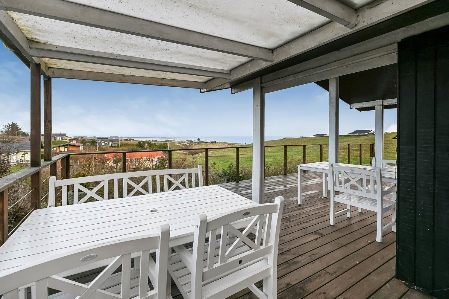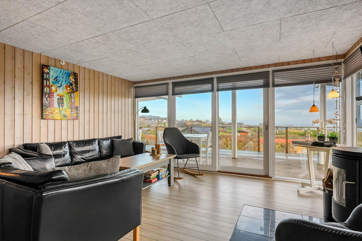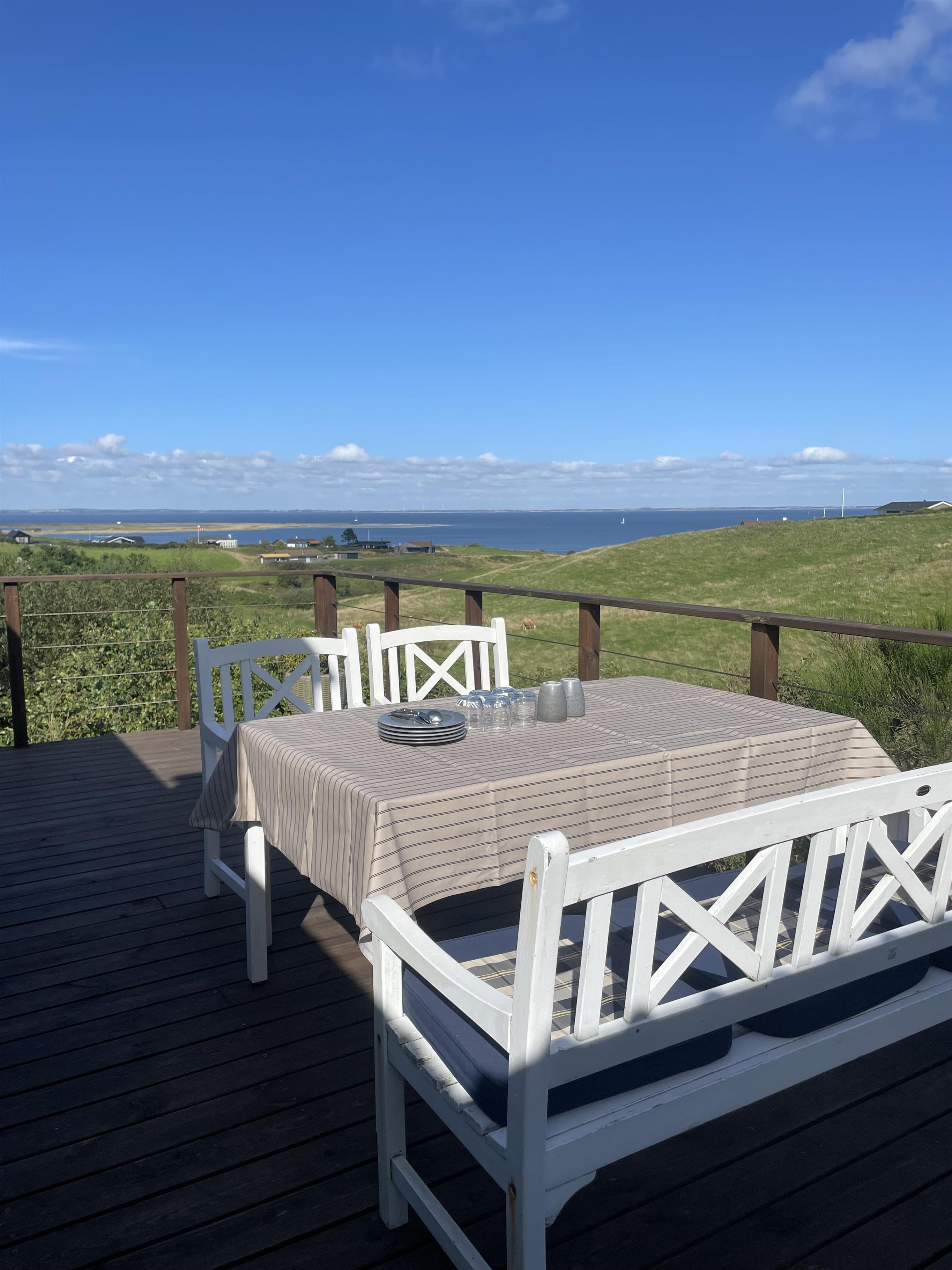 Dette velholdte feriehus byder på en enestående panoramaudsigt over Limfjorden – en udsigt, der kan nydes fra både stue og terrasse, og som gør opholdet til noget ganske særligt. Et fantastisk dejligt feriehus, der kan benyttes året rundt – perfekt for den lille familie eller for par, som ønsker fred, natur og en betagende udsigt.
