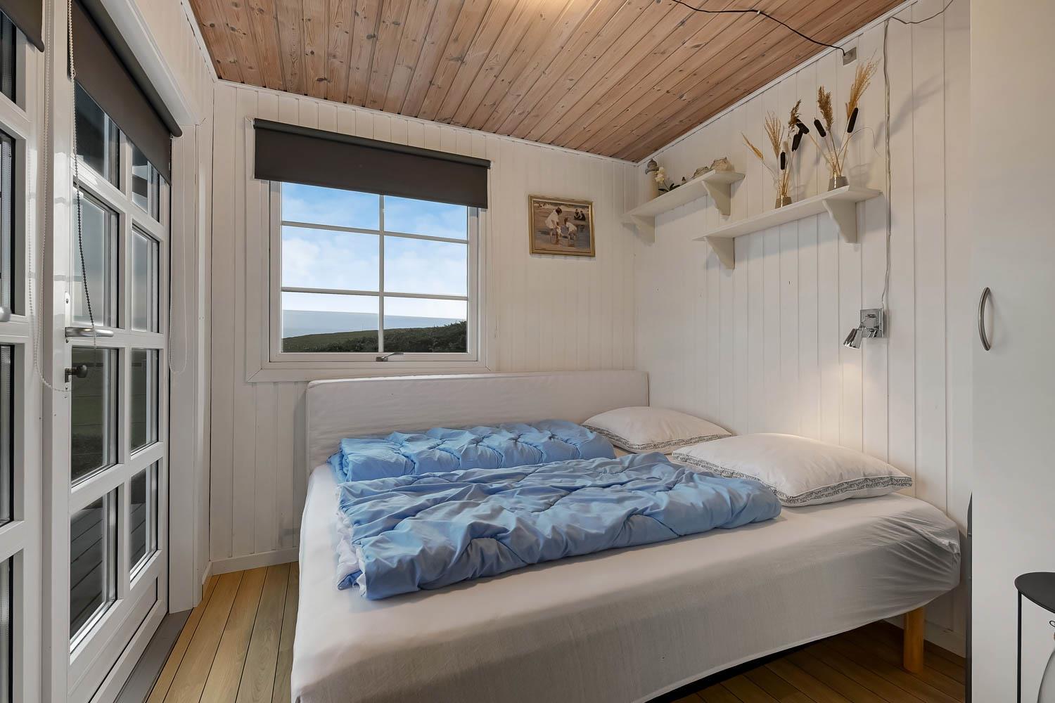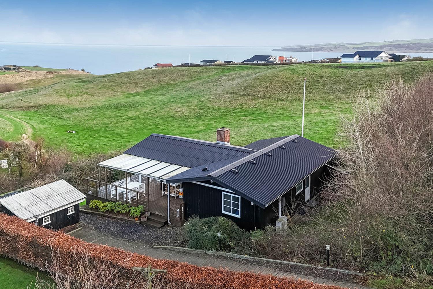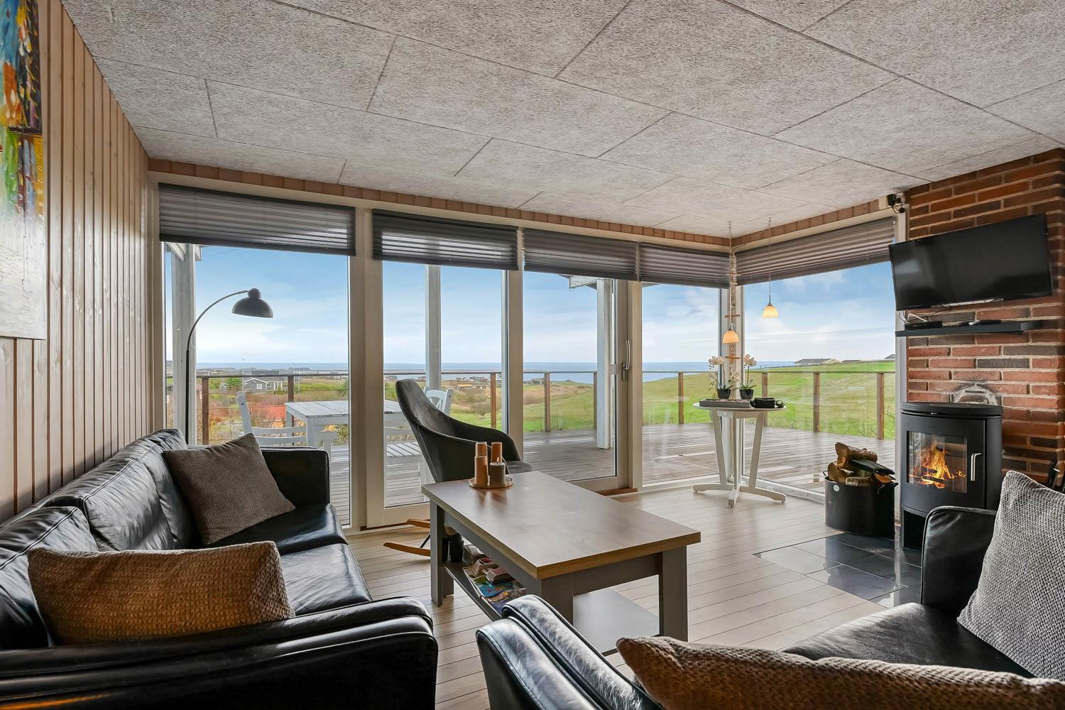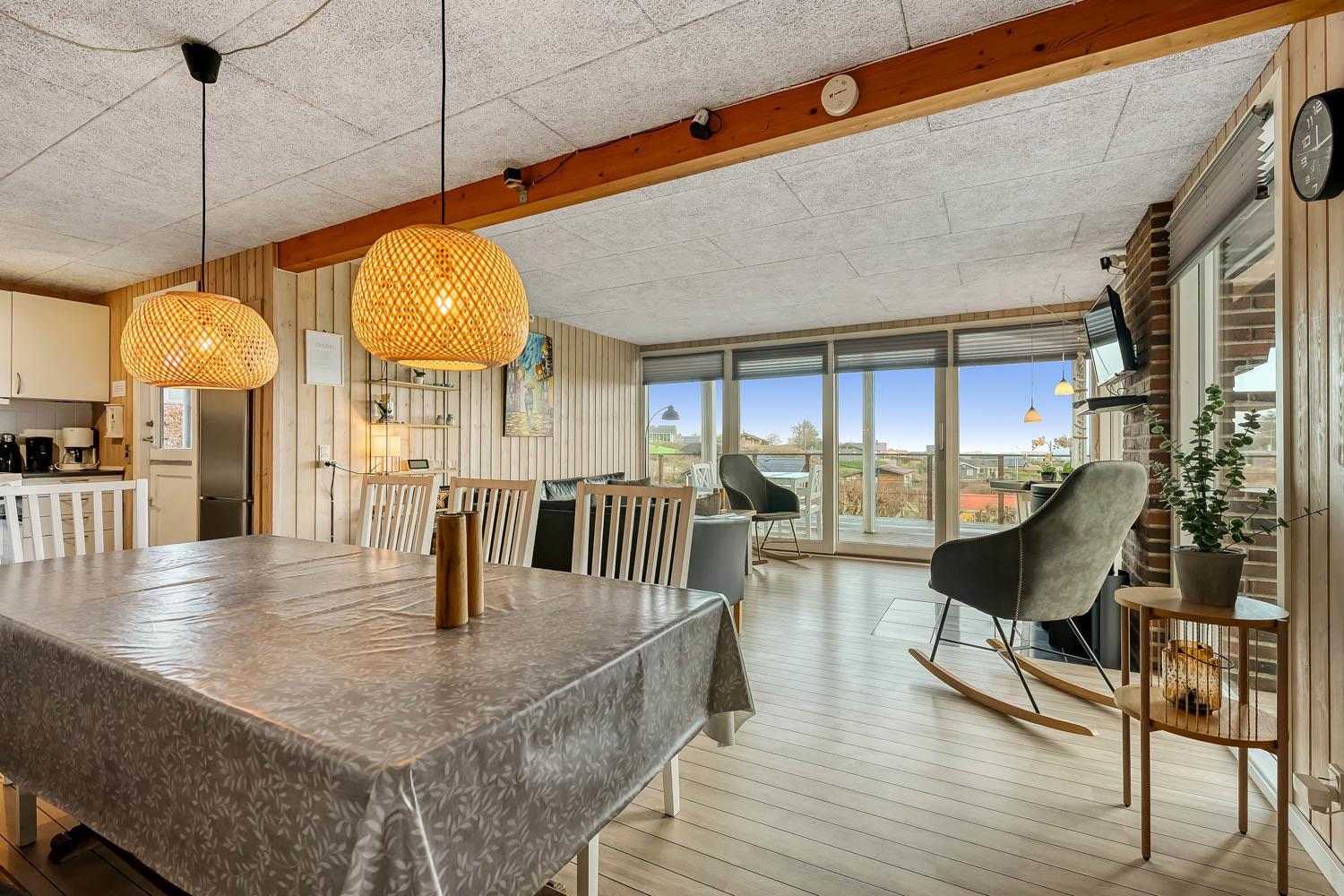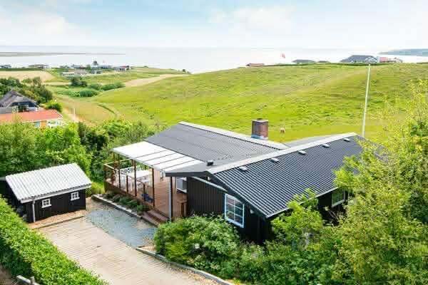Dette velholdte feriehus byder på en enestående panoramaudsigt over Limfjorden – en udsigt, der kan nydes fra både stue og terrasse, og som gør opholdet til noget ganske særligt. Et fantastisk dejligt feriehus, der kan benyttes året rundt – perfekt for den lille familie eller for par, som ønsker fred, natur og en betagende udsigt.