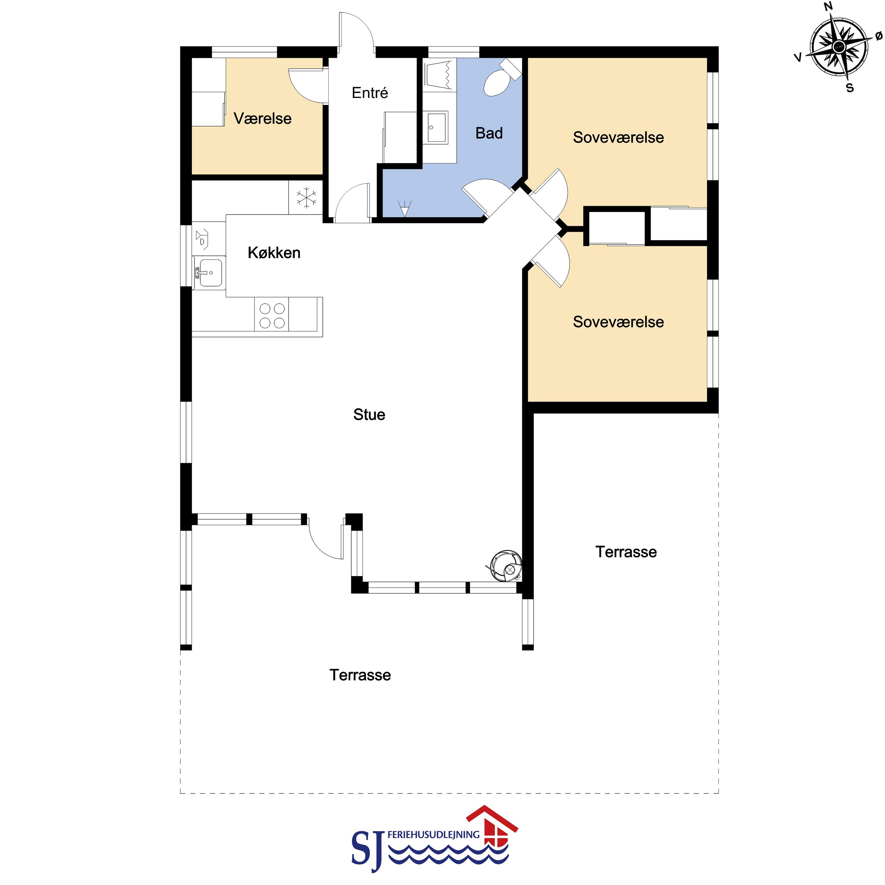 Huset har tre gode soveværelser (1DS, 1DS, 1K).
