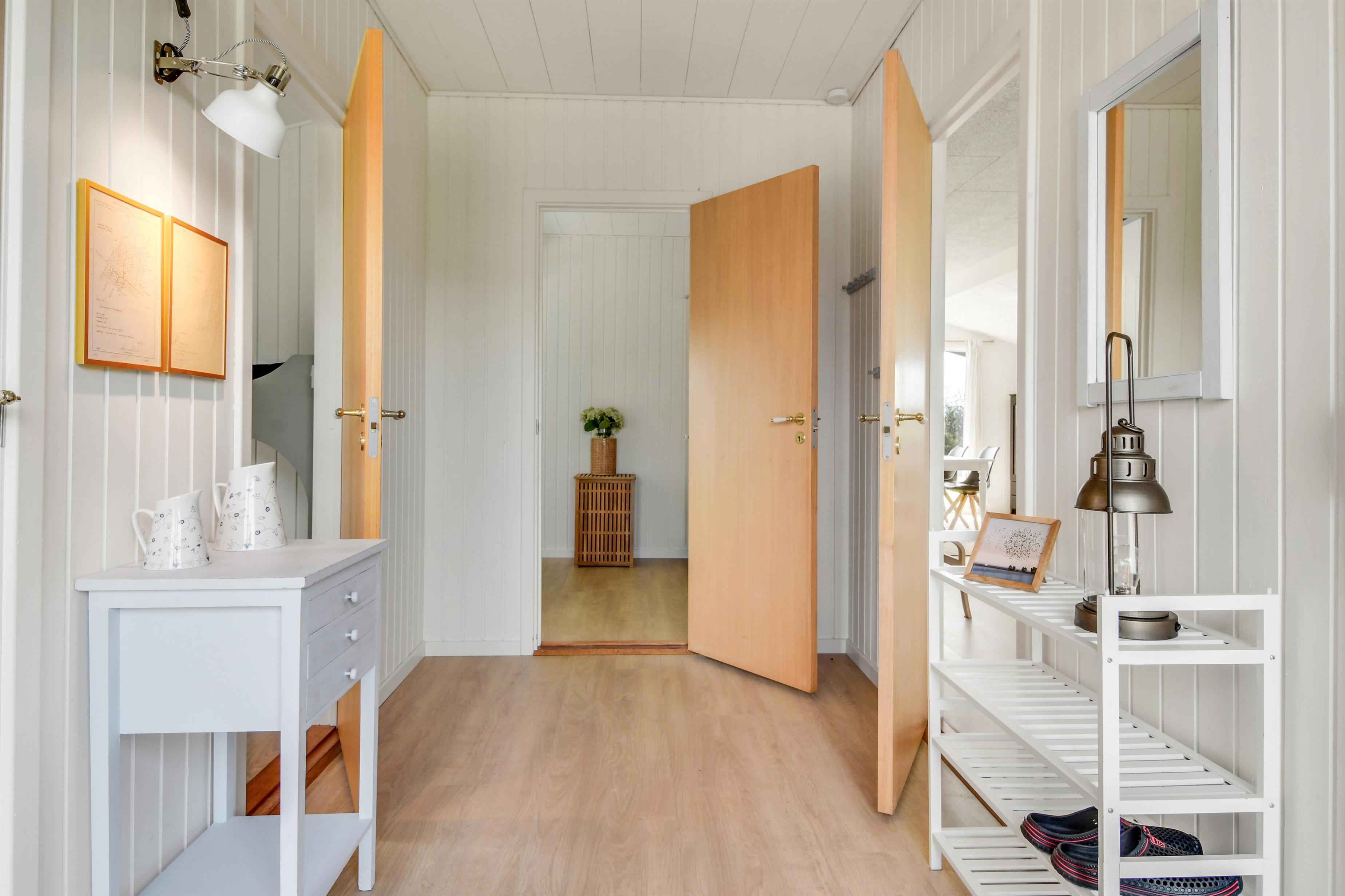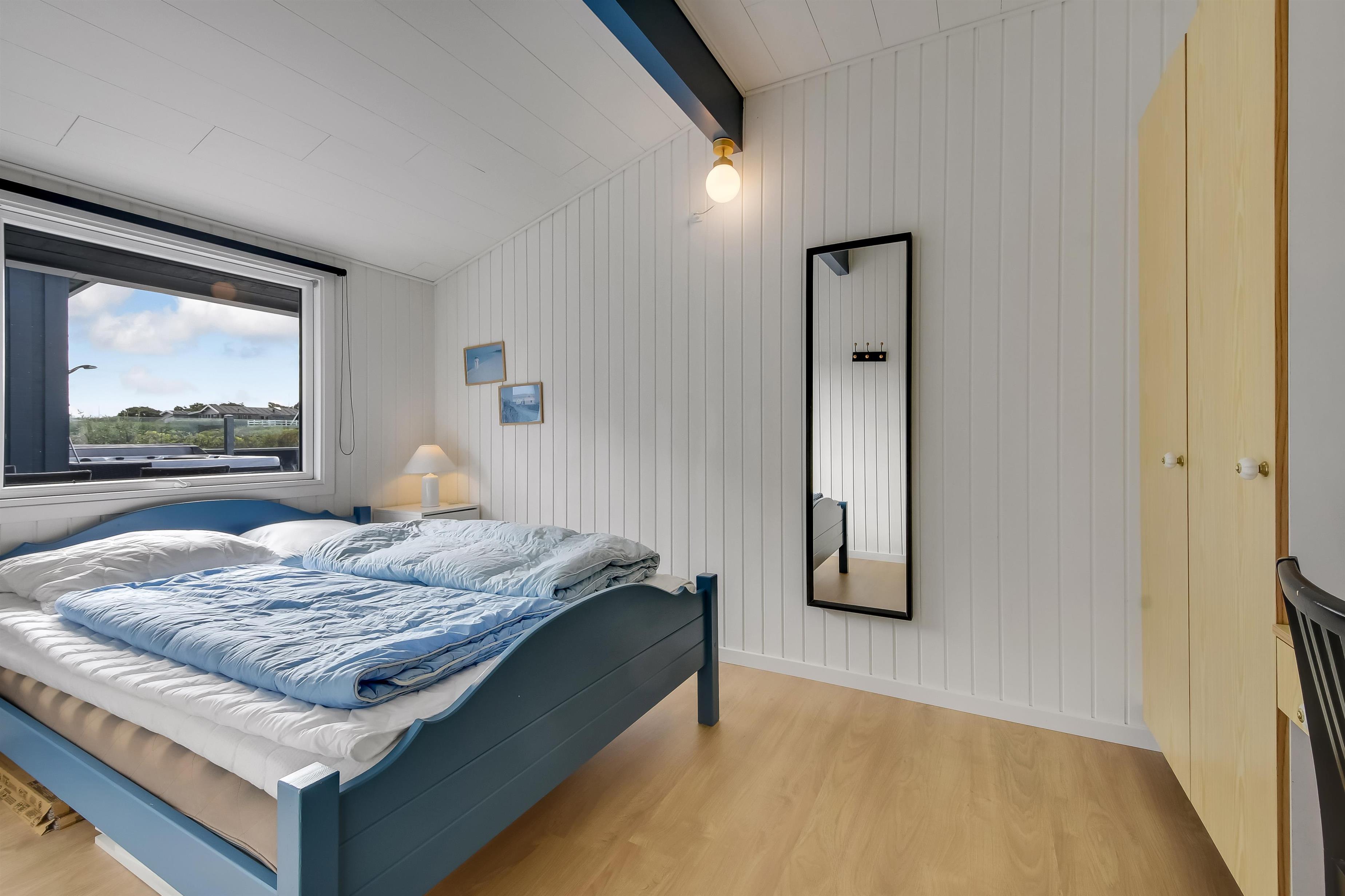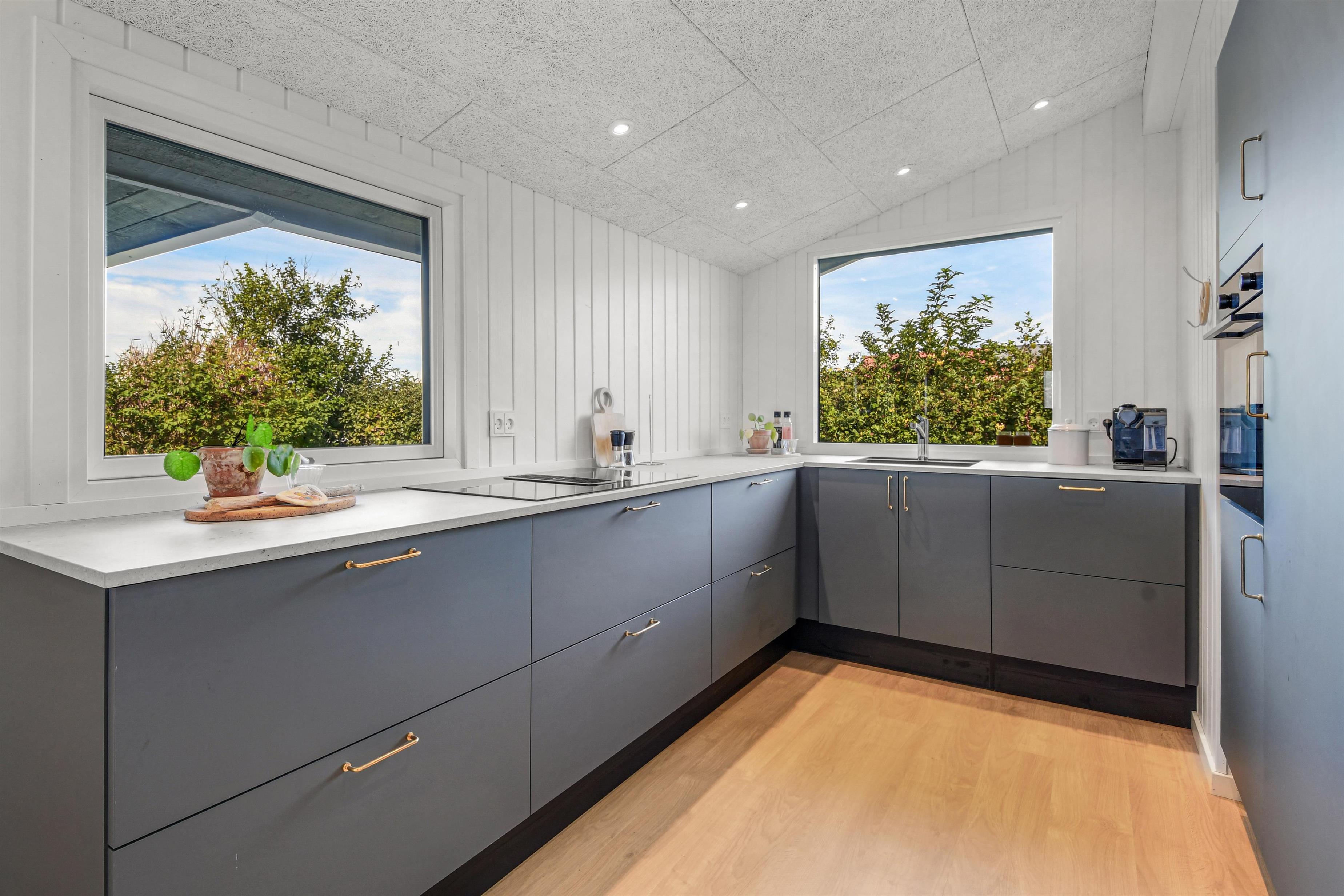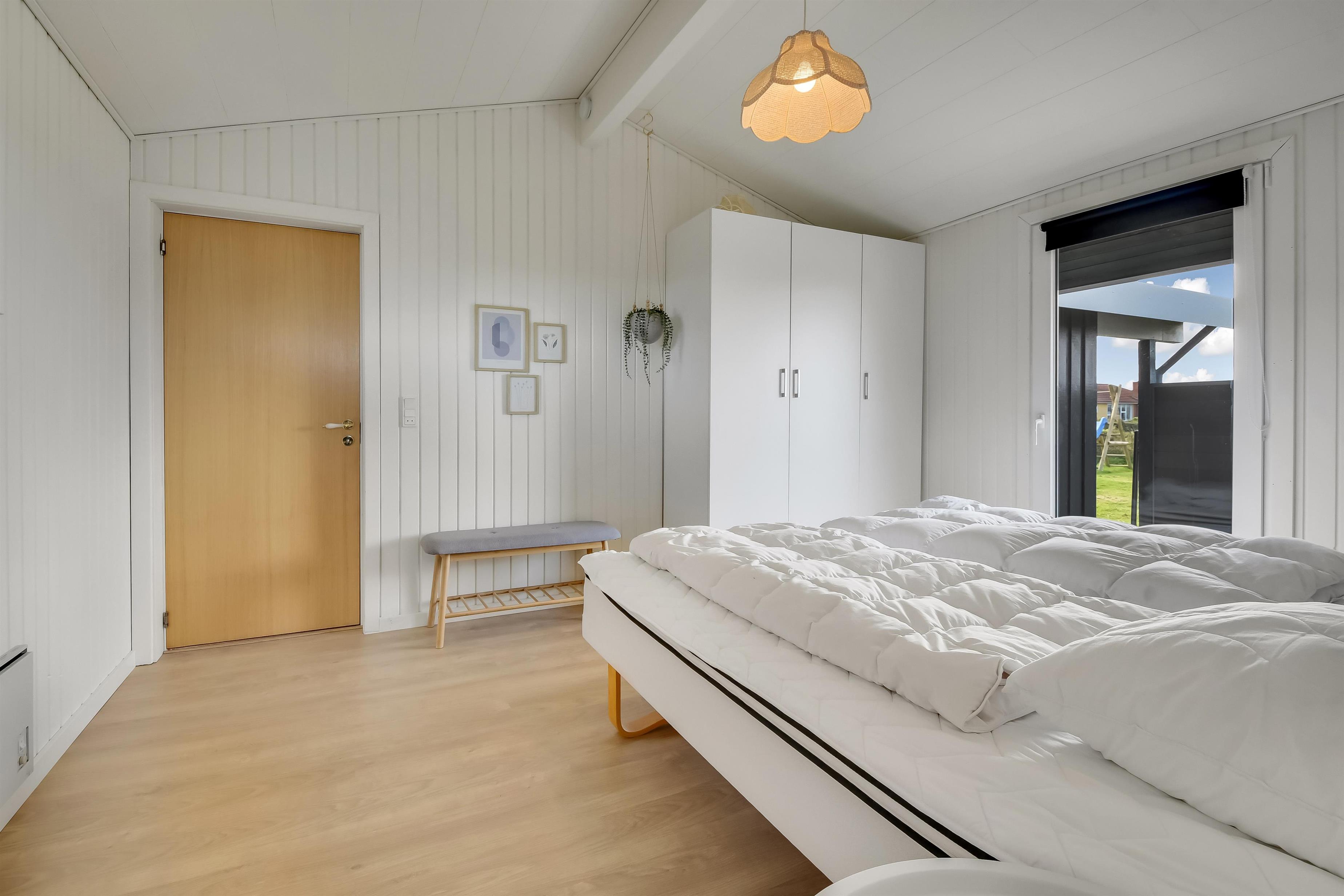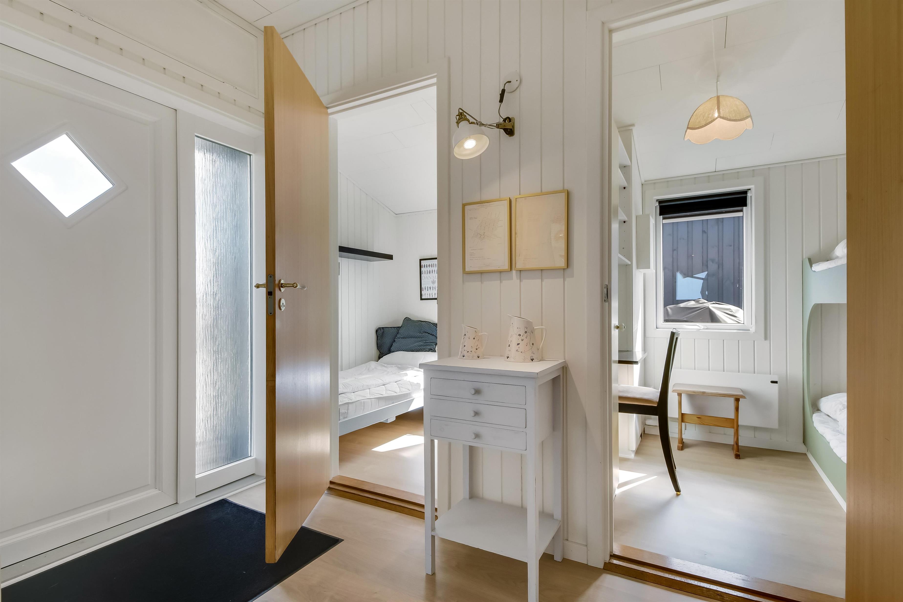 Huset er med sine 97 m² godt indrettet og nyrenoveret i 2023 med 5 værelser og 2 badeværelser: 4 værelser i huset og 1 værelse med toilet i annekset. I træder ind i en stor entré med forbindelse til badeværelse og tre af i alt fem værelser: (1DS, 1KS + 1S). Centralt finder I en dejlig kombineret opholdsstue med TV (danske og tyske kanaler), spisestue og køkken med loft til kip. I forlængelse af stuen er den lyse udestue med adgang til en af de nyanlagte terrasser, som er lukket og har udespa. Det største værelse (1DB) ligger for sig selv og har eget badeværelse samt udgang til den ene af havens terrasser. I annekset (1DB) er der gulvvarme og et toilet samt tørretumbler. Huset er renoveret med kvalitetsmaterialer og fremstår lyst og lækkert. Det moderne køkken har keramisk kogeplade, stort køleskab, mikroovn og opvaskemaskine. Der er gulvvarme i store dele af huset og en varmepumpe, der kan opvarme hele huset, hvilket kan reducere forbrugsomkostningerne. Har man el-bil eller en Plug-In hybrid, så er der opsat ladeboks ved huset. 1 barnestol og 1 barneseng. Rygning er ikke tilladt i huset. Maksimum 3 husdyr er tilladt.