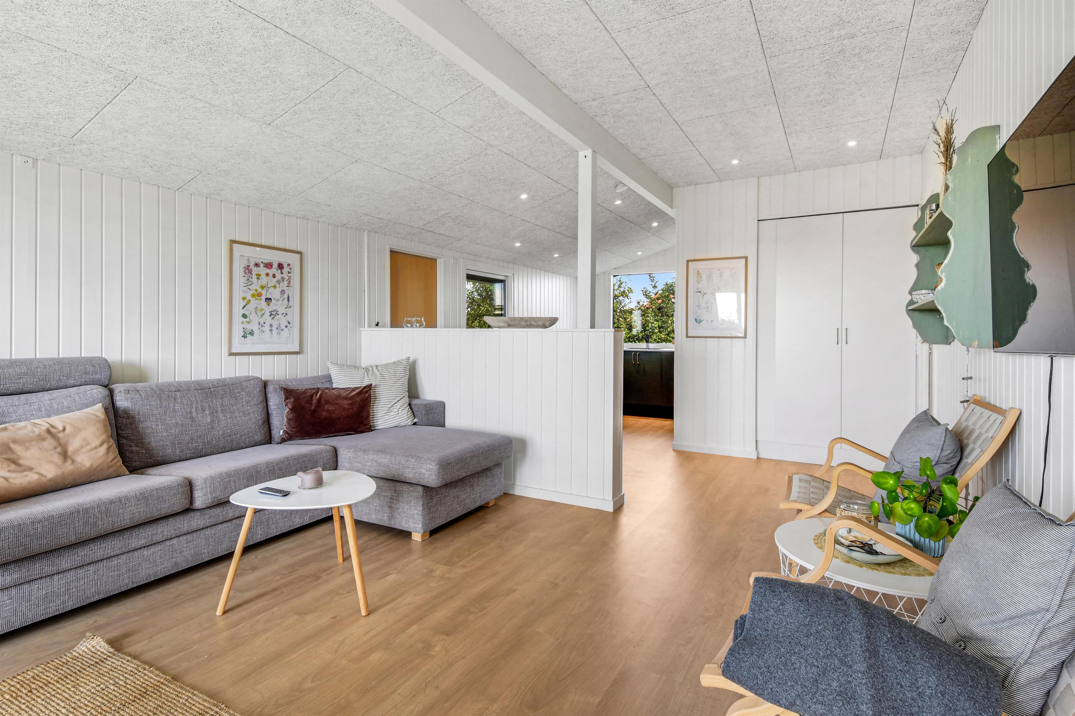Flot og lyst feriehus beliggende for enden af en stikvej med skønne, læ-fyldte terrassemiljøer med både morgen- og aftensol. Fra grunden er der desuden et fint kig til vandet med udsigt til Limfjorden. Huset er ideelt til både to voksne, to familier eller den store familie, som ønsker at bo i et børnevenligt område. Hunde må medbringes. Huset har gratis internet via fiber, er lyst og hyggeligt indrettet og beliggende på en rolig sidevej kun 700 meter fra Limfjorden.
