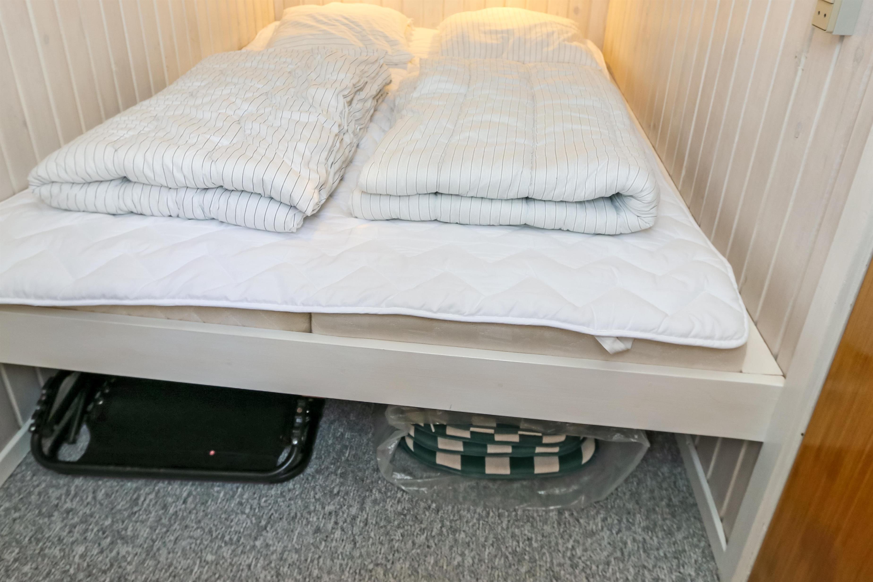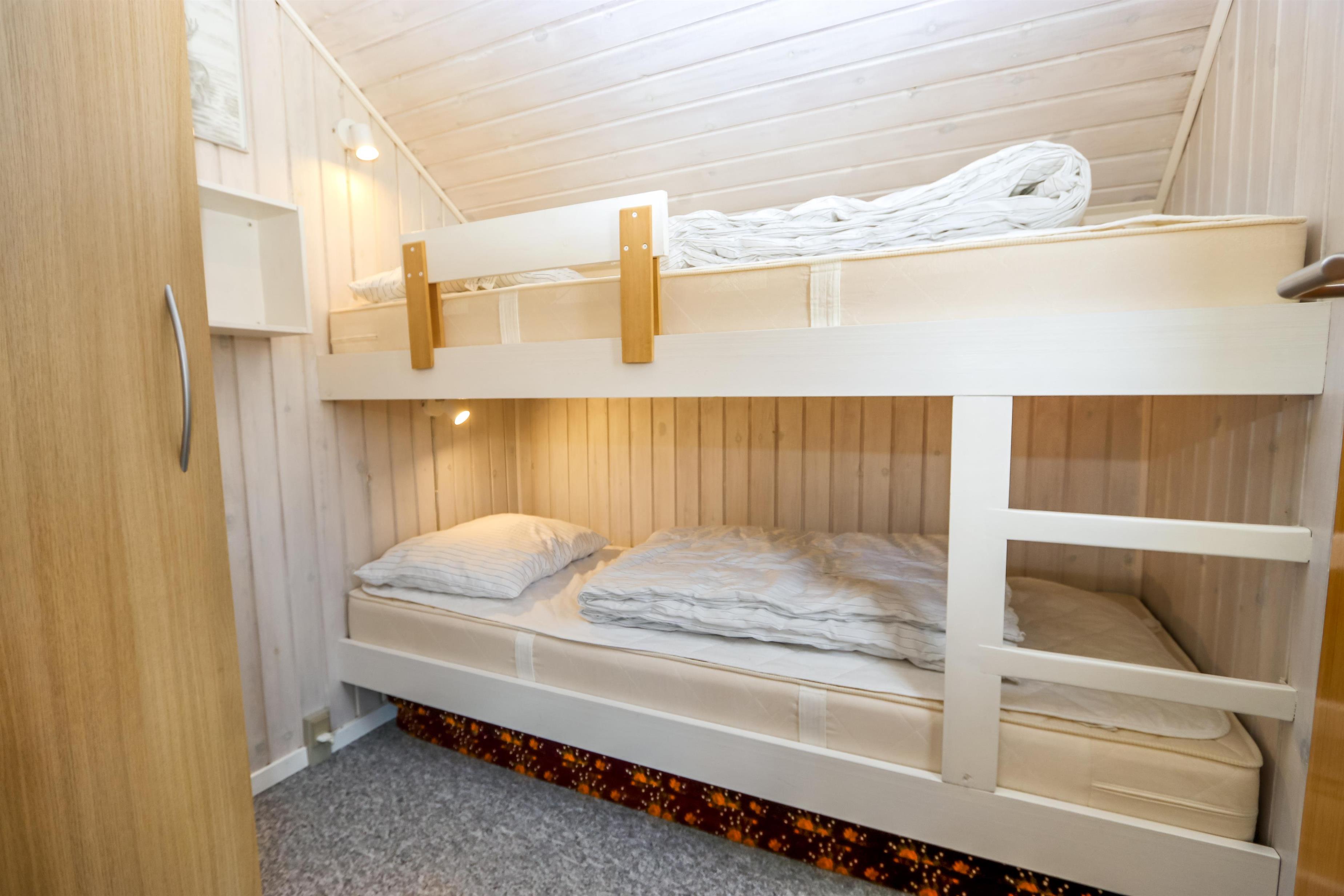 Køkkenet er praktisk indrettet med el-komfur, køleskab, 30 l. fryser og mikroovn. Huset har tre komfortable soveværelser med plads til 1 dobbeltseng, 2 enkeltsenge og 2 køjesenge. Badeværelset er udstyret med toilet, håndvask, bruser, vaskemaskine og gulvvarme, så du kan starte dagen behageligt.