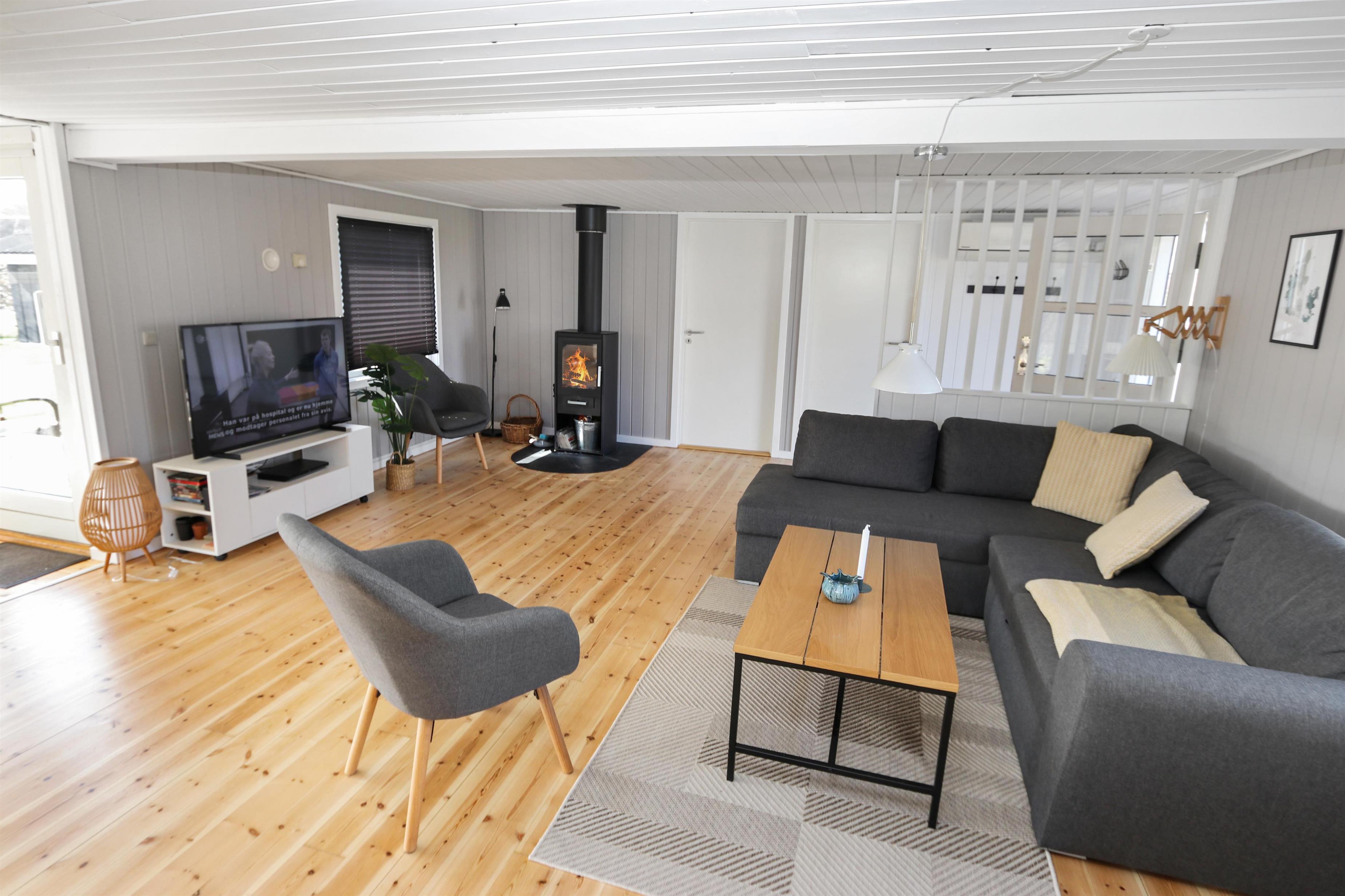 Stuen er indrettet med hyggelig brændeovn, farve-tv med DR-kanaler og TV2 samt et stereoanlæg, så der er mulighed for både afslapning og underholdning. Der er gratis internet, så man kan holde kontakten eller streame sine yndlingsprogrammer. Køkkenet er godt udstyret med el-komfur, køleskab, mikroovn og opvaskemaskine, hvilket gør det nemt at tilberede lækre måltider under ferien.