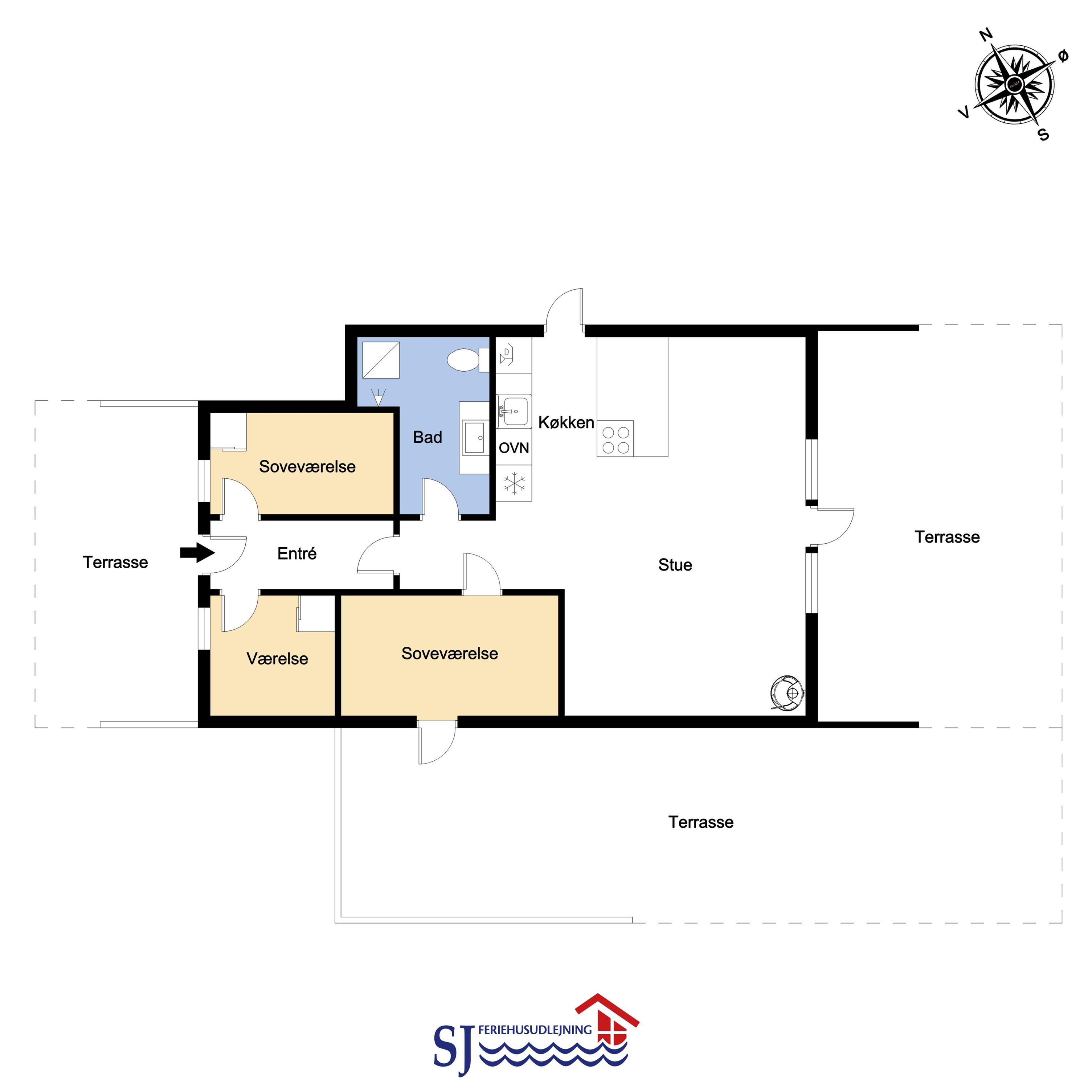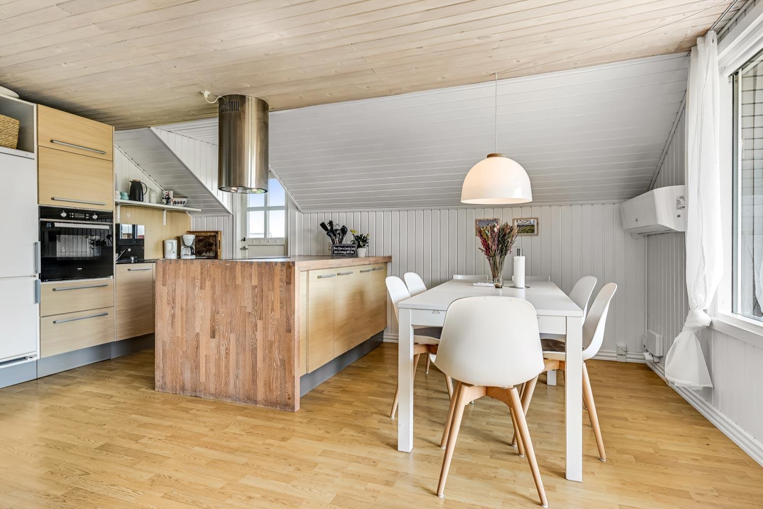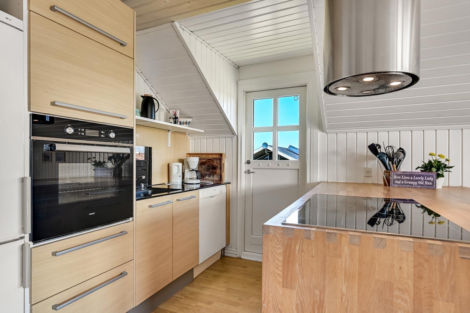 Feriehus på ca. 72 m2. fra 1979 og renoveret i 2018. Entréen byder jer velkommen og leder videre til en opholdsstue med hyggelig møblering, en brændeovn, spisebord samt TV med danske, tyske, norske og svenske kanaler. Derudover er der mulighed for streaming af egne streamingtjenester. Fra spisebordet er der flot kig til Limfjorden. Samtalekøkken med glaskeramiske kogeplader, indbygningsovn, emhætte, opvaskemaskine, mikroovn, og køleskab med fryseboks. Alt dette med praktiske trægulve. Derudover 3 mindre soveværelser med gulvtæpper. (1DS, 1DS, 1KS). Badeværelse med toilet, håndvask, bruser og linoleumsgulve. Vaskemaskine er i skuret. Der er desuden varmepumpe i huset, som gør elopvarmningen billigere.