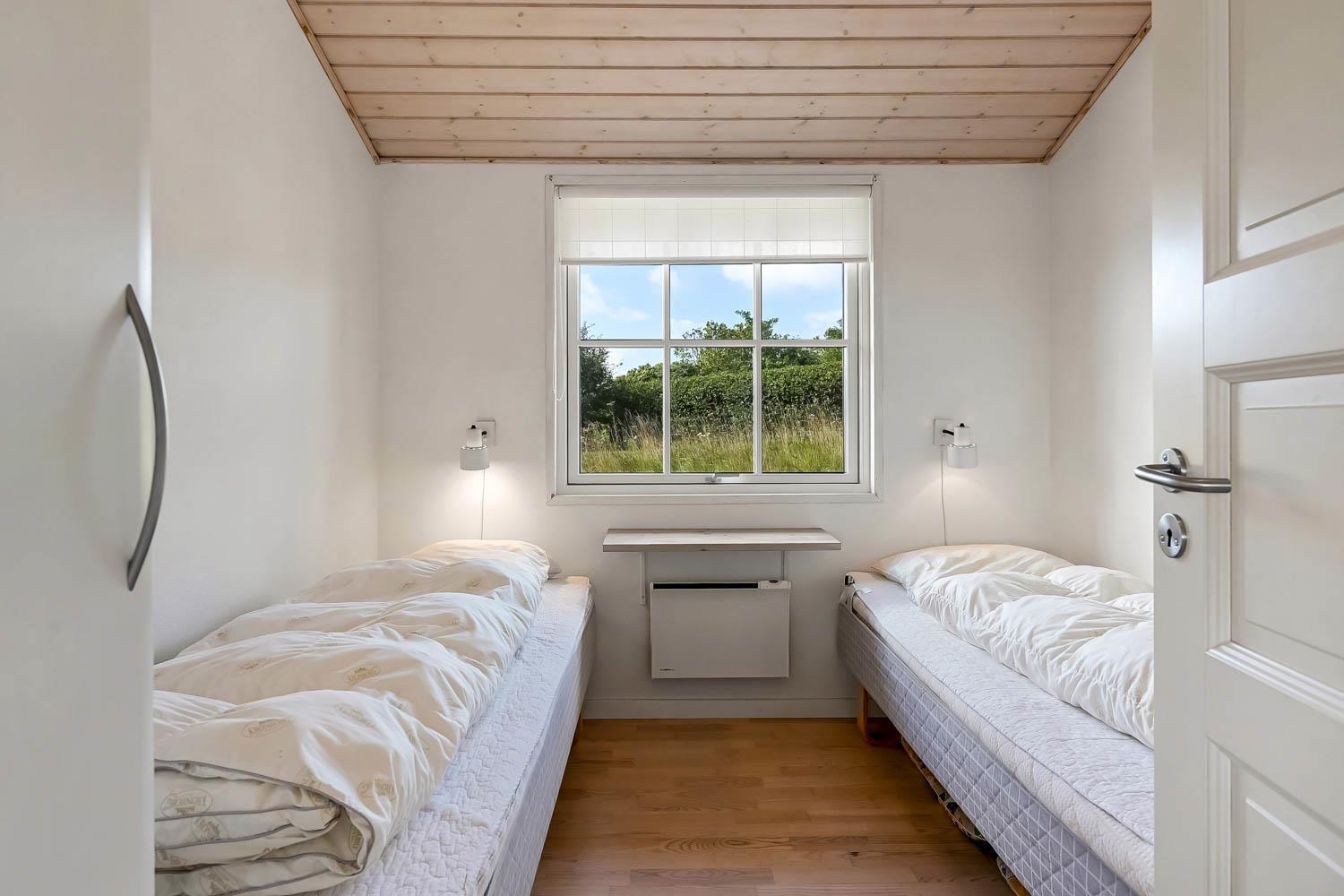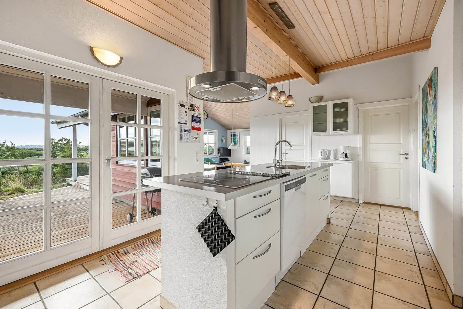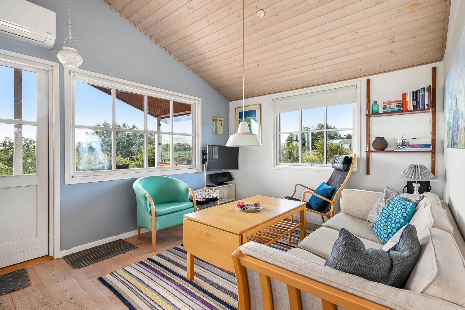 Dette flotte feriehus i træ er indrettet med store vinduespartier, og er lyst og venligt samt moderne indrettet, fra både køkken og stuen er der en skøn udsigt over Limfjorden og lystbådehavnen. I køkkenet er der klinkegulv og stuen er med trægulv. Badeværelset er indrettet med toilet, håndvask, bruser, spabad samt klinkegulv med gulvvarme. Huset er indrettet med 3 soverum: 1DS + 1DS + 2S. Køkkenafdelingen er indrettet med glaskeramisk komfur, køleskab med 90 l. separat fryser, opvaskemaskine og mikroovn. Stuen er indrettet med polstermøbler og TV med danske og tyske programmer, spisebord og stole som er placeret tæt på køkkenet, brændeovn som giver en behagelig varme uanset årstid, og sammen med varmepumpen er de begge medvirkende til at spare på forbrugsafregningen. Der er vaskemaskine og tørretumbler. Til de mindste gæster er der en barneseng. Gratis Internetadgang. 1 husdyr er tilladt. Ikke rygerhus.