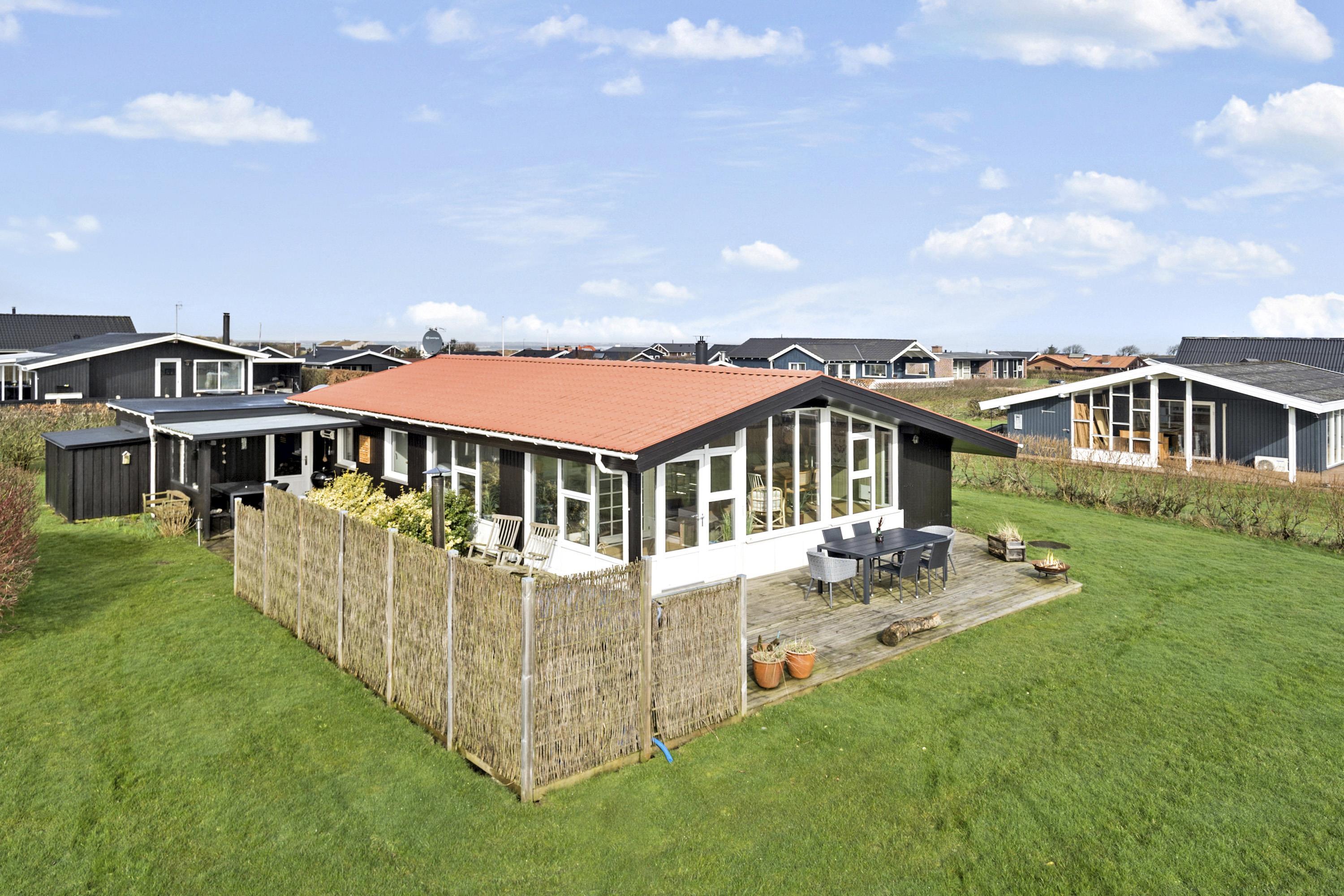 Træferiehus på ca. 3 soveværelser (1DS, 1DB, 1K) med trægulve. Opholdsstuen er lyst og hyggeligt indrettet med pæne trægulve, funktionelle polstermøbler, Radio / CD, Smart-TV med danske og tyske programmer samt mulighed for streaming af TV / radio / Apps på tv og energibesparende varmepumpe. Hyggeligt køkkenhjørne med keramiske kogeplader, indbygningsovn, emhætte, opvaskemaskine, køleskab fryseboks og service / køkkengrej. Fra den kombineret stue og køkkenhjørne kan den flotte udsigt nydes over landskabet og Limfjorden ligesom der er udgang til en helt fantastisk, højt beliggende spisestue / udestue ligeledes med pragtfuld udsigt. Pænt badeværelse med toilet, bruser, håndvask og klinkegulv med gulvvarme. Rygning er ikke tilladt i huset. Max 1 husdyr tilladt.
