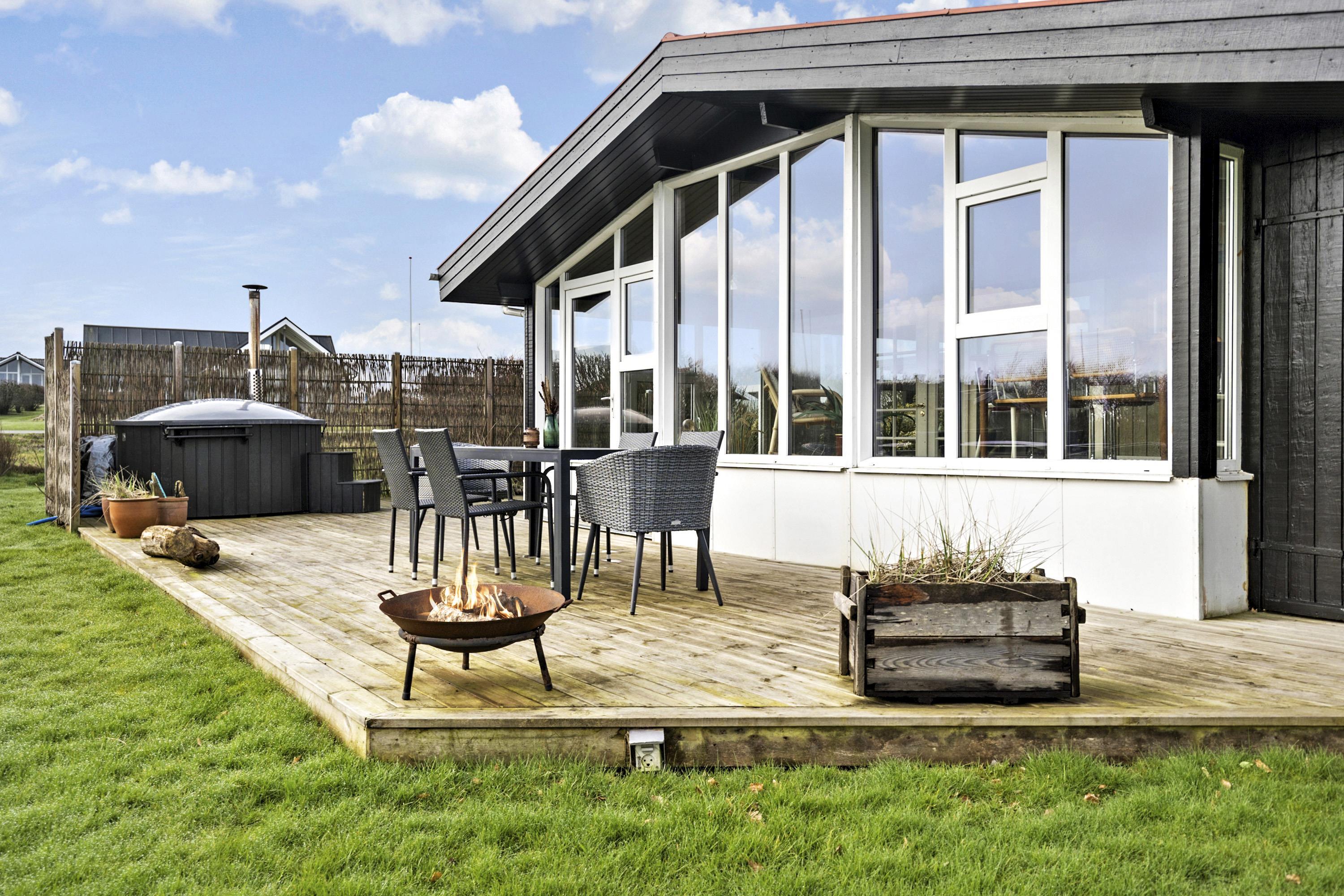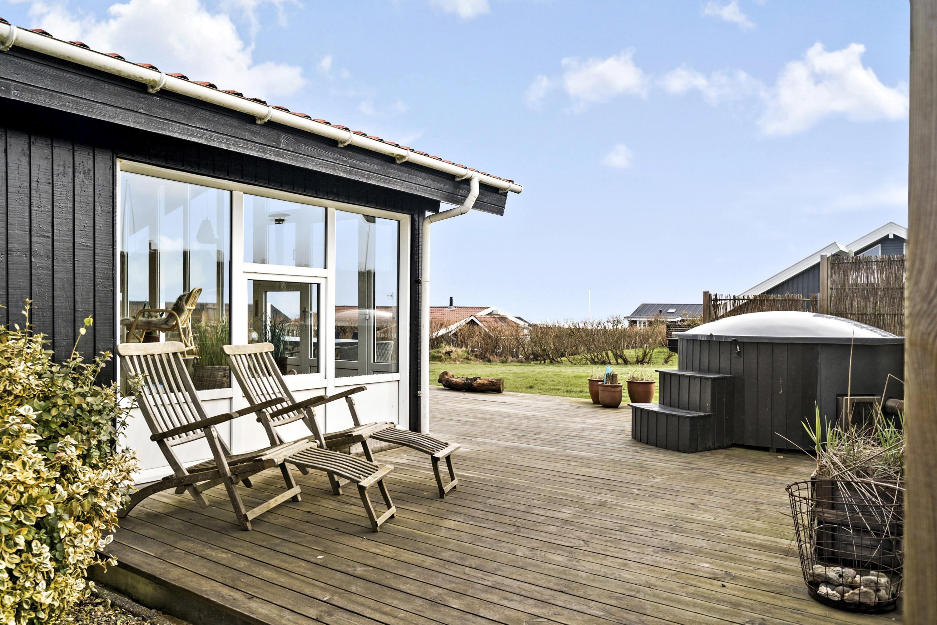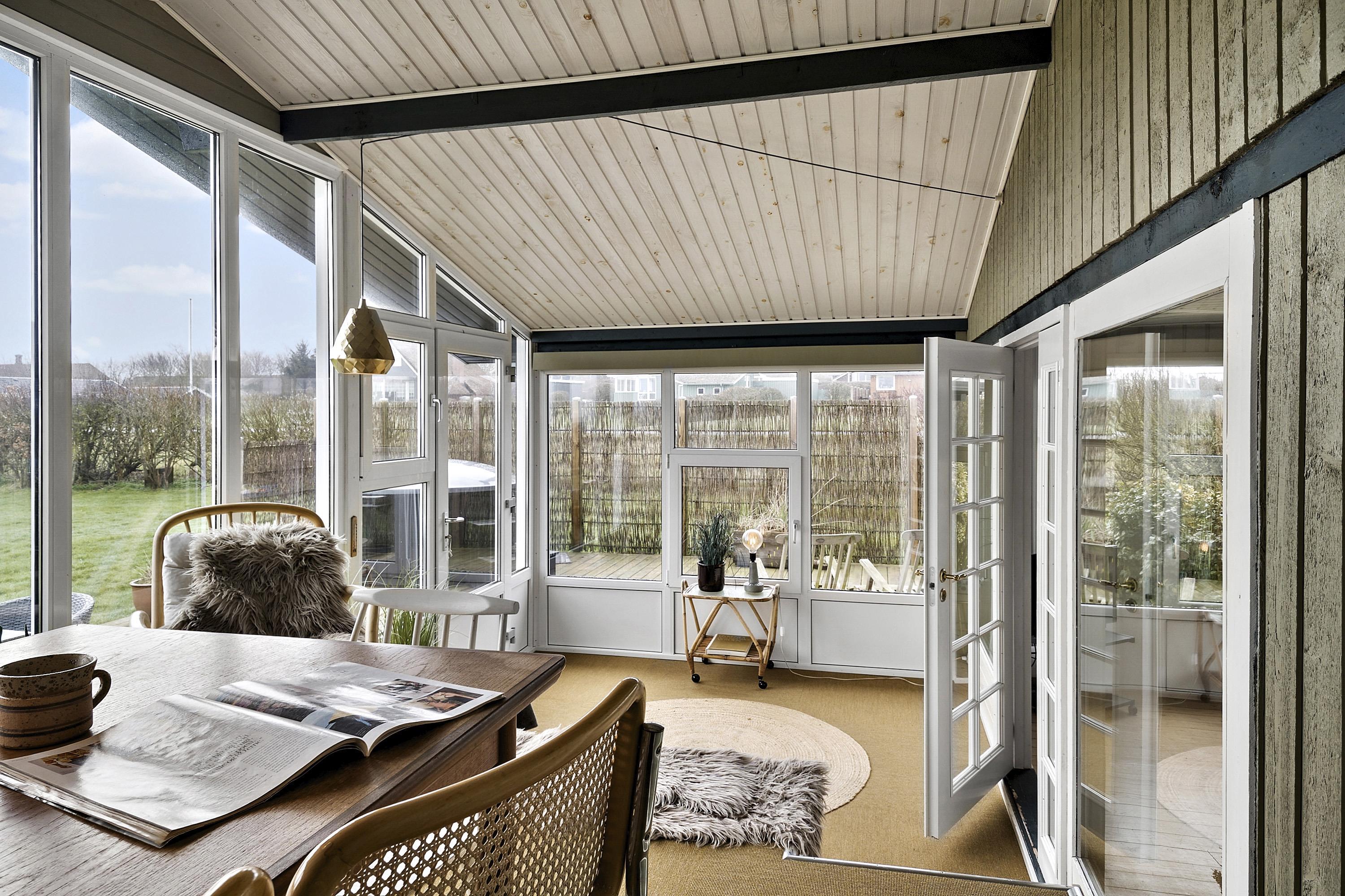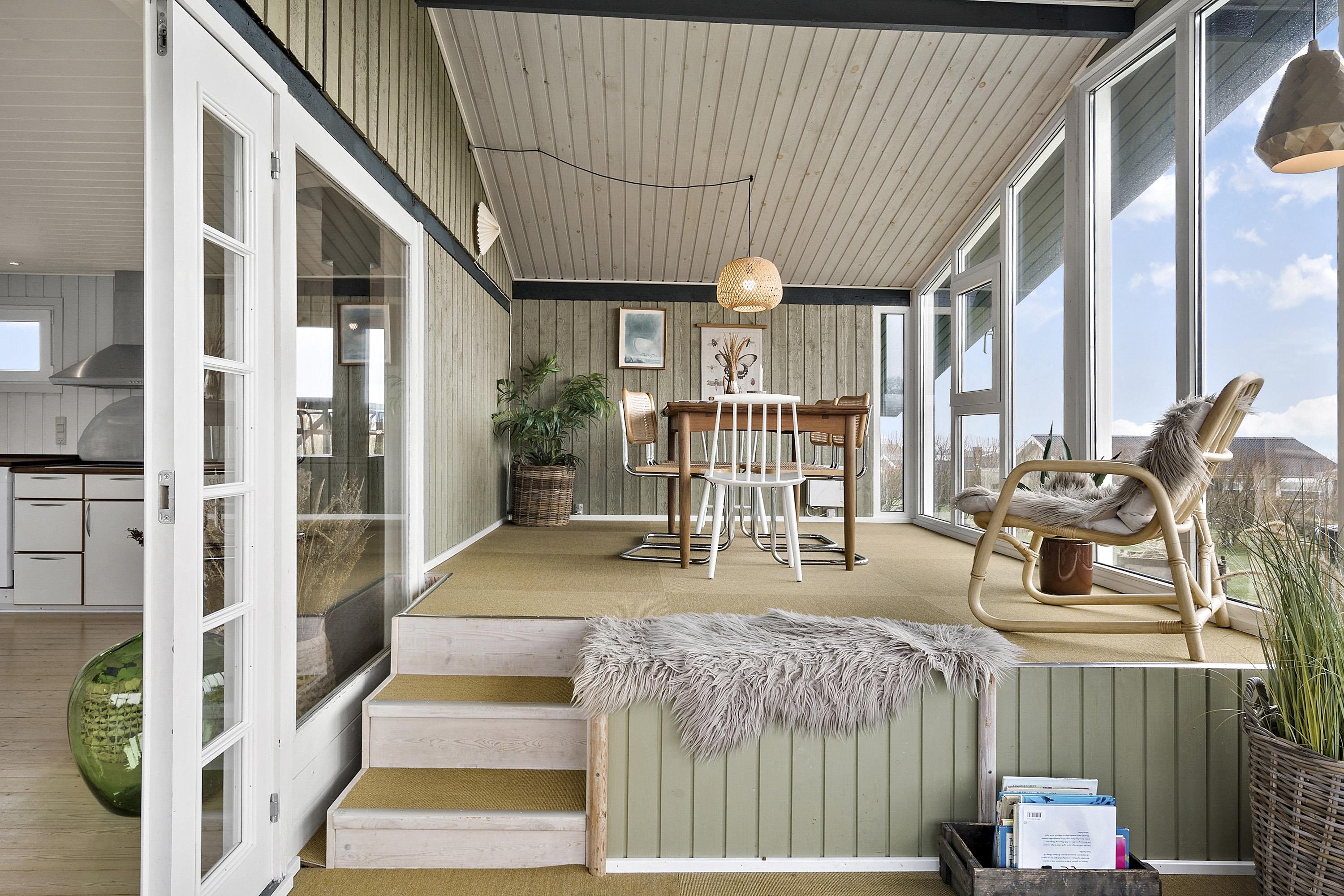 Efter at have parkeret bilen i carporten direkte ved huset tager en dejlig entre´ imod. En fantastisk udestue gør huset til noget helt specielt. Rundt om huset er der lavet gode terrasser, hvor du er stort set ugeneret på grund af beliggenheden for enden af stikvejen. Fra både terrasser og udestue er der en fantastisk udsigt og udestuen er fantastisk både på dage med høj sol og på dage, hvor det måske ikke er udevejr. Ved terrassen er der et lækkert vildmarksbad som opvarmes med træ - en unik oplevelse i alt slags vejr. På den velholdte grund og på terrasserne og det er altid muligt at finde læ eller en plads i solen. Fra udestuen er der udgang til en overdækket terrasse. Masser af havemøbler. Solstole og havemøbler kan flyttes rundt på terrasserne efter behag. Højt, ugeneret beliggende for enden af en blid stikvej på en velholdt grund på ca. 900 m2.