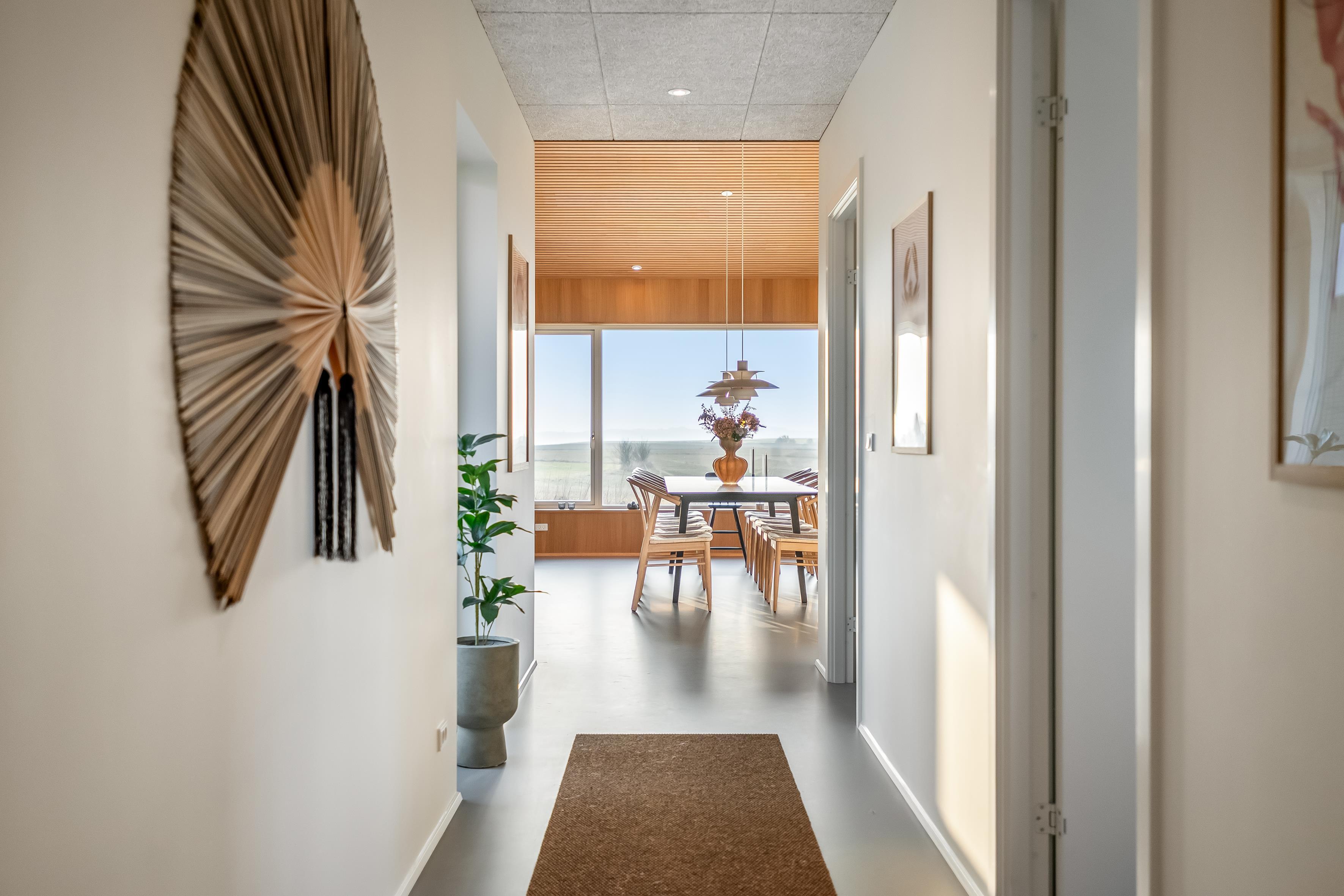 Boligen er opført i eksklusive materialer og designet med fokus på lys, rummelighed og udsyn. De store vinduespartier lukker naturen ind og skaber en rolig og harmonisk atmosfære, hvor fjorden altid er en del af oplevelsen.