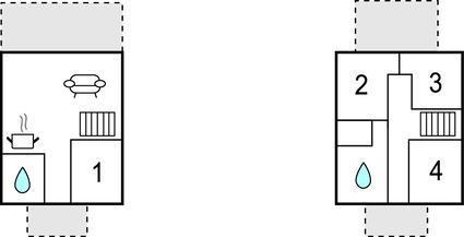 Badeværelse (nr. 1) - WC. Varmt og koldt vand. Bruser