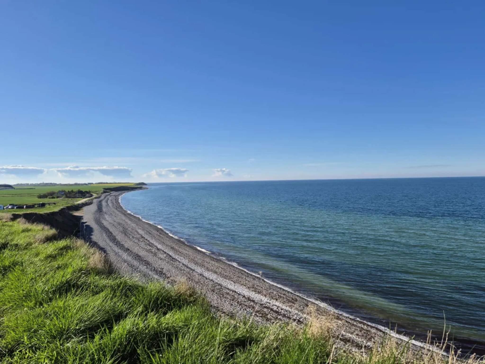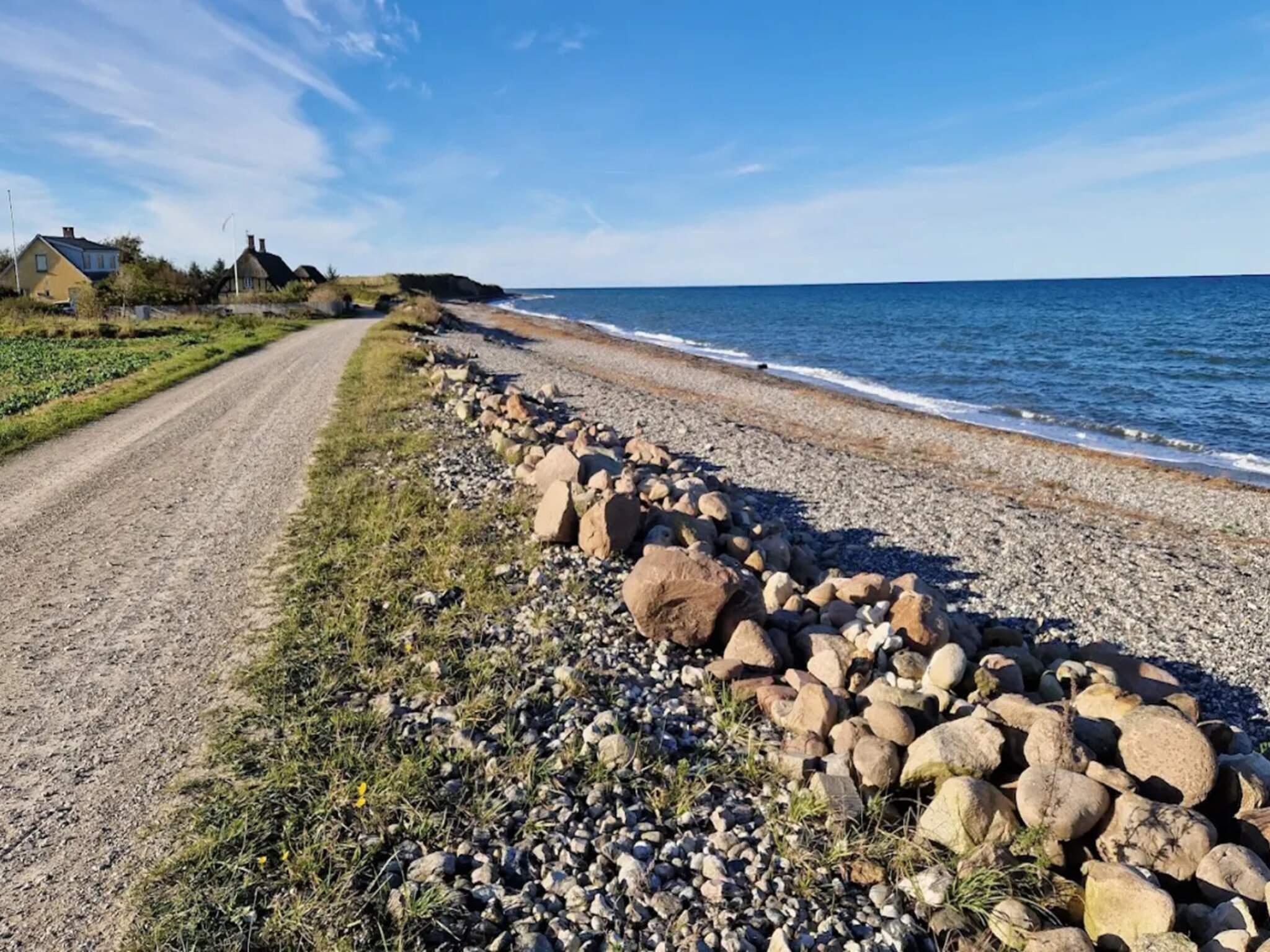 Ældre norsk bjælkehus i hyggelig stil beliggende i 1. række med en storslået udsigt til Kattegat ved Gjerrild. Fra køkken/stue er der direkte kig til Kattegat. Der er et lille hus på grunden, hvor der forefindes sauna og vaskemaskine. Mellem husene er der en delvist overdækket terrasse og et mindre areal forsynet med glaspartier på 3 vægge. Det vil altid være muligt at finde en plads i solen og overdækningen gør, at I kan nyde den danske sommeraften, selv om duggen falder. Der er sandkasse. Sommerhuset er absolut et godt udgangspunkt for de mange attraktioner, der findes på Djursland.