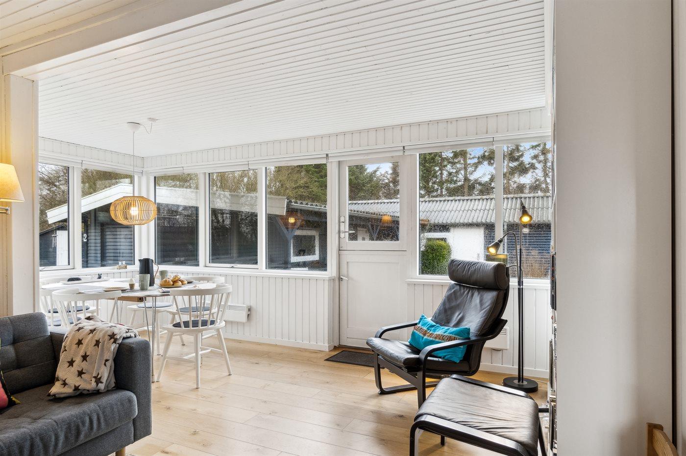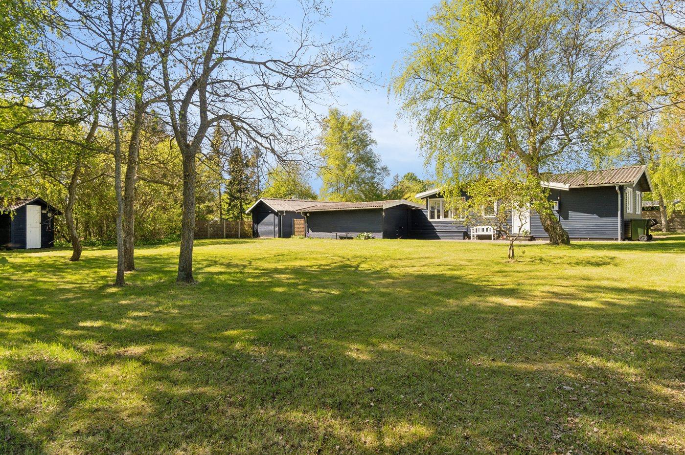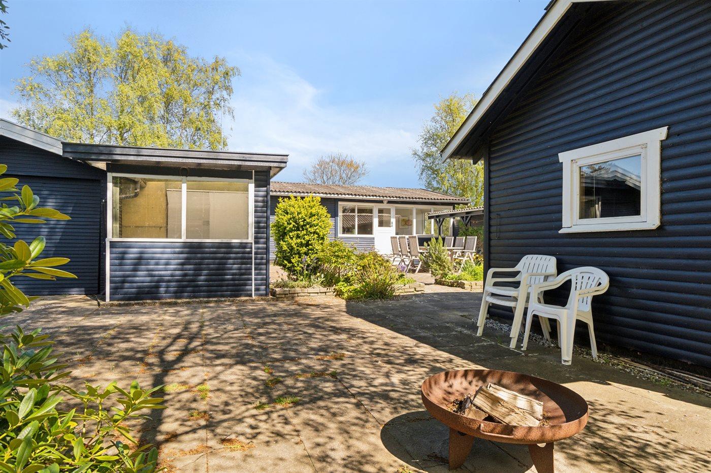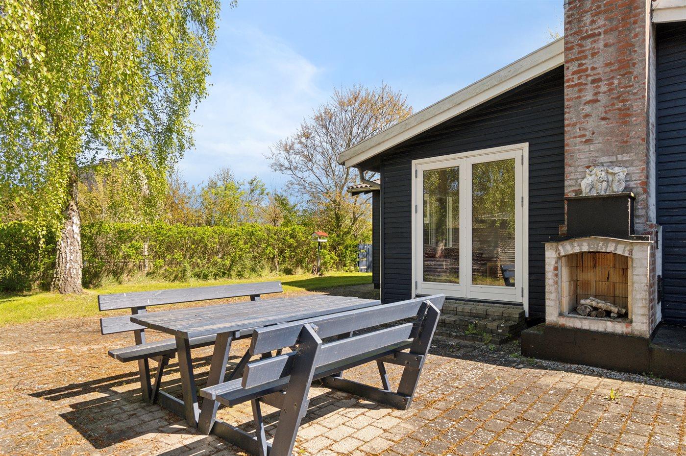Sommerhuset ligger helt ugeneret på den dejlige grund og har nogle gode terrassearealer, som også delvist er overdækkede. Herfra kan man i særdeleshed nyde de skønne omgivelser med en kop kaffe eller et glas vin, og det er altid muligt at finde en lækrog at nyde solen i.