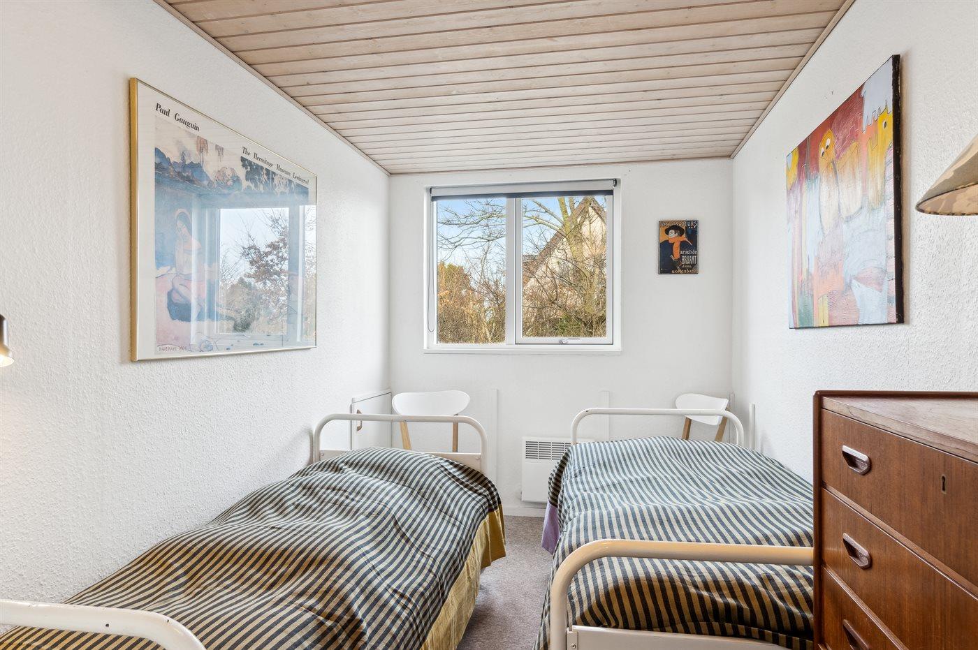 Der er i alt 2 soveværelser. Sovepladserne fordeler sig på: 2 sovepladser i dobbeltseng. 2 sovepladser i enkeltsenge.