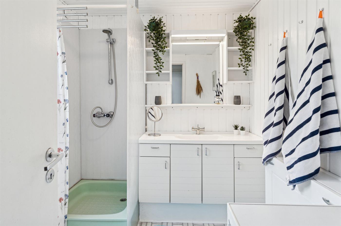 Der er 1 badeværelse med bruseniche og 1 toilet.