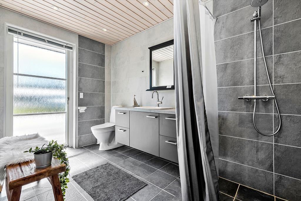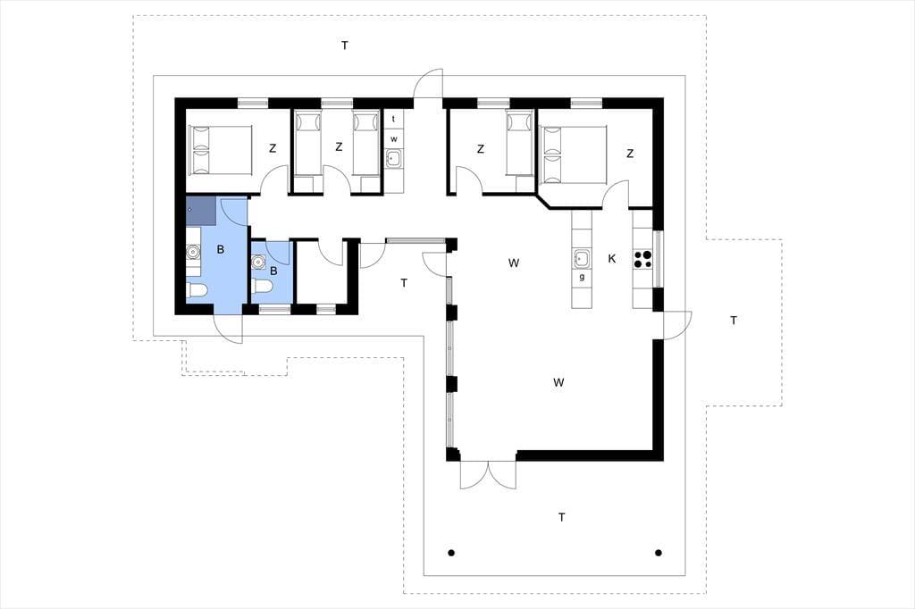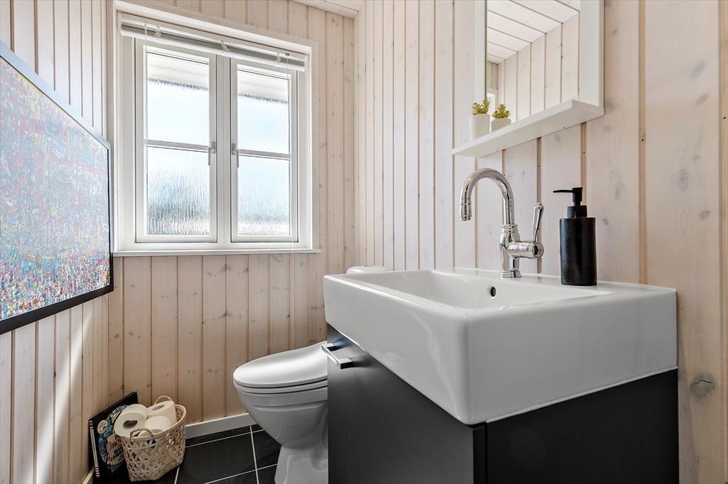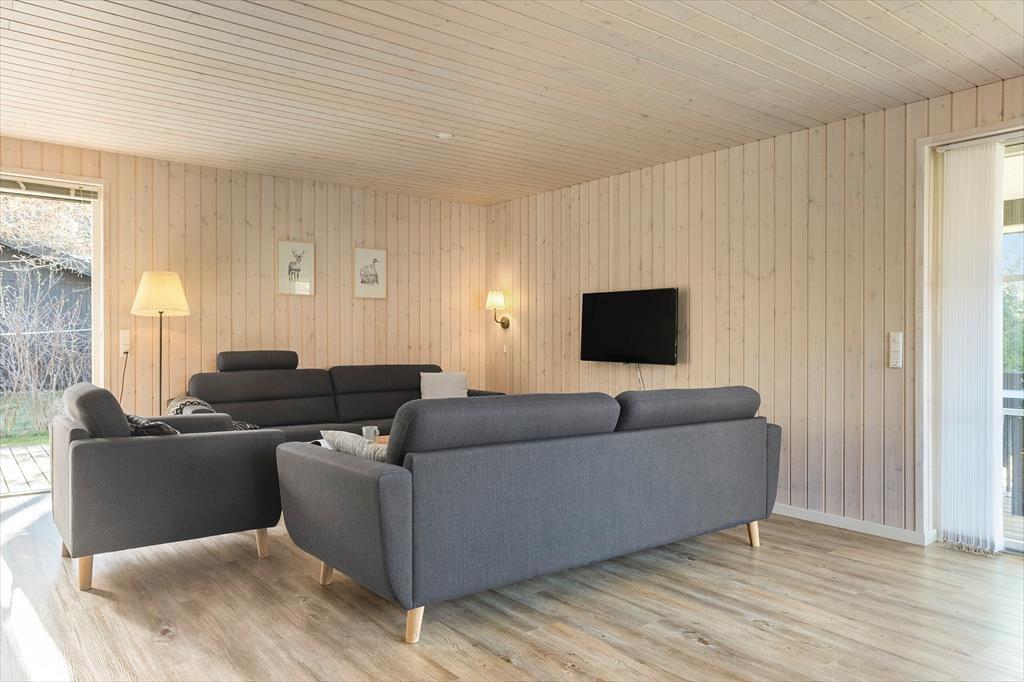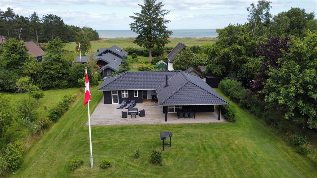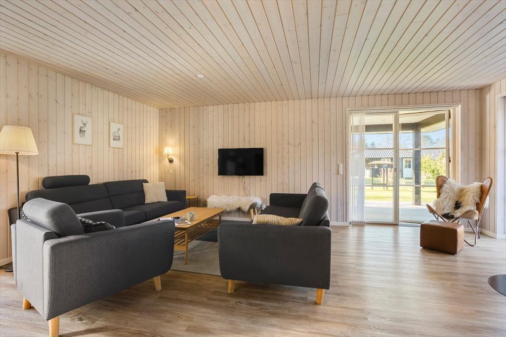 Udenfor finder du en dejlig, plan have, som næsten er lukket og giver dig ro til at slappe af og nyde ferien. Her er plads til både leg og afslapning, og måske får du endda besøg af et rådyr, der står og nyder morgensolen på græsplænen. Terrassen løber hele vejen rundt om huset og byder på mange solkroge, hvor du kan finde et hyggeligt hjørne at slappe af i. Liggestolene står klar til at tage imod dig, når du vil lade lidt op, og med grillen lige ved hånden er det let at tilberede et dejligt feriemåltid.
