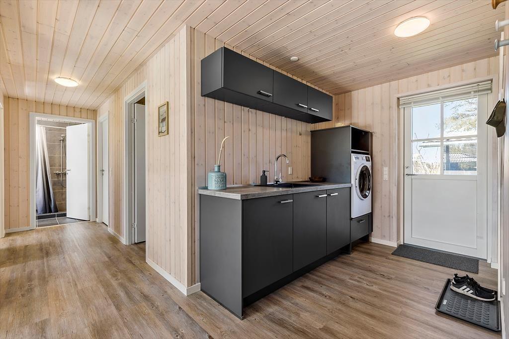 Tæt på den dejlige Gjerrild Nordstrand ligger dette lækre sommerhus, som kombinerer rummelighed med en varm, hjemlig atmosfære. Huset har en gennemtænkt planløsning, der skaber de bedste rammer for samvær og nærvær. Køkkenet er godt udstyret og åbner til både spisepladsen og stuen, hvor der er plads til at slappe af og være sammen efter en dag fyldt med dejlige aktiviteter. Fra stuen, hvor du kan slappe af til en god bog og brændeovnens knitren, er der flere udgange til terrassen. Så du nemt kan få frisk luft ind og nyde skønsang fra fuglene i trætoppene. Huset har fire soveværelser – to med dobbeltsenge, et med fire køjesenge og et med sovesofa. Derudover er der et badeværelse, et gæstetoilet og et praktisk bryggers med vaskemaskine, så du hurtigt kan få vasket ferietøjet, hvis det er nødvendigt.