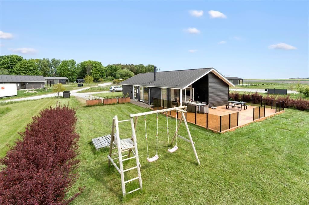 Denne ferieoase er skabt til at imødekomme både børnenes legelyst og de voksnes behov for afslapning. Den store, flade grund indbyder til alverdens udendørs aktiviteter – her kan børnene løbe frit, spille bold og udforske omgivelserne. Med en sandkasse og en gynge er der garanti for timevis af sjov for de små. For de voksne er terrassen et sandt paradis - den omgiver hele huset og her er mulighed for at nyde solen fra morgen til aften. En del af den er overdækket, så du kan tænde grillen og nyde middagen udendørs, selvom vejret driller lidt eller duggen falder. Perfekt til lange, hyggelige sommeraftener, hvor børnene leger i haven, mens de voksne lader skuldrene falde og sludrer om dagens dejlige oplevelser. I morgen går turen måske til stranden, hvor hele familien kan nyde en skøn dag med sand mellem tæerne og bølgeskvulp på stranden.