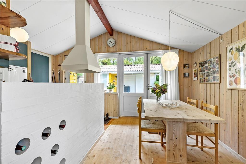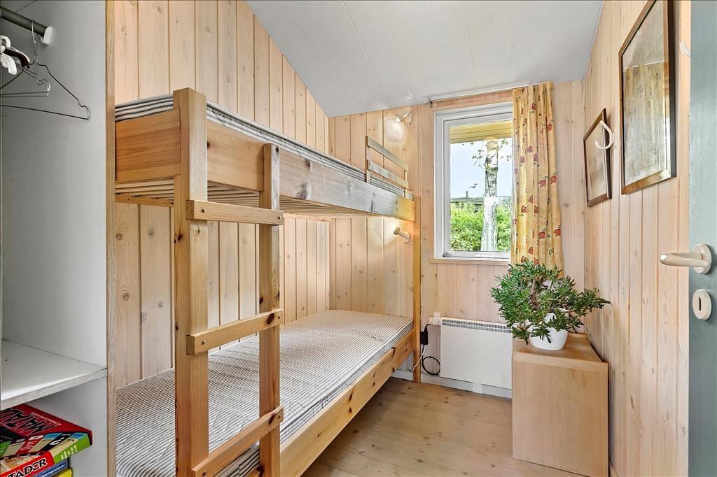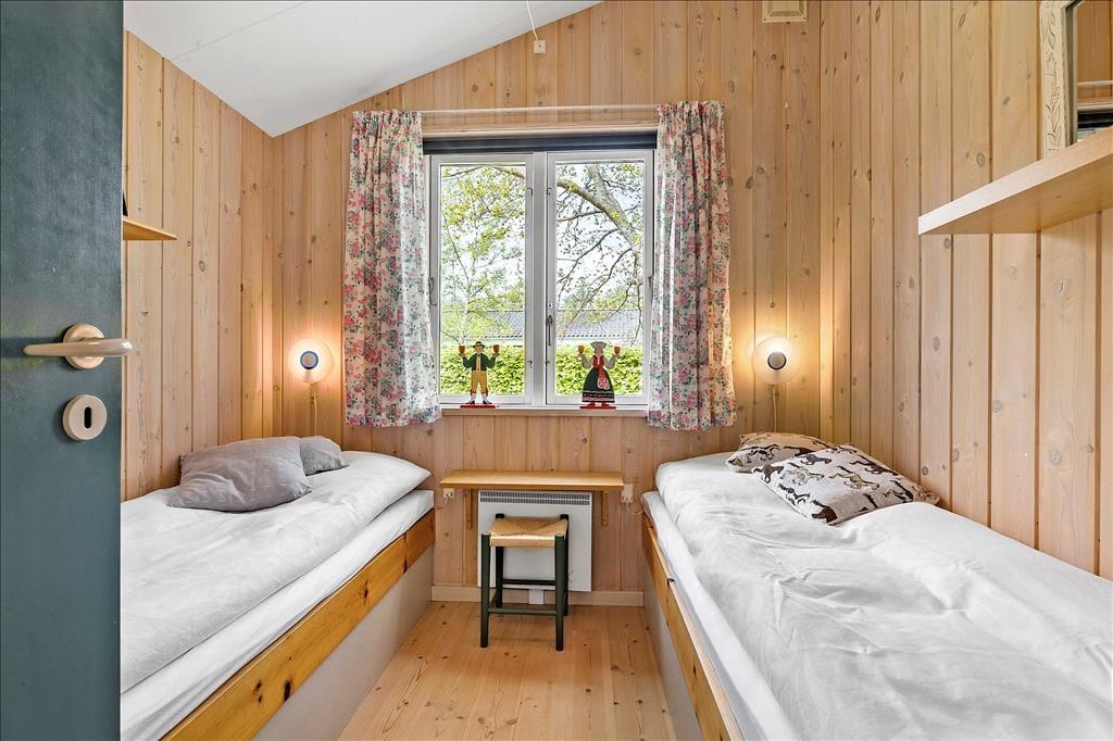 Forestil dig en ferie i et charmerende og velholdt sommerhus, der ligger blot 300 meter fra børnevenlig badestrand og tæt på smuk løvskov. Huset indbyder til ro og kvalitetstid med familien og er med sine 64 m² rigtig godt udnyttet, hvilket giver et perfekt overblik i huset og ud i haven. I den lyse og hyggeligt møblerede stue er der fint plads til alle, hvad enten I er til fællesspil, tv, grin og snak eller til en god bog. Fra stuen åbner døren direkte ud til en rummelig terrasse, der er perfekt til såvel morgenkaffen, solbadning eller lange sommeraftener. Det åbne køkken er fuldt udstyret og gør madlavningen til en del af feriehyggen, mens det tilstødende bryggers med både vaskemaskine og tørretumbler sikrer praktikken i ferien. Badeværelset er lyst og indbydende med gulvvarme og en rummelig bruseniche, så selv en hurtig og måske kold dusch efter strandturen bliver en fornøjelse. De tre soveværelser sørger for en god nats søvn til hele familien - Her er nemlig ét med dobbeltseng, ét med to enkeltsenge og ét soveværelse med køjeseng – og de mindste feriegæster bliver ikke glemt, for her er også en barneseng.