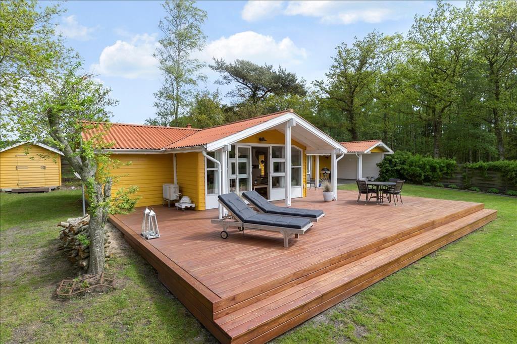 Blot 300 meter fra dejlig og meget børnevenlige badestrand folder et sandt udendørs paradis sig ud. Her kan I mærke glæden ved sommerhuslivet – haven er velplejet og indbyder til boldspil og leg, som vi ved giver de bedste barndomsminder. Den rummelige træterrasse er som skabt til solbadning og grillhygge, når der er sommer i luften, mens den mindre overdækkede terrasse bliver jeres trygge tilflugtssted, når duggen falder.