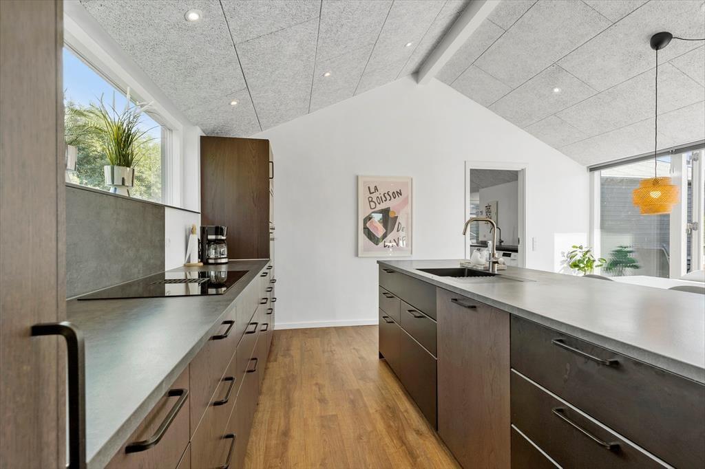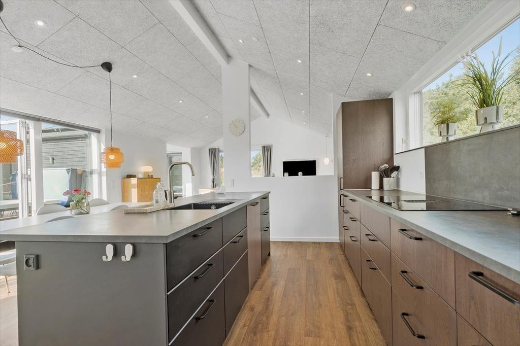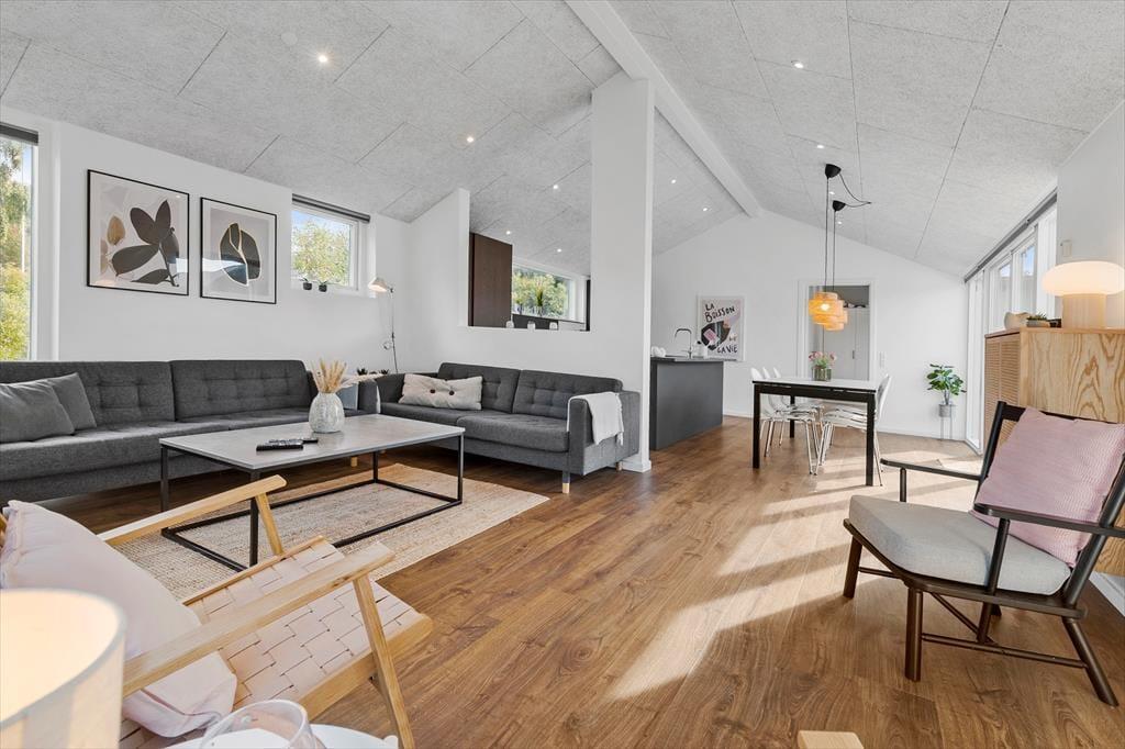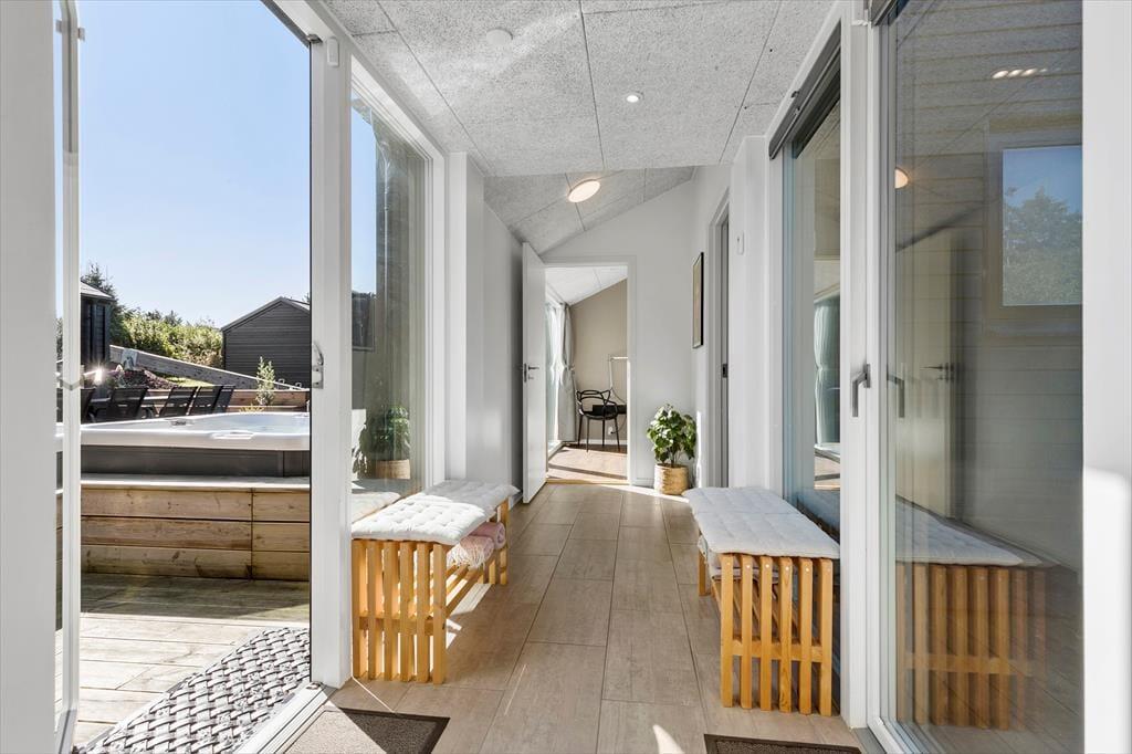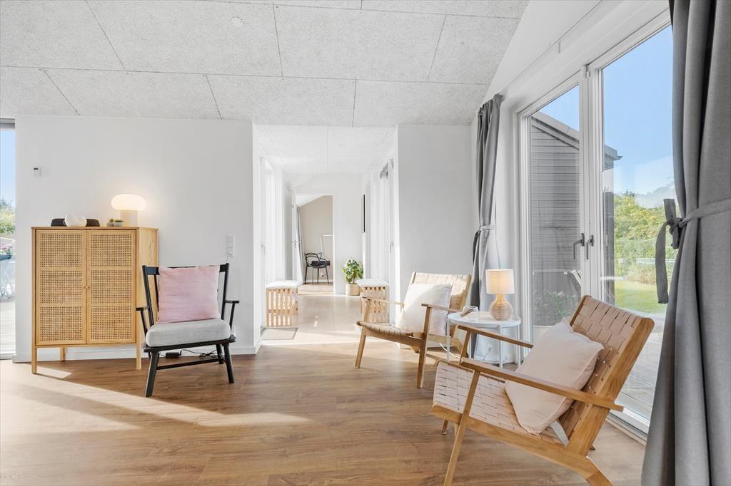 Velkommen indenfor Forestil jer at træde ind i dette lyse og indbydende sommerhus, hvor rammen er sat for en afslappende ferie. Hver krog af boligen emmer af moderne elegance og god smag. I det hyggelige fællesrum kan I samles om madlavningen, mens samtalerne flyder frit. Når maden er tilberedt, er der plads til at nyde måltidet sammen ved det flotte langbord, for bagefter at læne jer tilbage i de bløde møbler til en hyggesnak eller en god film. Sommerhuset byder på to elegante badeværelser, hvoraf det ene er udstyret med et spabad og tv-skærm – perfekt til en ekstra luksuriøs afslapning.