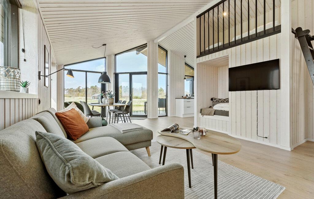 På det yderste af Jyllands næse ligger dette flotte hus, der byder på god plads og lækre faciliteter til en ferie med den udvidede familie. Indretningen fremtræder moderne og enkelt på den elegante måde, og med de komfortable møbler får I en lille oase, hvor I kan hvile stængerne efter dagens udflugter. Gennem de store vinduer får I en dejlig udsigt til omgivelserne, som I kan nyde under jeres måltider.