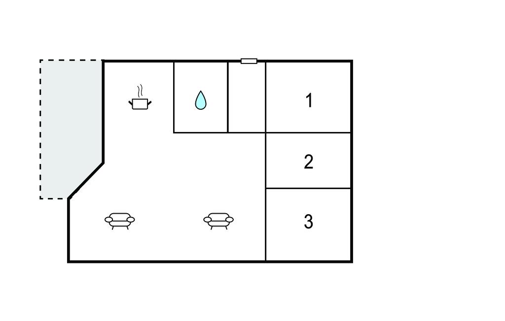 Opholdsstue - 1 Soveplads. (Enkeltseng(e)).