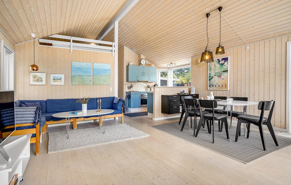 På den nordlige kyst af Djursland, ved Gjerrild Nordstrand ligger dette skønne sommerhus på en stor grund med en fin græsplæne. Her findes 3 dejlige soveværelser samt en hems med 2 sovepladser (adgang via en stige), hertil kommer et pænt badeværelse. Den store stue ligger sammen med det veludstyrede køkken og spiseområdet, hvor I kan tænde op i den dejlige brændeovn og varme hele rummet op på kølige dage og aftener. Den gode terrasse strækker sig på flere sider af huset, således I kan flytte jer efter solen eller sidde i skygge i løbet af dagen - I vælger selv.