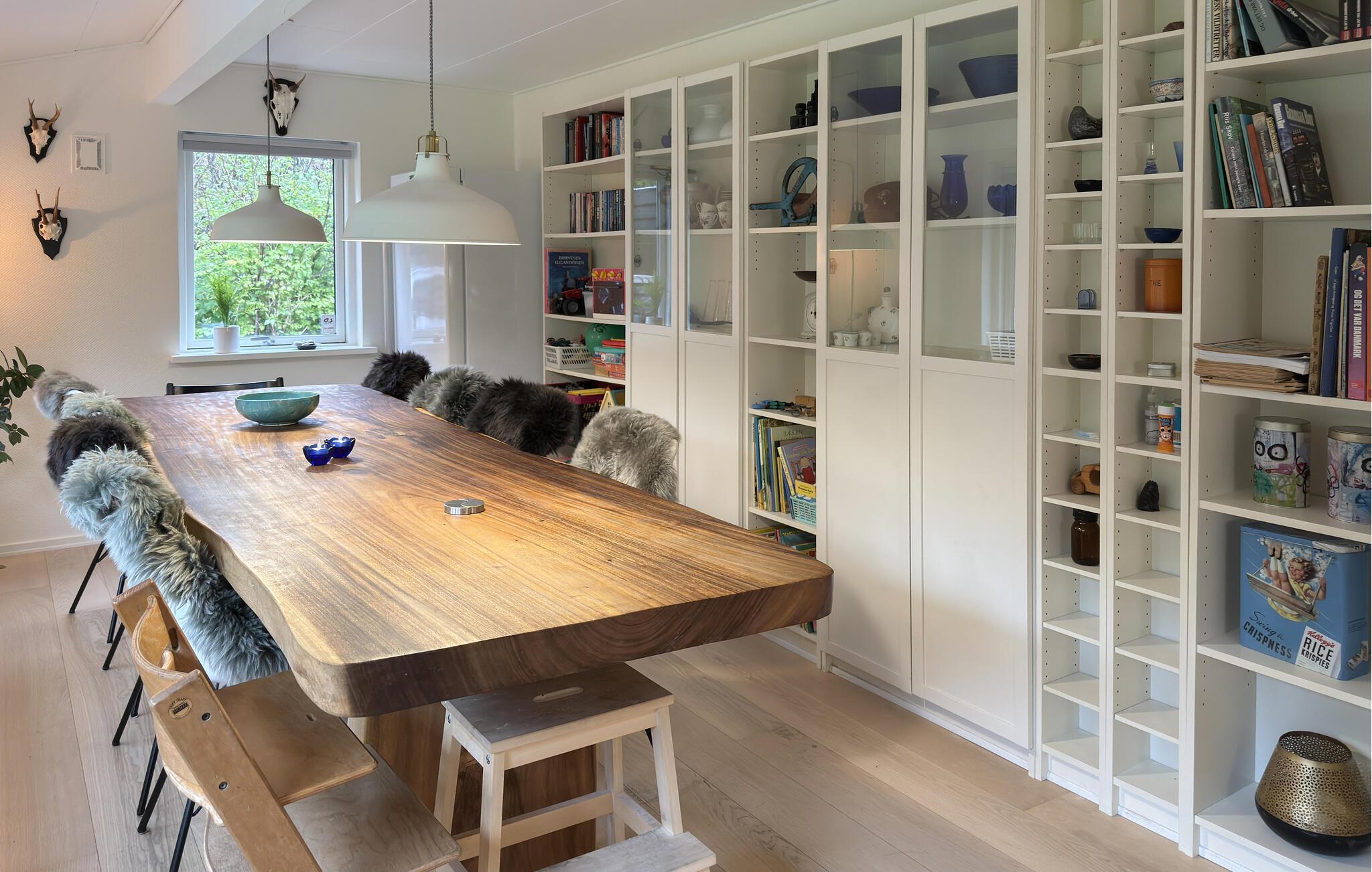 Dette hus byder jer velkommen med en lys og indbydende atmosfære. Store vinduer lukker masser af varmt naturligt lys ind og tilbyder en dejlig udsigt. Uanset om I snakker, læser eller lytter til musik, kan I hurtigt slappe af og lade op her.