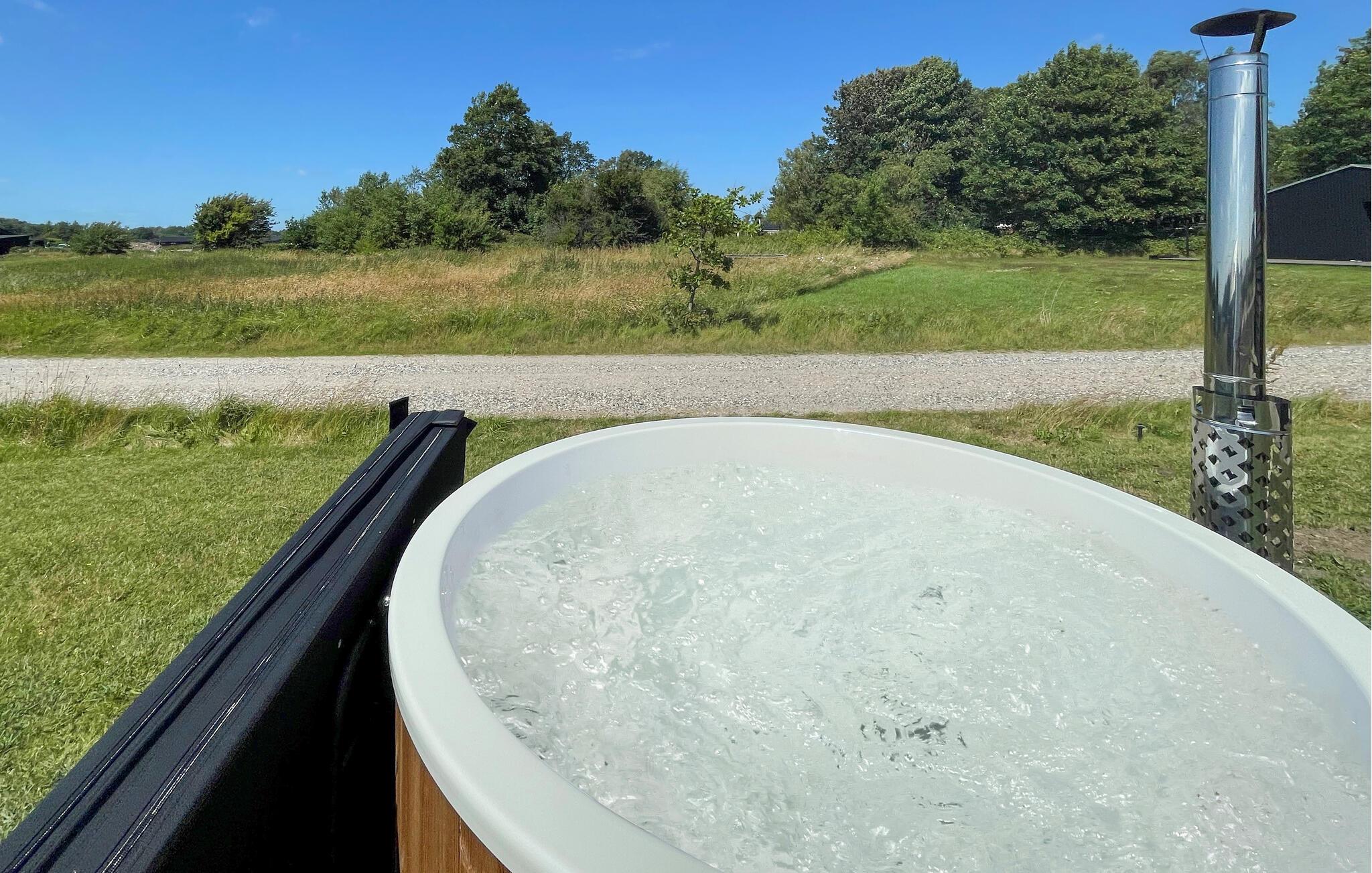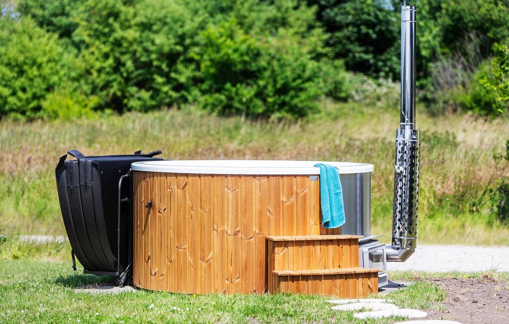 Afslut dagen på den overdækkede terrasse. Nyd middagen ved det lange bord, se skyerne glide hen over himlen eller slap af i vildmarksbadet, som også har massage og luftstråler. Den store have byder på et dejligt legeområde med klatrestativ, gynger, rutsjebane og trampolin, ideelt for børn.