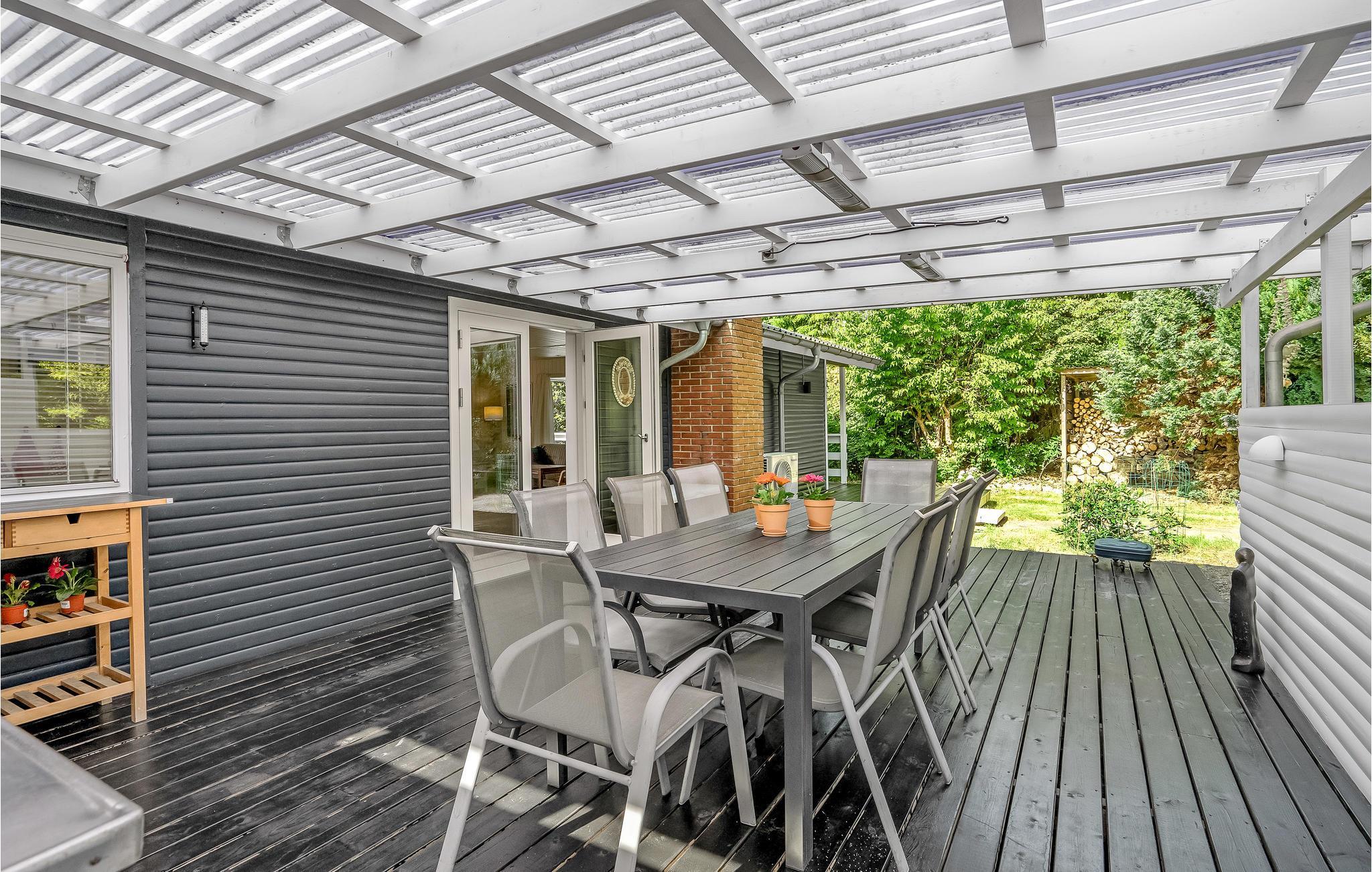 Rummeligt feriehus tæt på stranden ved Gjerrild Nordstrand med flere terrasser og udekøkken på en afsondret grund.