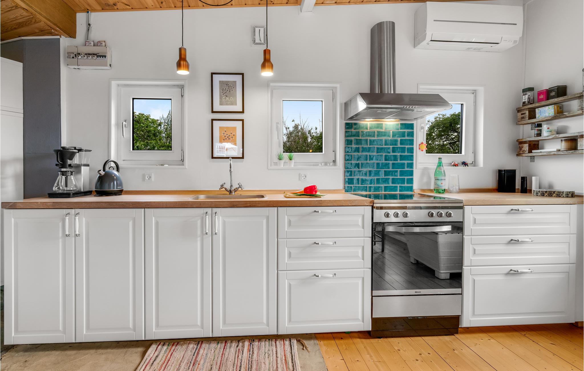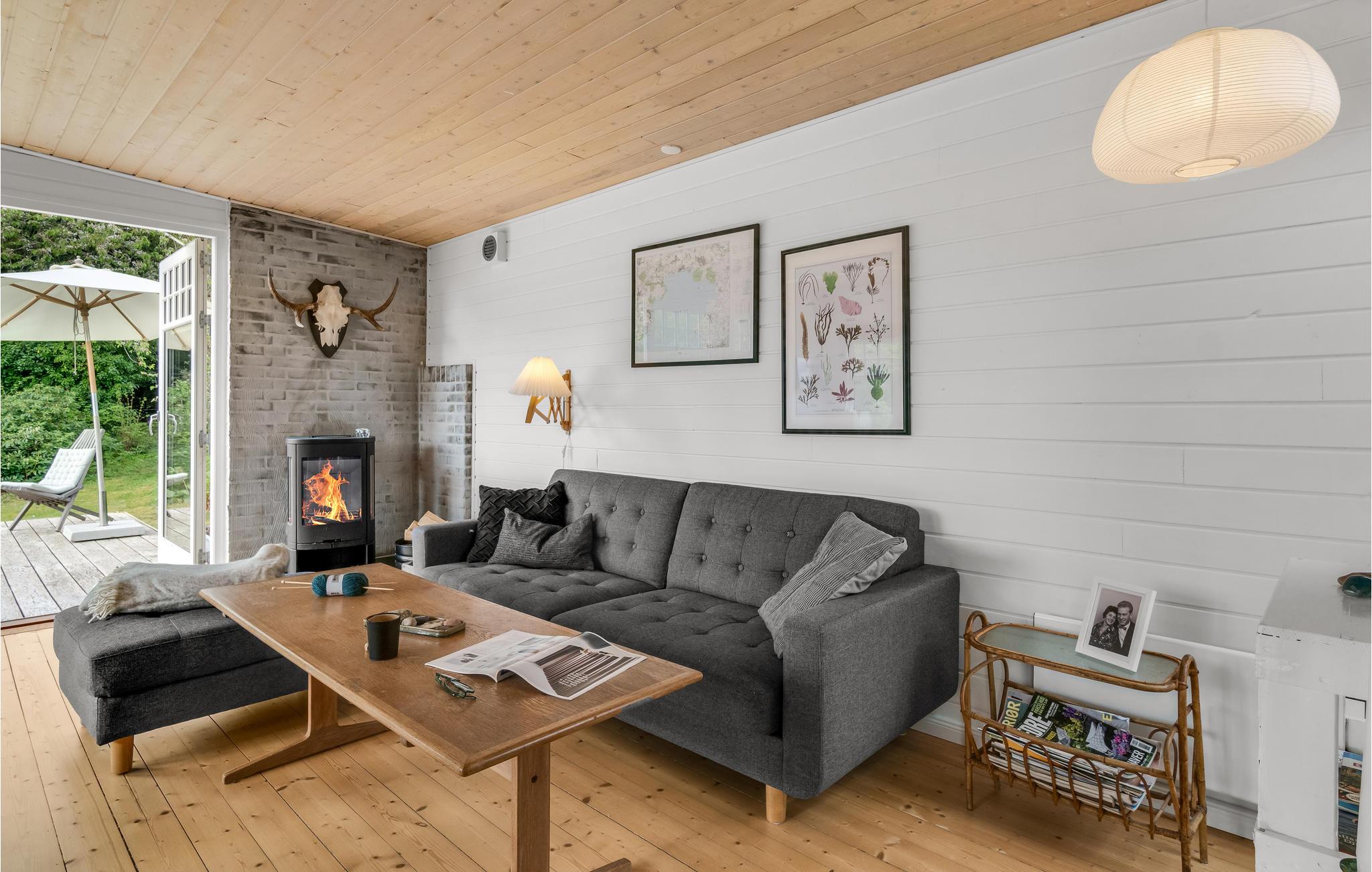 Velkommen til dette helt igennem skønne hus, som emmer af feriestemning. Her bliver rammen om jeres ferie et klassisk sommerhus, som er lækkert og velholdt, mens der samtidig er masser af sjæl og varme i form af husets træværk, sprossede vinduer og det charmerende køkken. Her kan I lave mad sammen i ro og mag og nyde måltiderne med en smuk udsigt over haven. Efter en lang dag på farten kan I læne jer tilbage i den brede sofa, og hvis det har været en kølig dag, kan I tænde op i brændeovnen og nyde hinandens selskab i flammernes skær.