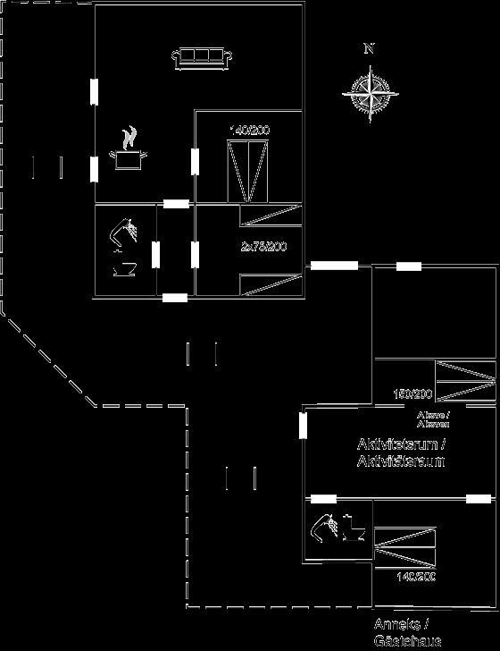 Husets og anneksets indretning gør det velegnet til den lille familie eller 3 par, men også til dem, som vil invitere f.eks. bedsteforældrene med på ferie.