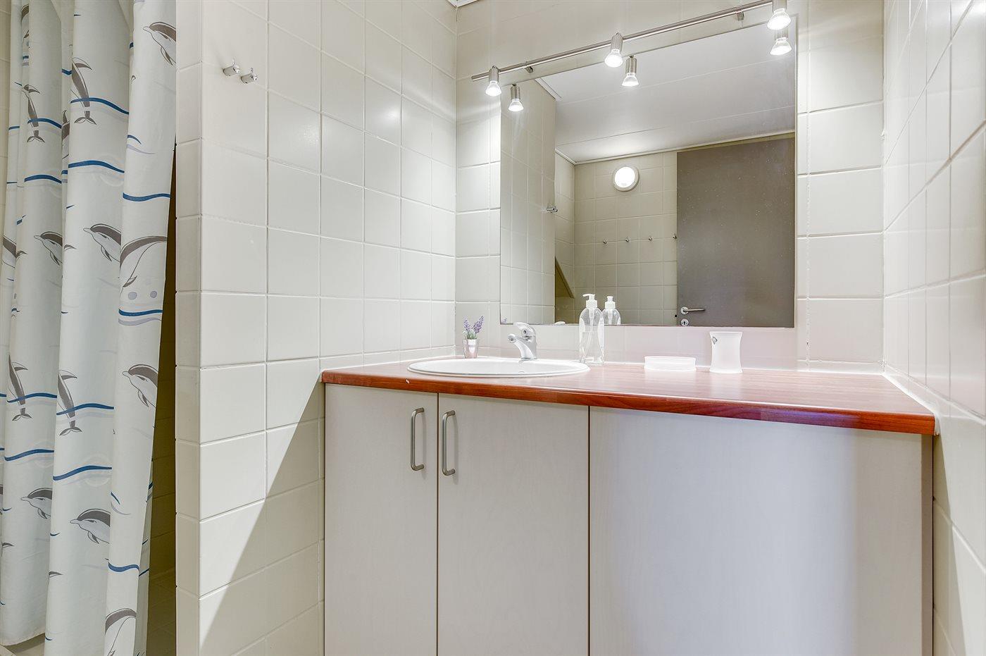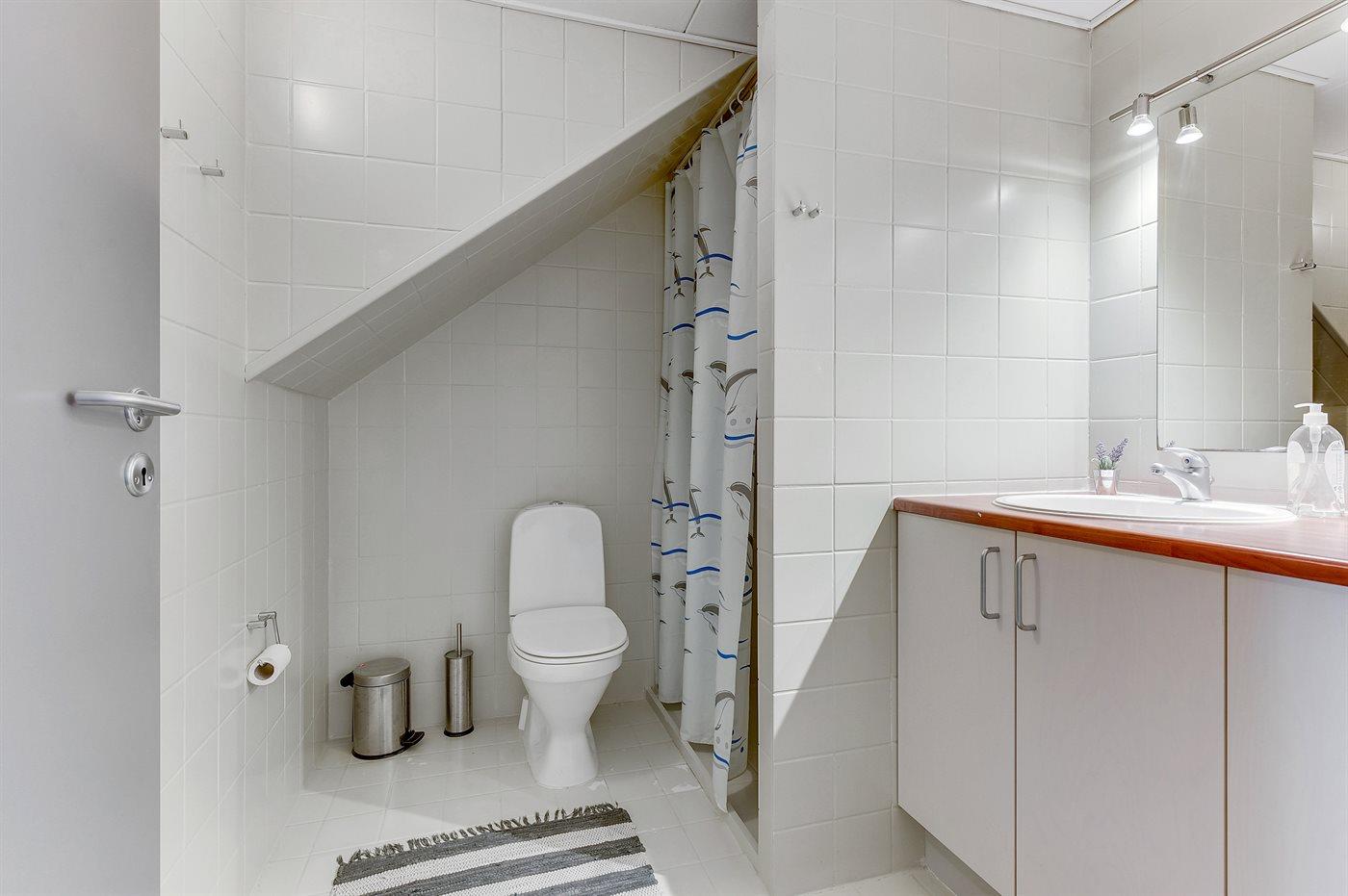 Der er 1 badeværelse med bruseniche og 1 toilet.