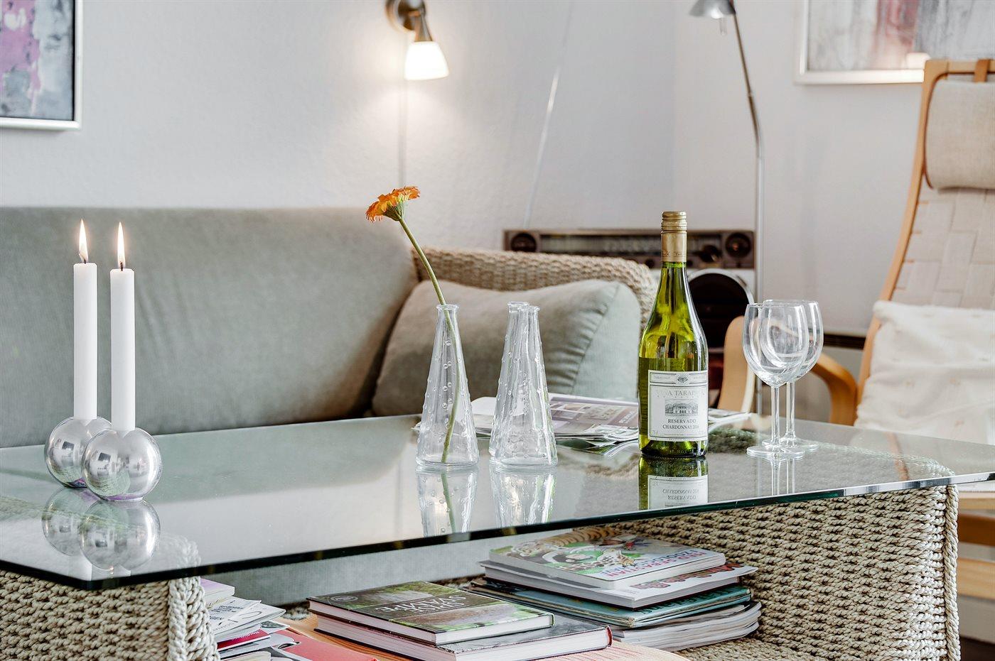 Smagfuldt indrettet ferielejlighed i 2 etager (1. og 2. sal), beliggende i smukke og uspolerede omgivelser. Sydvendt terrasse med havemøbler. Trægulve overalt - dog klinker på badeværelse samt tæppe i soveværelse.