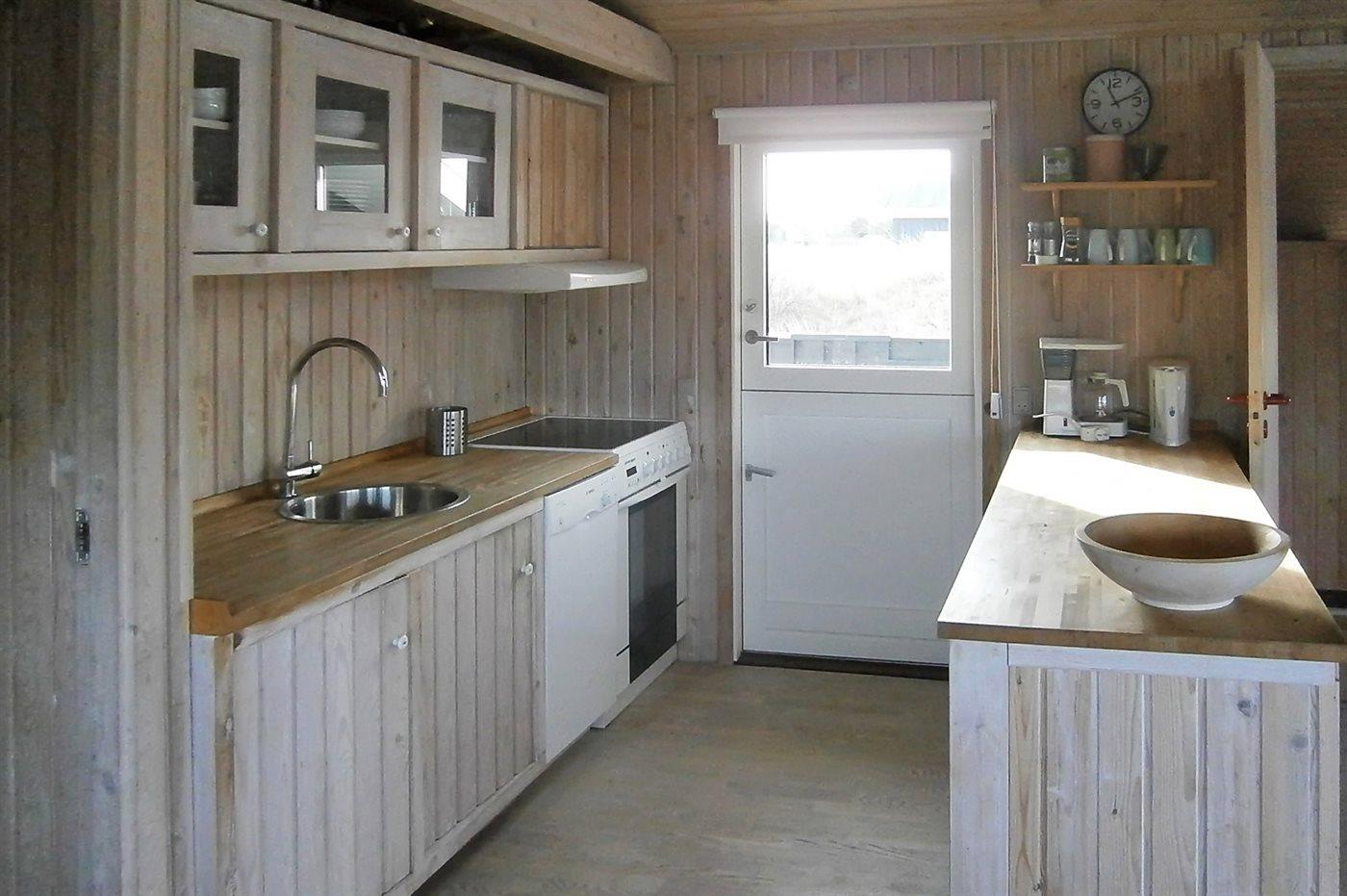 Køkkenet er udstyret med 1 køleskab. Der er 4 keramiske kogeplader, varmluftovn samt opvaskemaskine.
